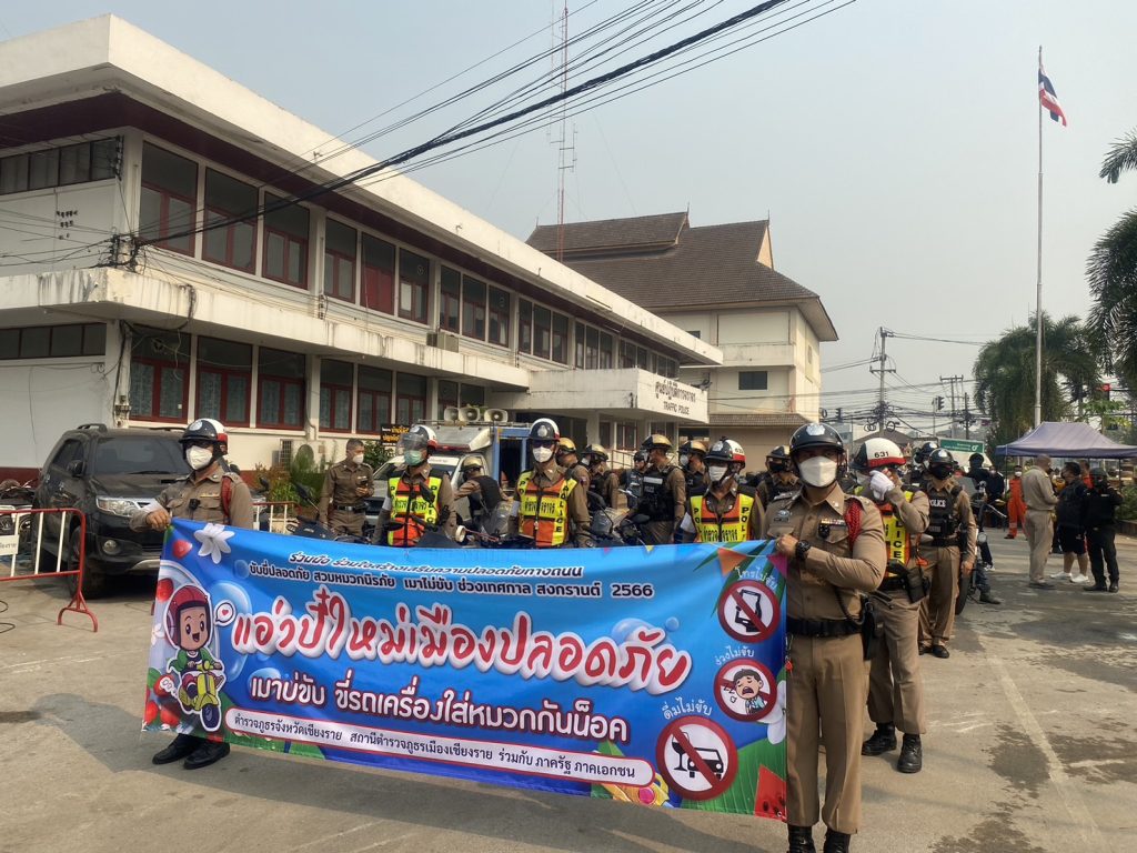 วันนี้ 10 เม.ย.66 เวลา 09.30 น. สถานีตำรวจภูธรเมืองเชียงราย ร่วมกับ สำนักงานสาธารณสุขอำเภอเมืองเชียงราย, เทศบาลนครเชียงราย และบริษัท ห้างร้านในพื้นที่ ได้จัดกิจกรรมรณรงค์ ส่งเสริมการสวมหมวกนิรภัย และเมาไม่ขับ เทศกาลสงกรานต์ ประจำปี 2566 โดยได้รับเกียรติจาก พล.ต.ต.ดุลเดชา อาชวะสมิตระกูล ผบก.ภ.จว.เชียงราย เป็นประธานเปิดกิจกรรม มี พ.ต.อ.โสภณ ม่วงเฟื่อง ผกก.สภ.เมืองเชียงราย เป็นผู้กล่าวรายงานวัตถุประสงค์ของการจัดกิจกรรมในครั้งนี้ กิจกรรมในครั้งนี้ มีหน่วยงานทั้งภาครัฐ ภาคเอกชน ได้แก่ สถานีตำรวจภูธรเมืองเชียงราย, สำนักงานสาธารณสุขอำเภอเมืองเชียงราย, เทศบาลนครเชียงราย, บริษัทกลางคุ้มครองผู้ประสบภัยจากรถ, บริษัทเชียงรายสินธานี จำกัด, บริษัทกรีนวิง จำกัด, ชมรมคนรักรถเชียงราย และพี่น้องหัวใจสองล้อ ได้นำตรถจักรยานยนต์เข้าร่วมกิจกรรม รวมทั้งสิ้น 50 คัน