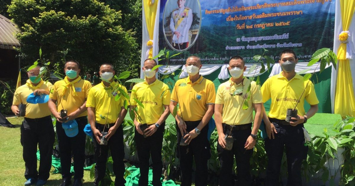 สภ.เมืองเชียงราย เมื่อวันที่ 28 ก.ค. 2565 เวลา 10.00 น. โดยการอำนวยการของ พ.ต.อ.กิตติพงษ์ สุขวัฒนพันธ์ ผกก.สภ.เมืองเชียงราย มอบหมายให้ พ.ต.ท.เทพสวัสดิ์ สุภาวรรณ รอง ผกก.ป.สภ.เมืองเชียงราย นำข้าราชการตำรวจในสังกัด ร่วมกิจกรรมจิตอาสาปลูกป่าเฉลิมพระเกียรติ ณ วัดดอยอินทรีย์ อ.เมือง จ.เชียงราย เนื่องในโอกาสวันเฉลิมพระชนมพรรษาพระบาทสมเด็จพระเจ้าอยู่หัวรัชกาลที่ 10