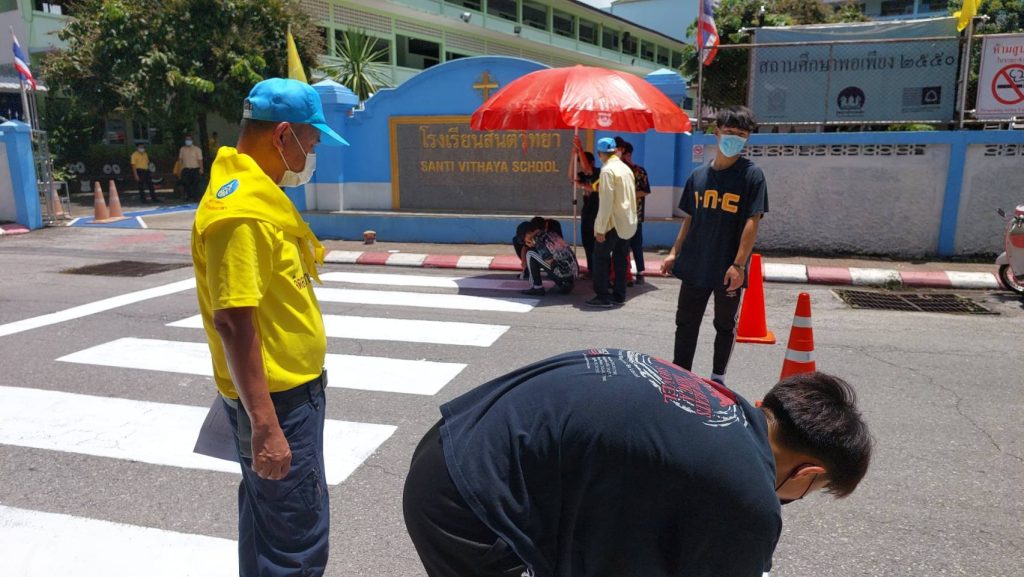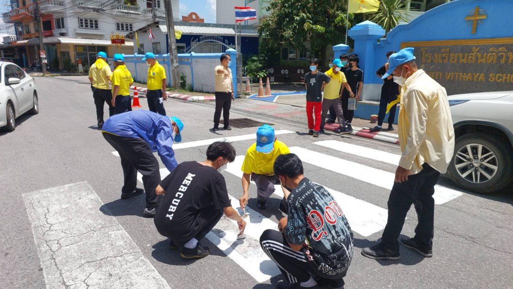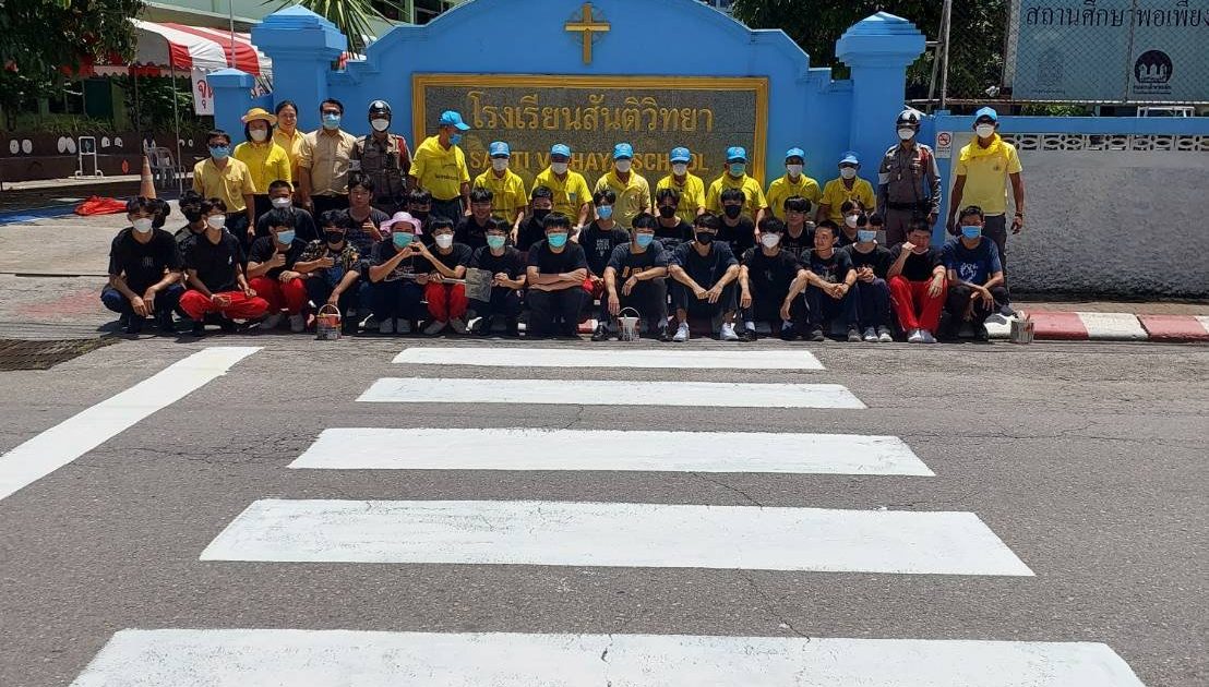 สภ.เมืองเชียงราย เมื่อวันที่ 27 ก.ค. 2565 โดยการอำนวยการของ พ.ต.อ.กิตติพงษ์ สุขวัฒนพันธ์ ผกก.สภ.เมืองเชียงราย มอบหมายให้ พ.ต.ท.สมชาย เด่นตี รอง ผกก.(สอบสวน) สภ.เมืองเชียงราย นำข้าราชการตำรวจในสังกัด และผู้ผ่านการอบรมกลุ่มผู้กระทำผิดและกลุ่มเสี่ยงในการแข่งรถมาร่วมกิจกรรมจิตอาสาพัฒนาปรับภูมิทัศน์ขีดสีตีเส้นหน้า รร.สันติวิทยา อ.เมือง จ.เชียงราย เนื่องในโอกาสวันเฉลิมพระชนมพรรษาพระบาทสมเด็จพระเจ้าอยู่หัวรัชกาลที่ 10