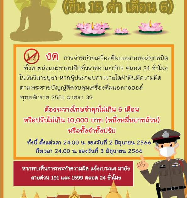 งดจำหน่ายเครื่องดื่มแอลกอฮอล์ในวันวิสาขบูชา ประจำปี 2566 2 มิถุนายน 2566 โดย admin / ข่าวประชาสัมพันธ์,ข่าวประชาสัมพันธ์,ข่าวฝากประชาสัมพันธ์ FacebookFacebookXXLINELine