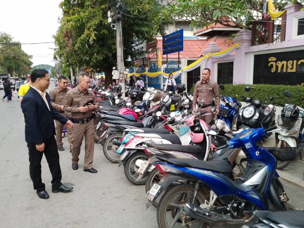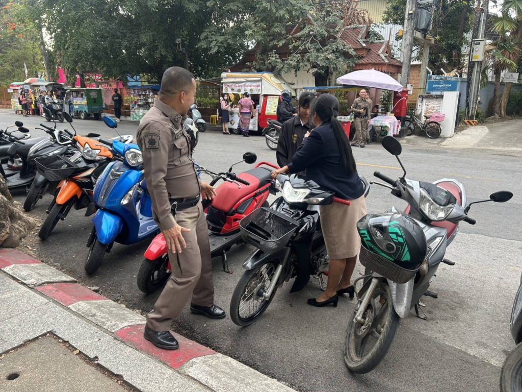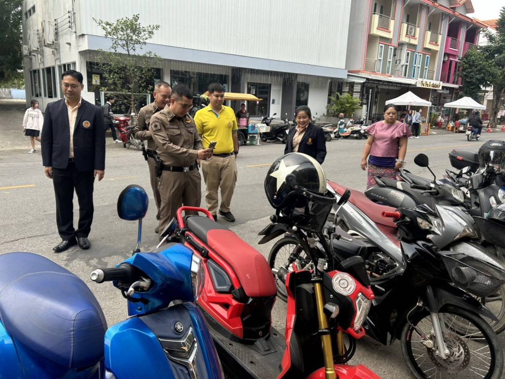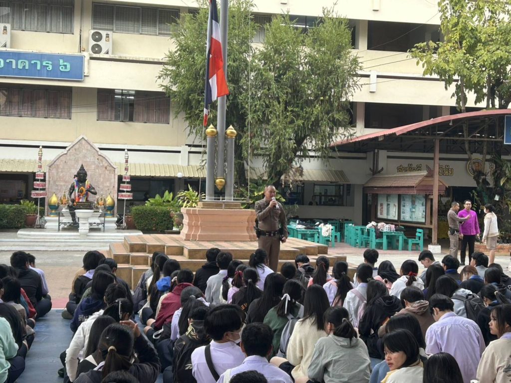 วันนี้ (29 ม.ค 67) เวลา 08.00 น. โดยการอำนวยการของ พ.ต.อ.โสภณ ม่วงเฟื่อง ผกก.สภ.เมืองเชียงราย มอบหมายให้ พ.ต.ท.ฉันทฤทธิ์ เหล่าไพโรจน์จารี รอง.ผกก.ป.สภ.เมืองเชียงราย , พ.ต.ต.อิทธิพัทธิ์ ศรีวิชัย สวป.(ชส.)สภ.เมืองเชียงราย พร้อมชุด ชมส. เดินทางไปประชาสัมพันธ์โครงการ “นักเรียนสายตรวจ FBI” โดยได้บรรยายให้ความรู้ความเข้าใจแก่นักเรียน นักศึกษาให้มีภูมิคุ้มกันทางสังคม ไม่ให้โดนหลอกลวงออนไลน์ รู้เท่าทันมิจฉาชีพกลโกงในรูปแบบต่างๆ และปลูกจิตสำนึกของเด็กนักเรียนและเยาวชน ให้มีความเข้าใจ ทัศนคติในการขับขี่รถอย่างถูกต้อง ไม่ก่อปัญหา สร้างความเดือดร้อนรำคาญ ให้สังคม ณ วิทยาลัยอาชีวศึกษาเชียงราย มีนักเรียนนักศึกษาเข้าร่วมโครงการประมาณ 2,500 คน จากนั้นได้ทำการตรวจสอบรถจักรยานยนต์ที่มีลักษณะเข้าข่ายท่อเสียงดัง บริเวณสถานที่จอดรถของนักเรียนนักศึกษาวิทยาลัยอาชีวศึกษาเชียงราย ผลการตรวจสอบ สามารถตรวจยึด รถ จยย. ที่ดัดแปลงสภาพรถและท่อเสียงดังเกินกว่าที่กฎหมายหมายกำหนด จำนวน 2 คัน