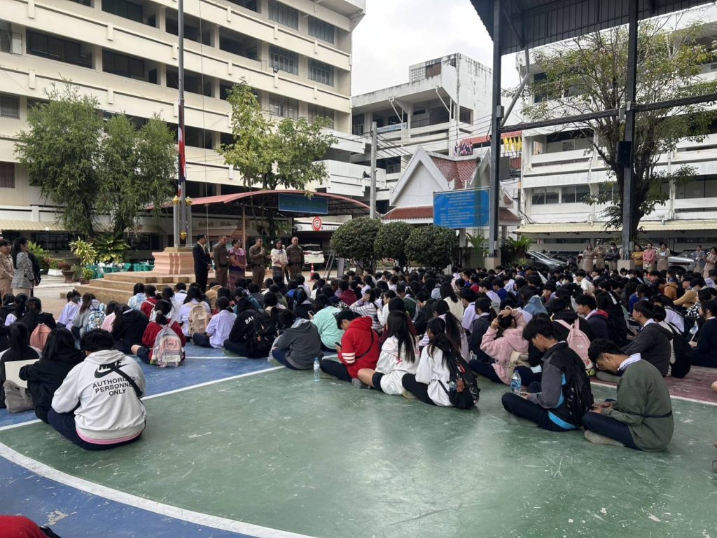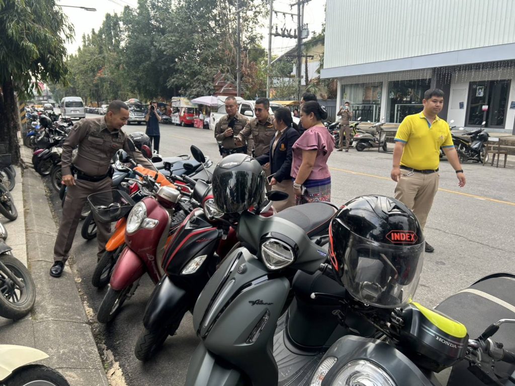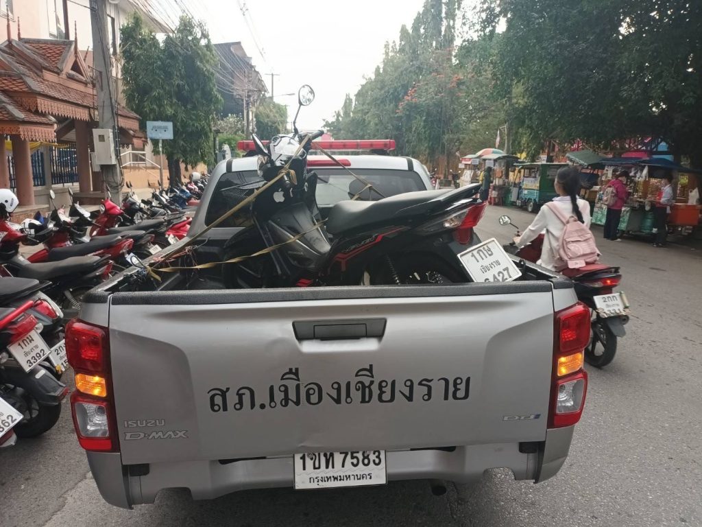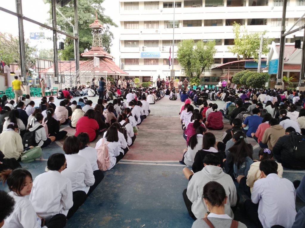 วันนี้ (29 ม.ค 67) เวลา 08.00 น. โดยการอำนวยการของ พ.ต.อ.โสภณ ม่วงเฟื่อง ผกก.สภ.เมืองเชียงราย มอบหมายให้ พ.ต.ท.ฉันทฤทธิ์ เหล่าไพโรจน์จารี รอง.ผกก.ป.สภ.เมืองเชียงราย , พ.ต.ต.อิทธิพัทธิ์ ศรีวิชัย สวป.(ชส.)สภ.เมืองเชียงราย พร้อมชุด ชมส. เดินทางไปประชาสัมพันธ์โครงการ “นักเรียนสายตรวจ FBI” โดยได้บรรยายให้ความรู้ความเข้าใจแก่นักเรียน นักศึกษาให้มีภูมิคุ้มกันทางสังคม ไม่ให้โดนหลอกลวงออนไลน์ รู้เท่าทันมิจฉาชีพกลโกงในรูปแบบต่างๆ และปลูกจิตสำนึกของเด็กนักเรียนและเยาวชน ให้มีความเข้าใจ ทัศนคติในการขับขี่รถอย่างถูกต้อง ไม่ก่อปัญหา สร้างความเดือดร้อนรำคาญ ให้สังคม ณ วิทยาลัยอาชีวศึกษาเชียงราย มีนักเรียนนักศึกษาเข้าร่วมโครงการประมาณ 2,500 คน จากนั้นได้ทำการตรวจสอบรถจักรยานยนต์ที่มีลักษณะเข้าข่ายท่อเสียงดัง บริเวณสถานที่จอดรถของนักเรียนนักศึกษาวิทยาลัยอาชีวศึกษาเชียงราย ผลการตรวจสอบ สามารถตรวจยึด รถ จยย. ที่ดัดแปลงสภาพรถและท่อเสียงดังเกินกว่าที่กฎหมายหมายกำหนด จำนวน 2 คัน