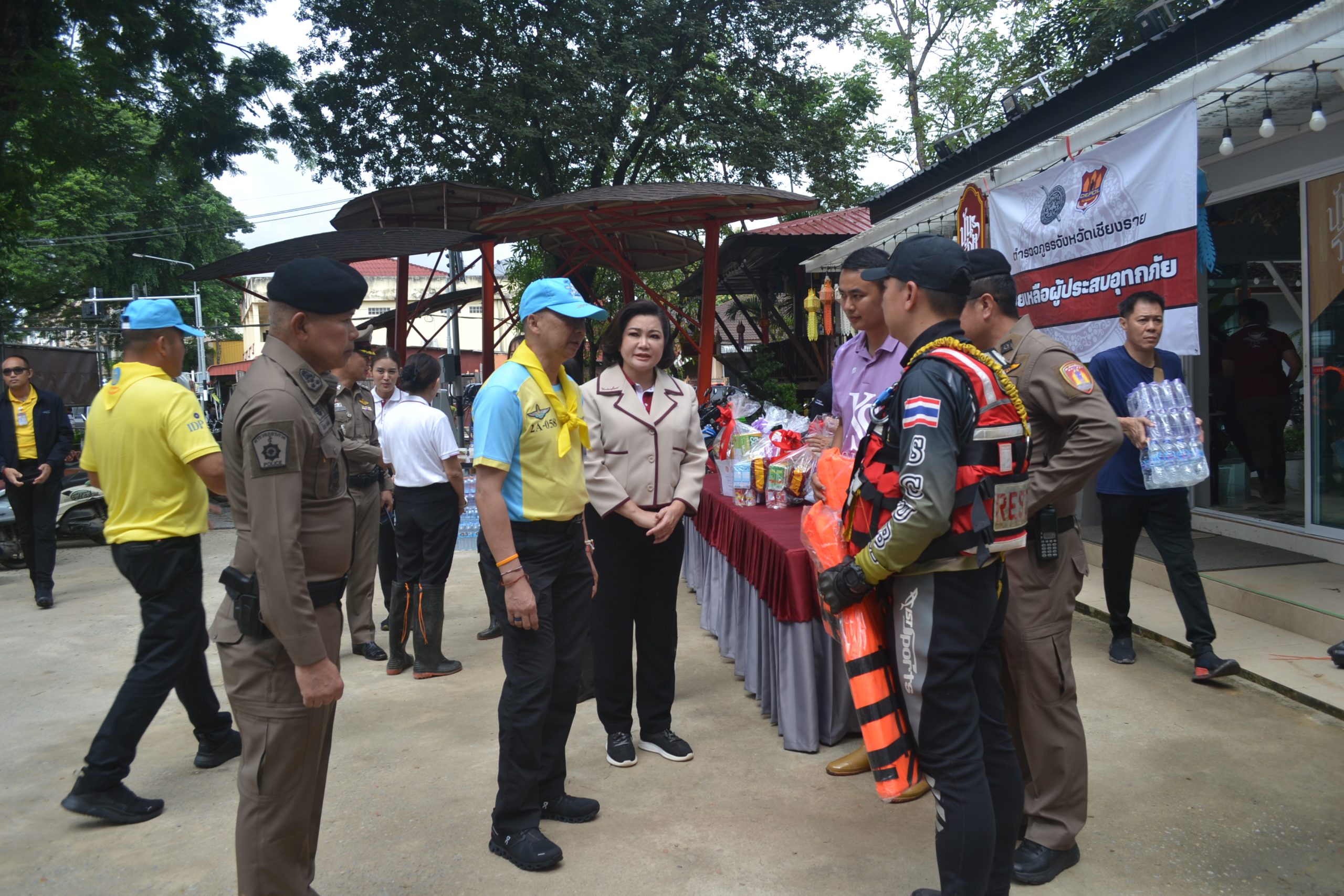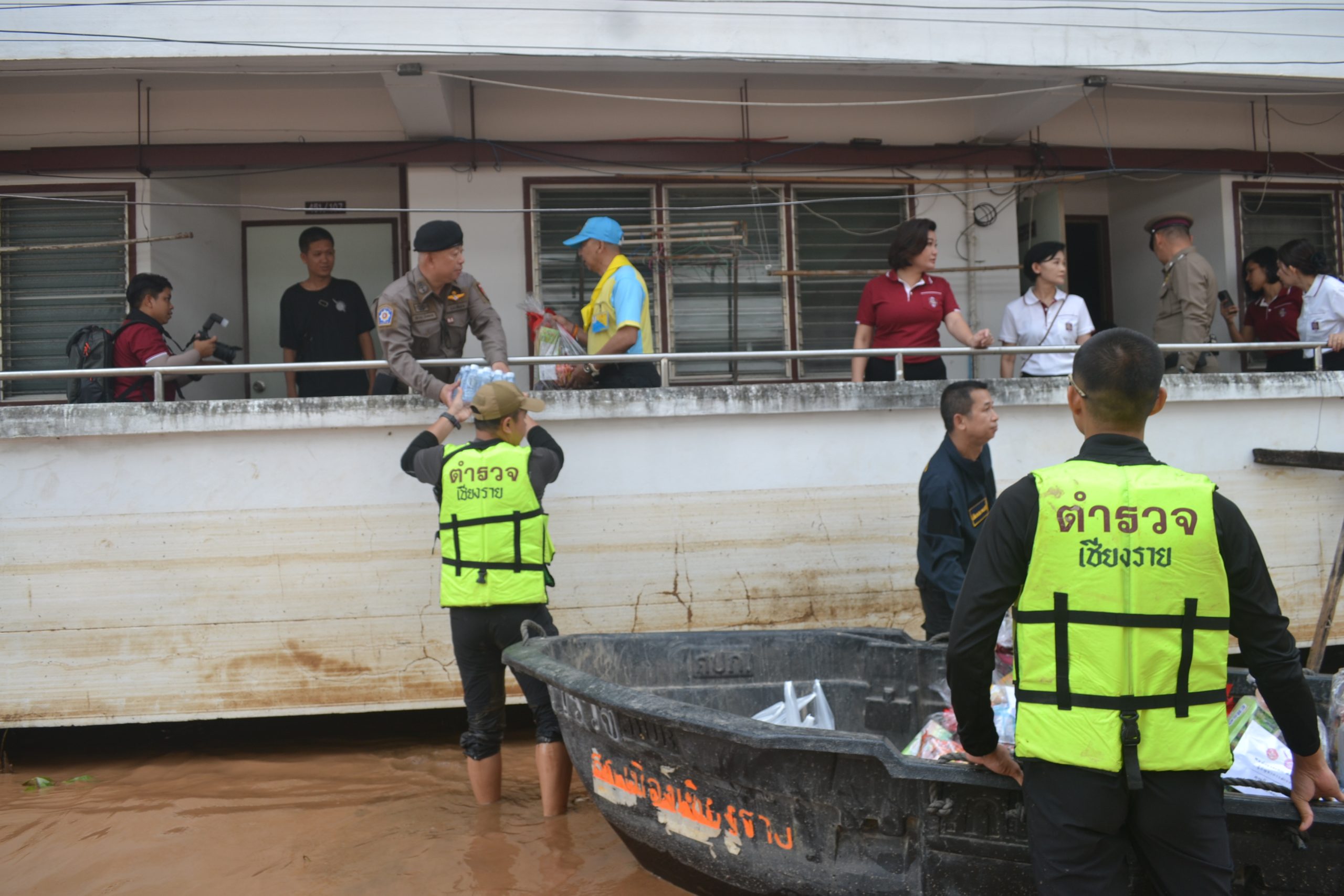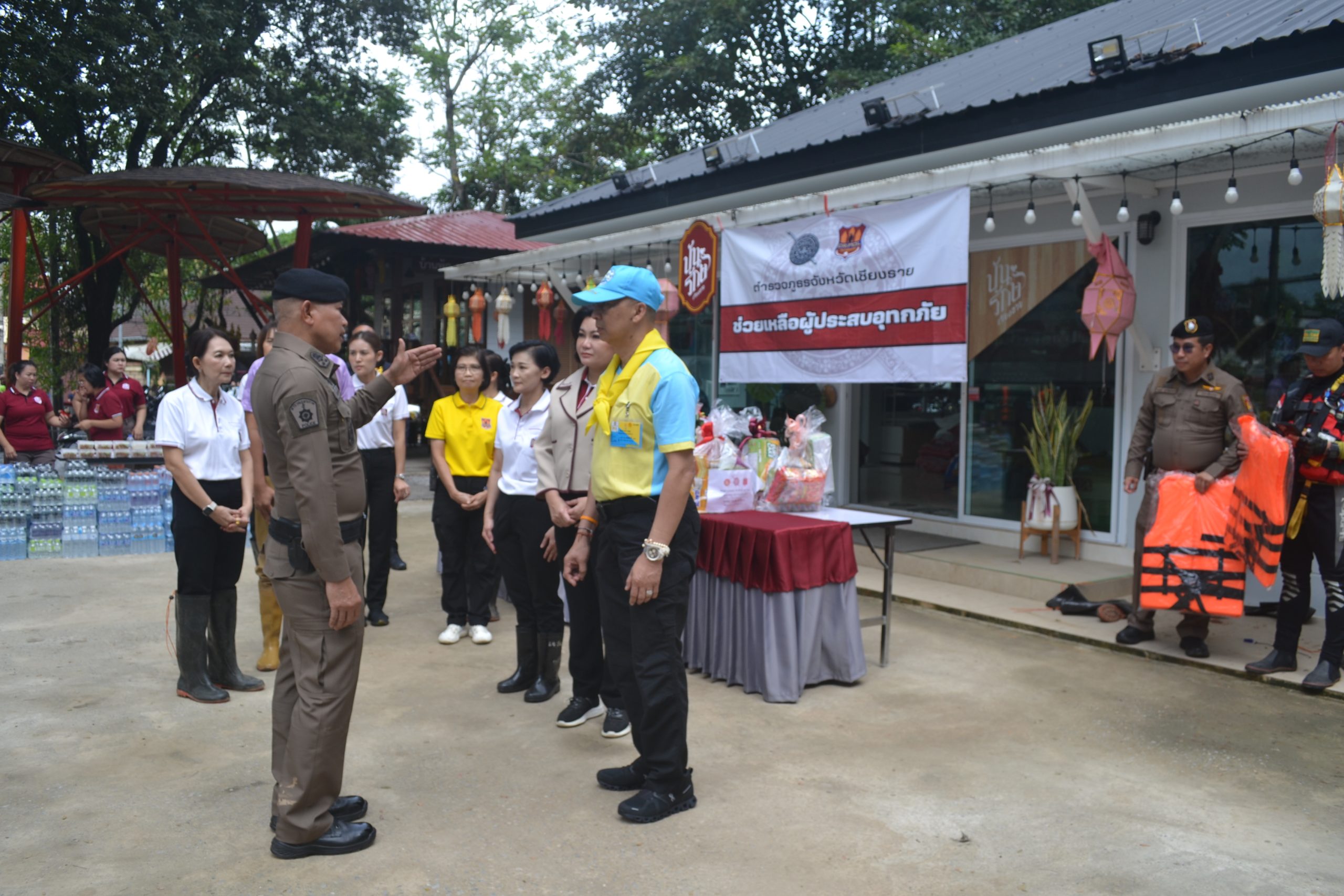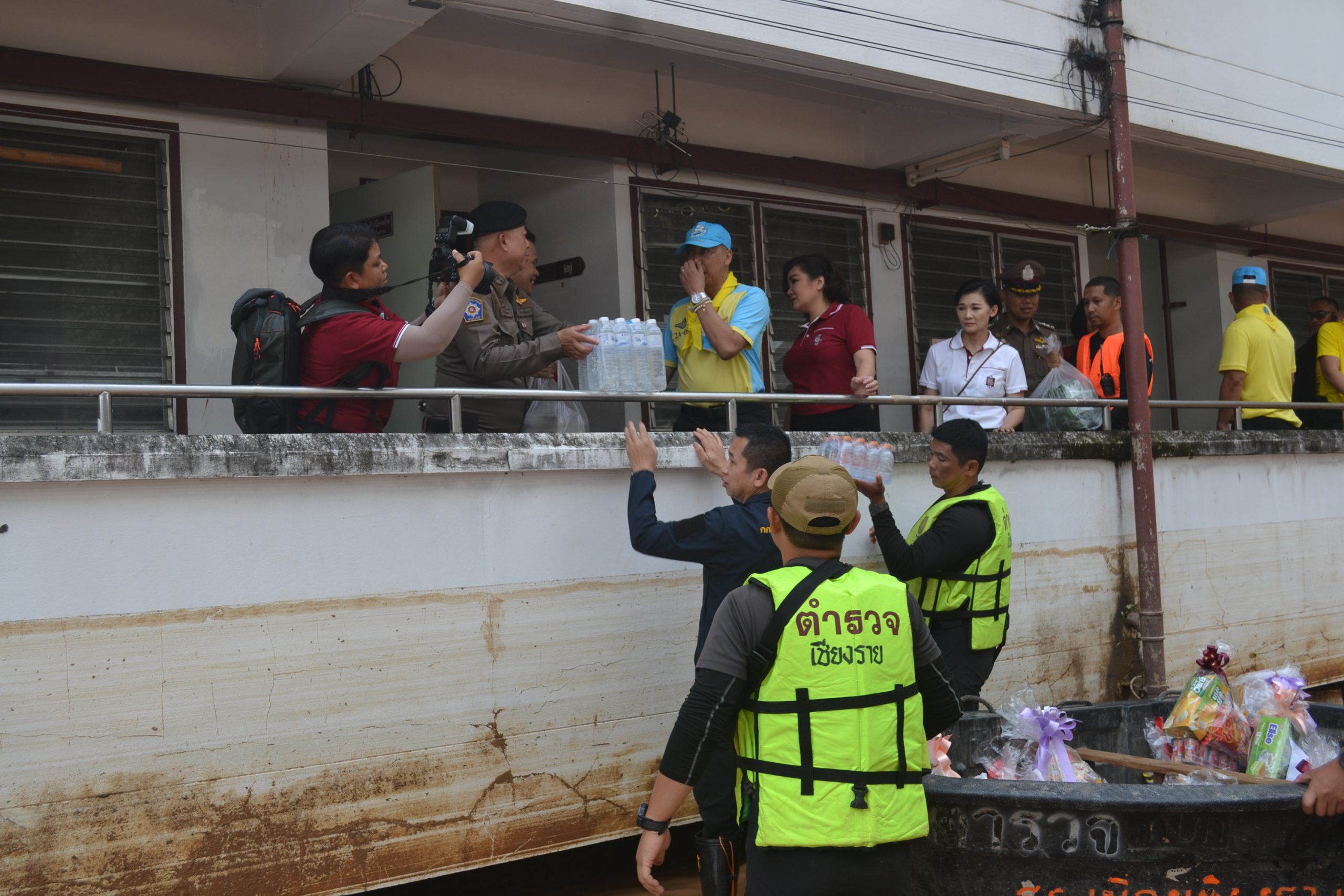 จากนั้น ผบ.ตร.ได้มอบถุงยังชีพให้แก่ข้าราชการตำรวจ สภ.เมืองเชียงราย และข้าราชการตำรวจ กก.สส.ภ.จว.เชียงราย ที่ประสบอุทกภัย จำนวน 60 นาย และได้เดินทางไปมอบถุงยังชีพ สิ่งของจำเป็นให้แก่ประชาชนในชุมชนเกาะลอย อ.เมืองเชียงราย จว.เชียงราย