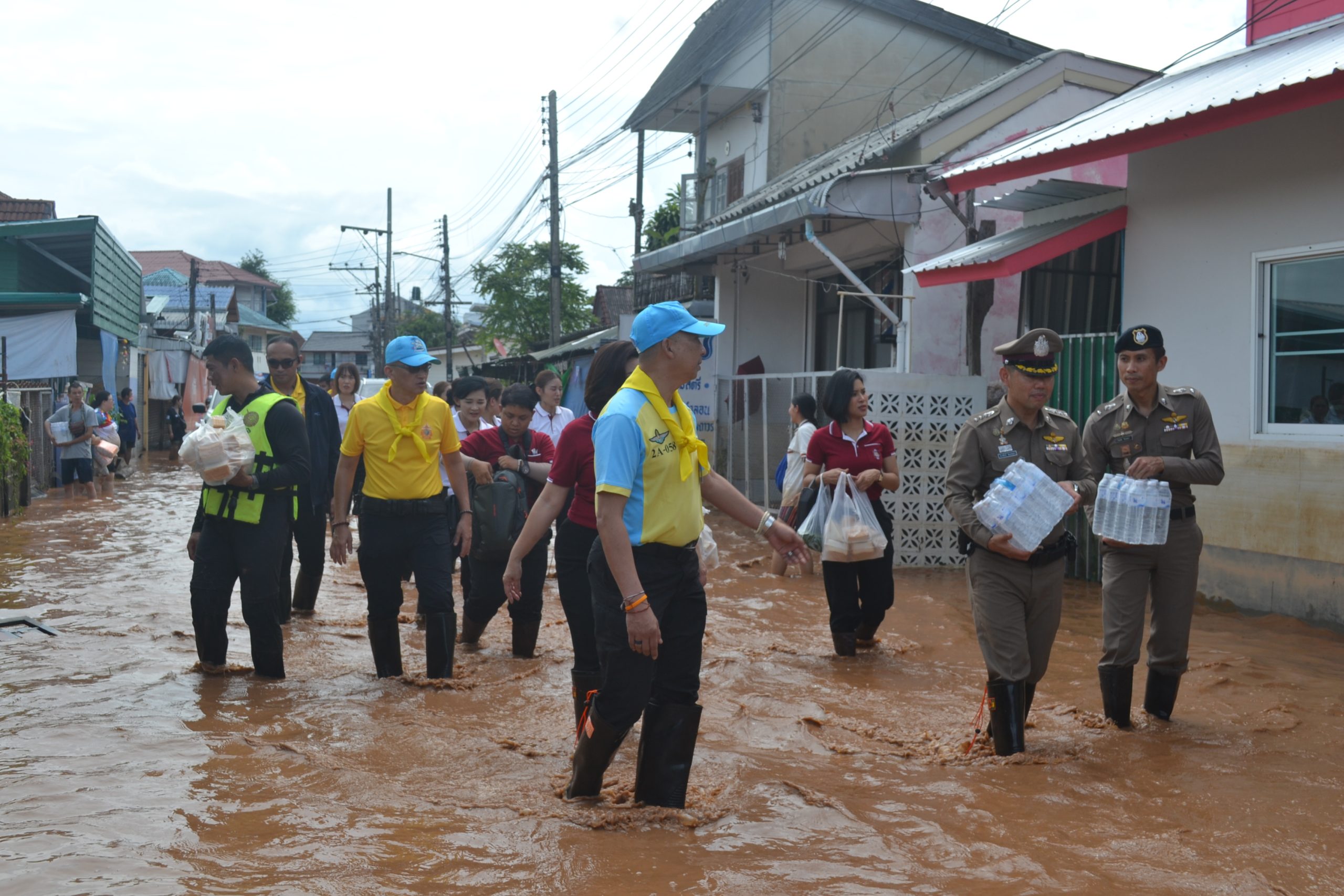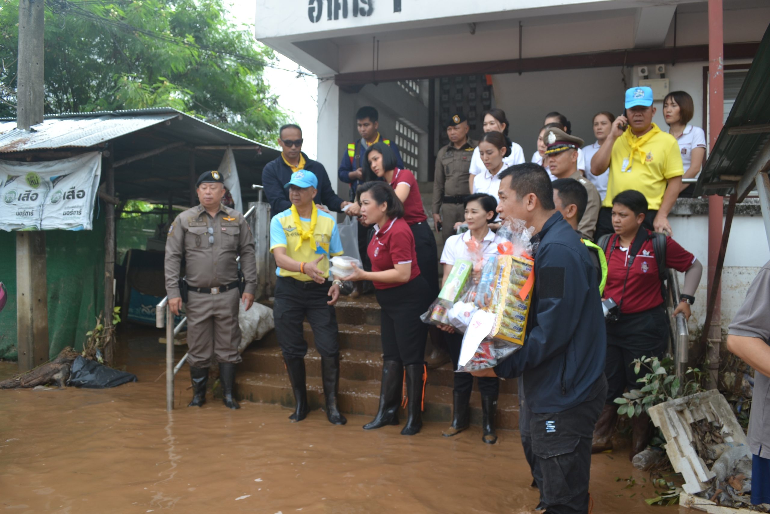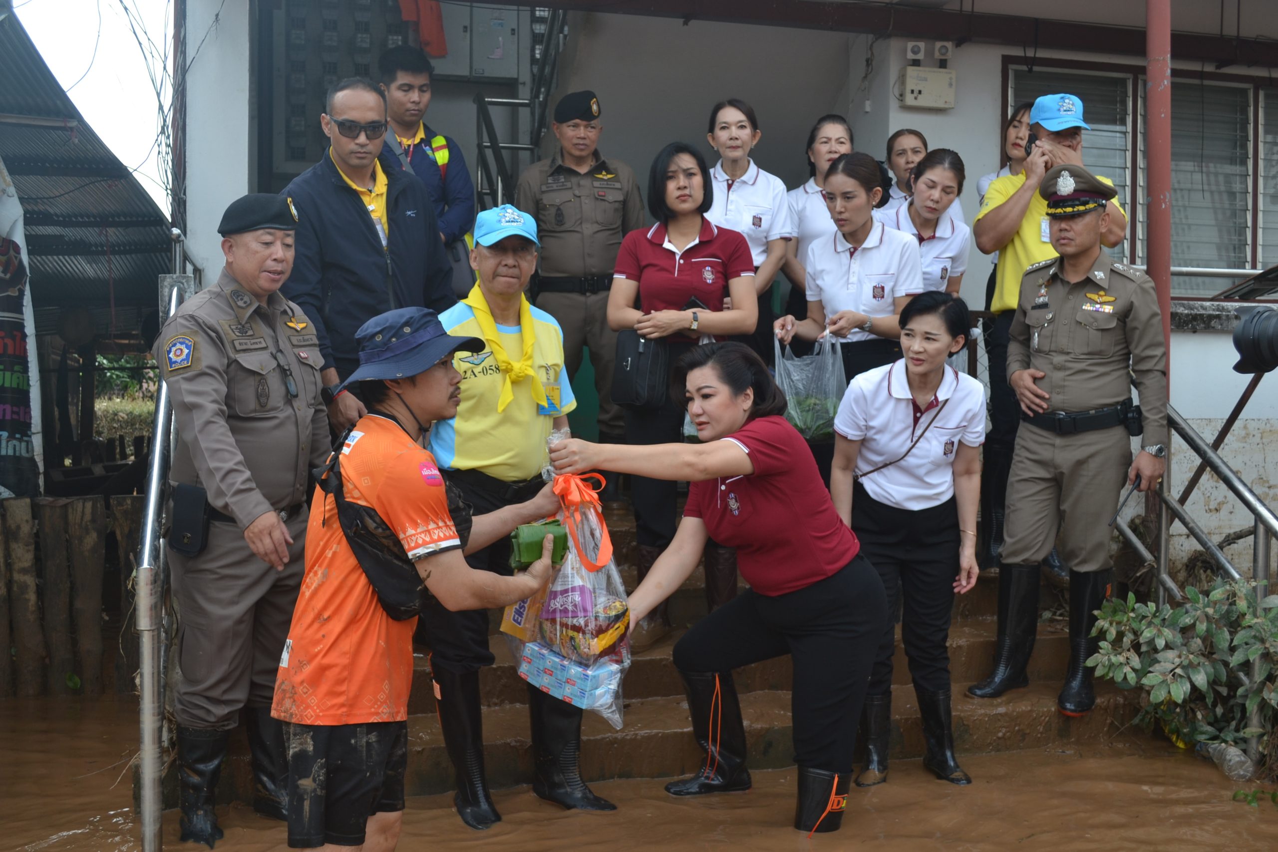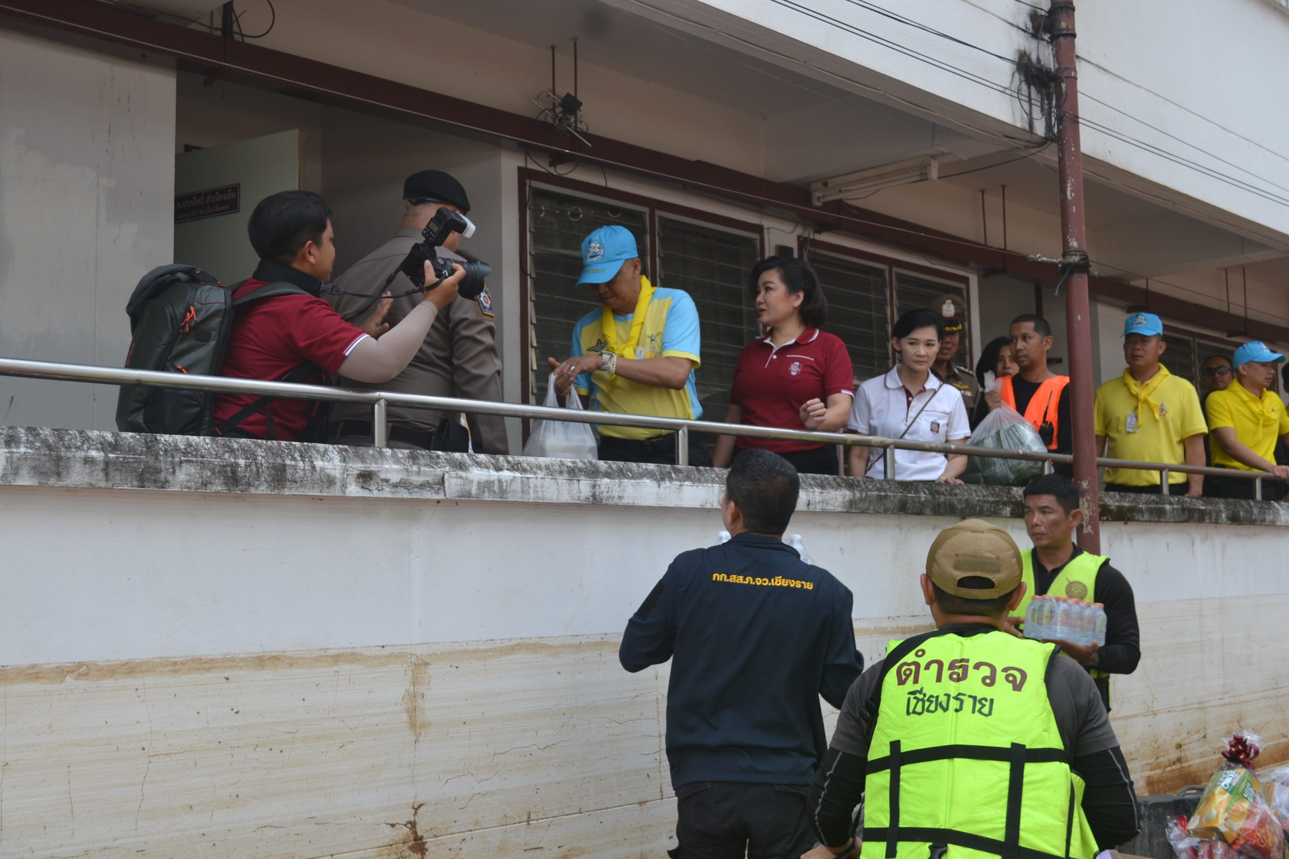 จากนั้น ผบ.ตร.ได้มอบถุงยังชีพให้แก่ข้าราชการตำรวจ สภ.เมืองเชียงราย และข้าราชการตำรวจ กก.สส.ภ.จว.เชียงราย ที่ประสบอุทกภัย จำนวน 60 นาย และได้เดินทางไปมอบถุงยังชีพ สิ่งของจำเป็นให้แก่ประชาชนในชุมชนเกาะลอย อ.เมืองเชียงราย จว.เชียงราย