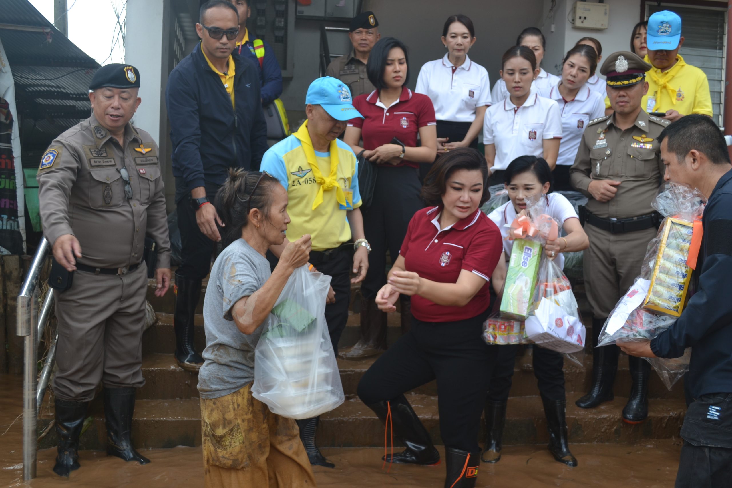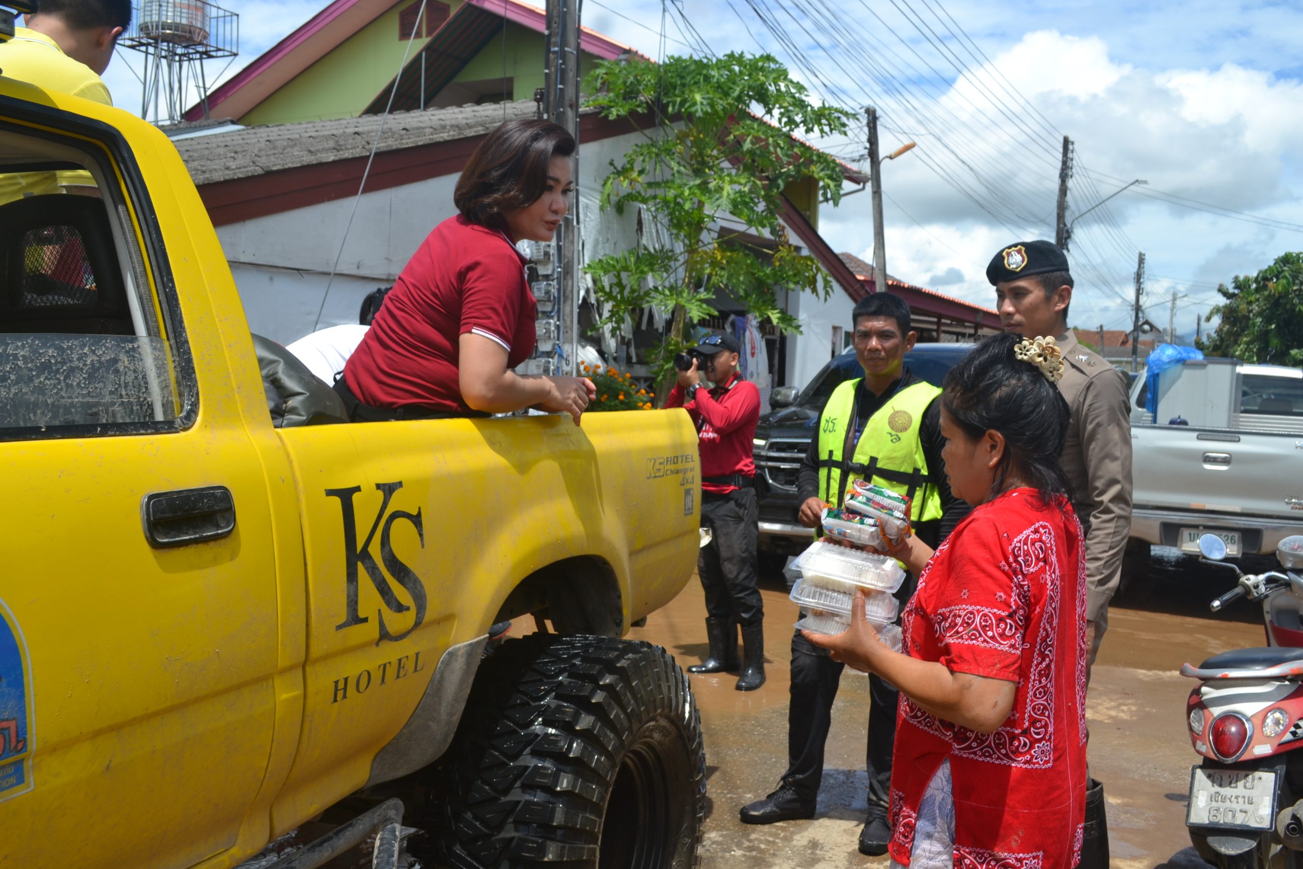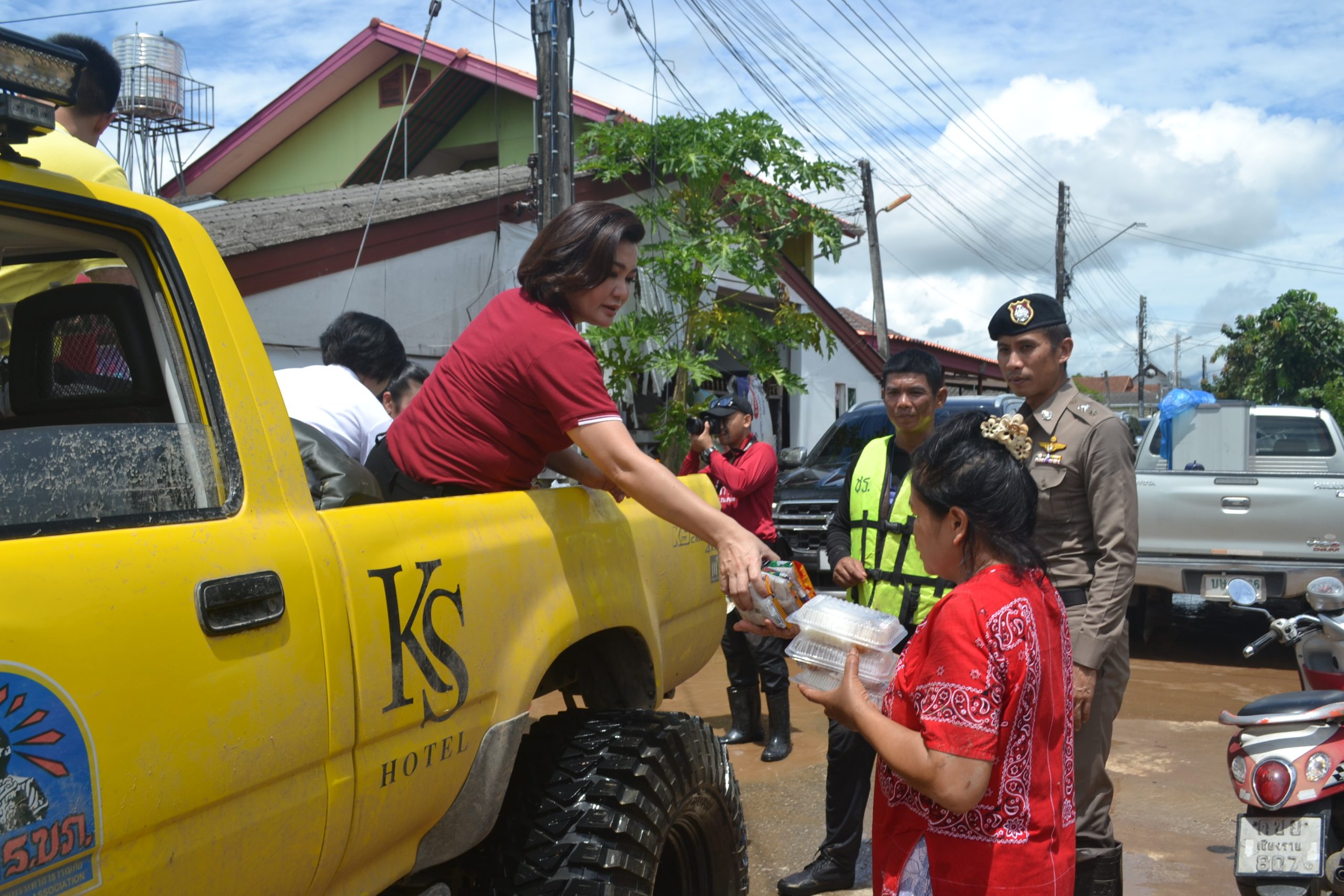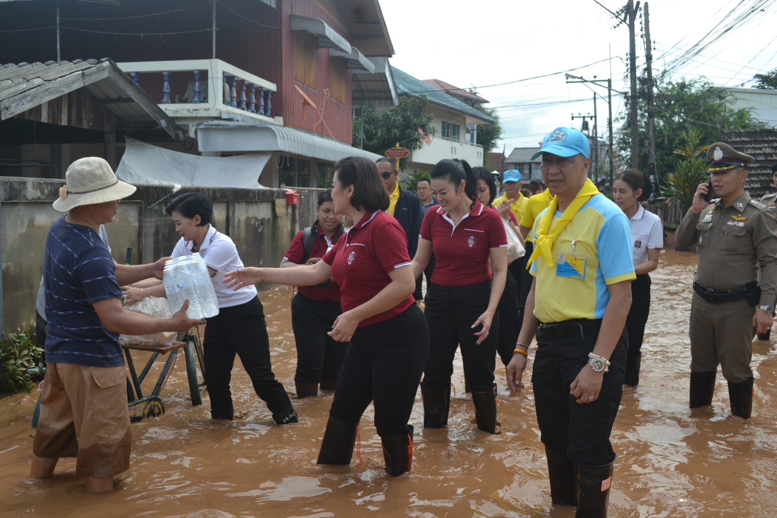จากนั้น ผบ.ตร.ได้มอบถุงยังชีพให้แก่ข้าราชการตำรวจ สภ.เมืองเชียงราย และข้าราชการตำรวจ กก.สส.ภ.จว.เชียงราย ที่ประสบอุทกภัย จำนวน 60 นาย และได้เดินทางไปมอบถุงยังชีพ สิ่งของจำเป็นให้แก่ประชาชนในชุมชนเกาะลอย อ.เมืองเชียงราย จว.เชียงราย