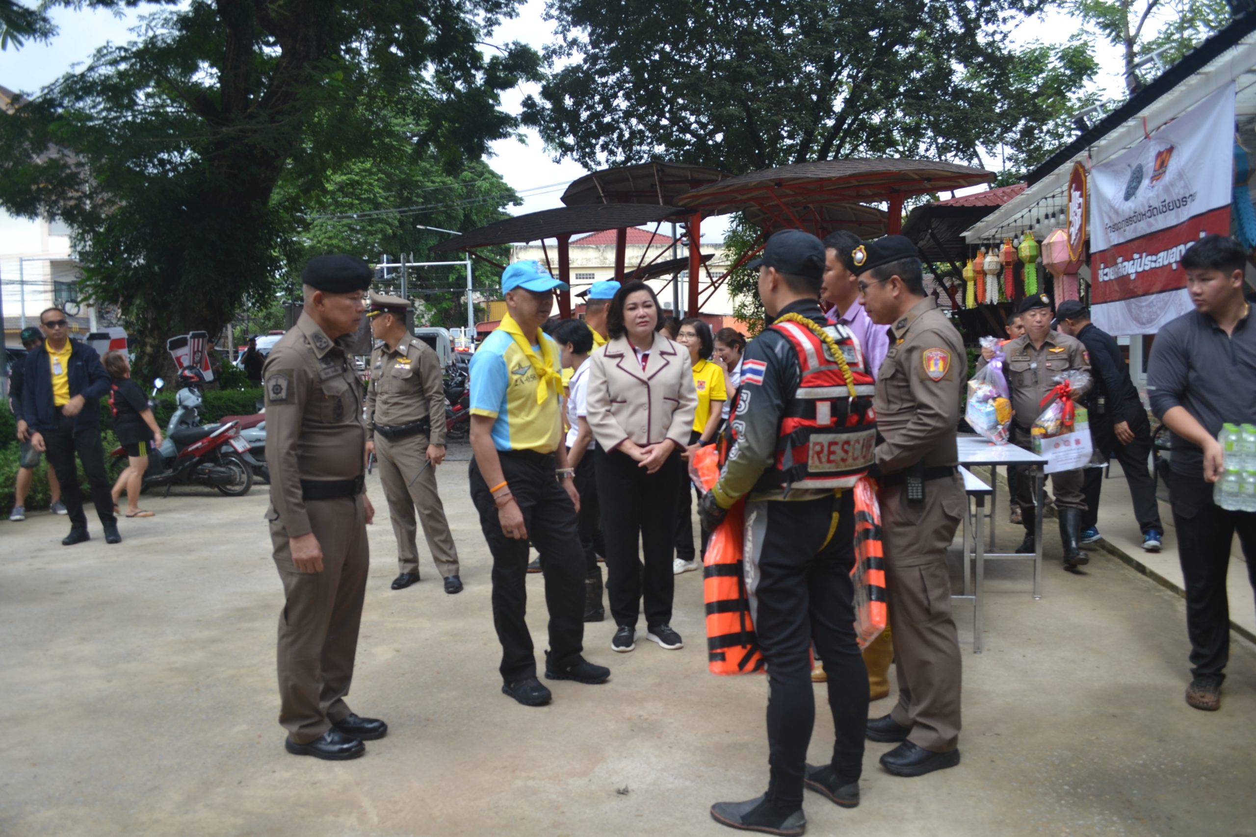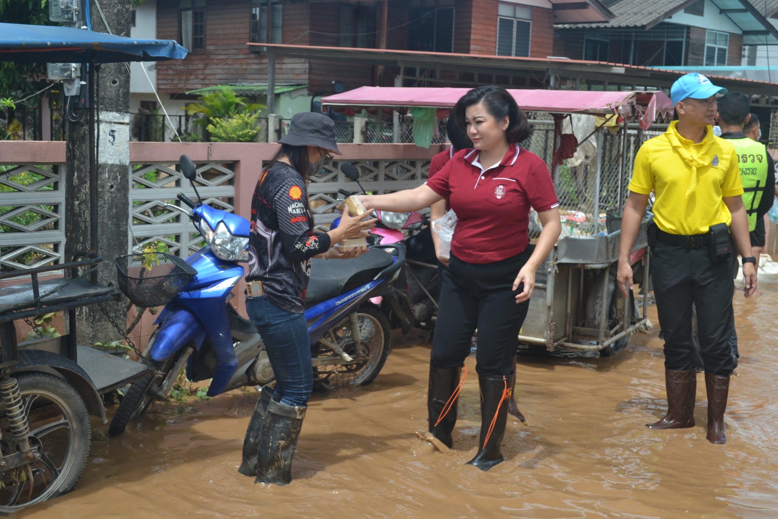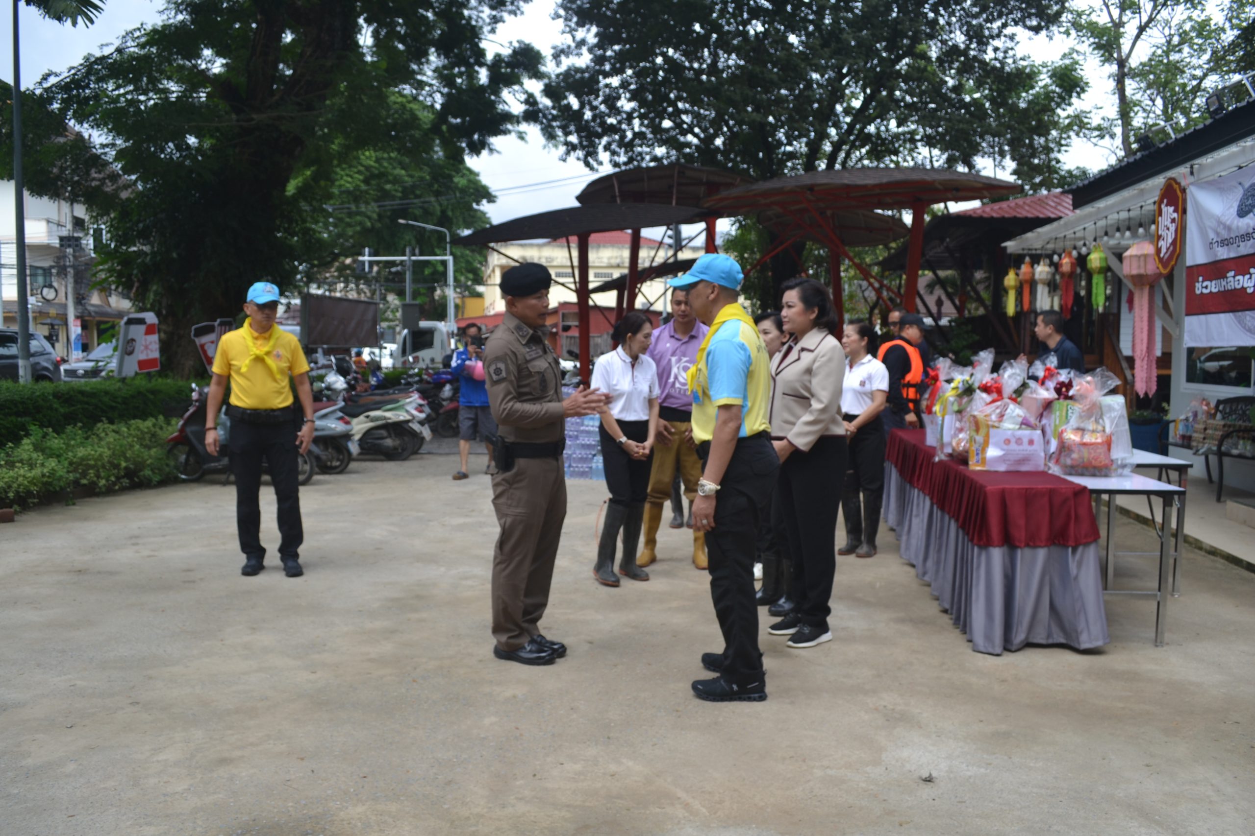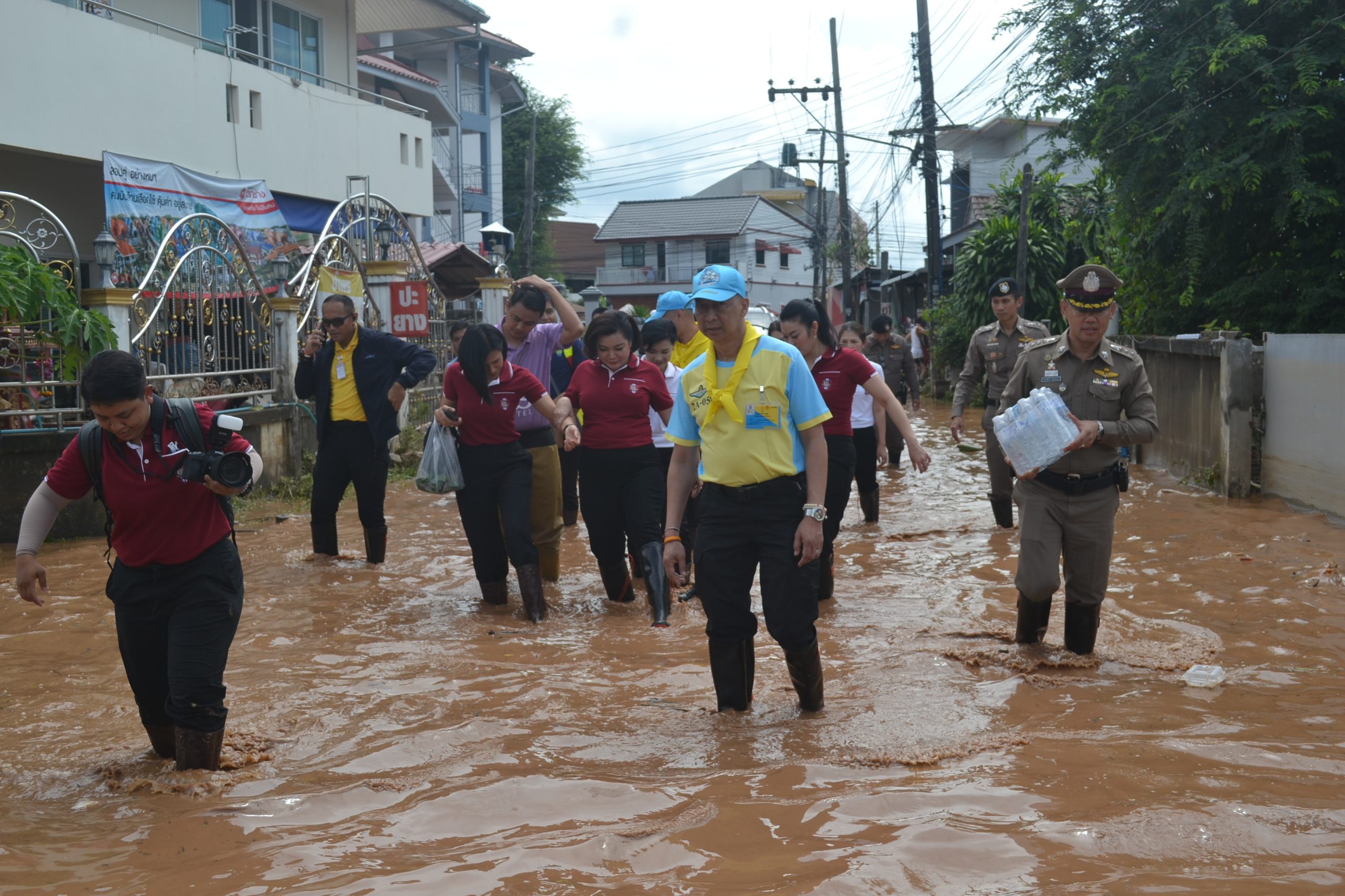 จากนั้น ผบ.ตร.ได้มอบถุงยังชีพให้แก่ข้าราชการตำรวจ สภ.เมืองเชียงราย และข้าราชการตำรวจ กก.สส.ภ.จว.เชียงราย ที่ประสบอุทกภัย จำนวน 60 นาย และได้เดินทางไปมอบถุงยังชีพ สิ่งของจำเป็นให้แก่ประชาชนในชุมชนเกาะลอย อ.เมืองเชียงราย จว.เชียงราย