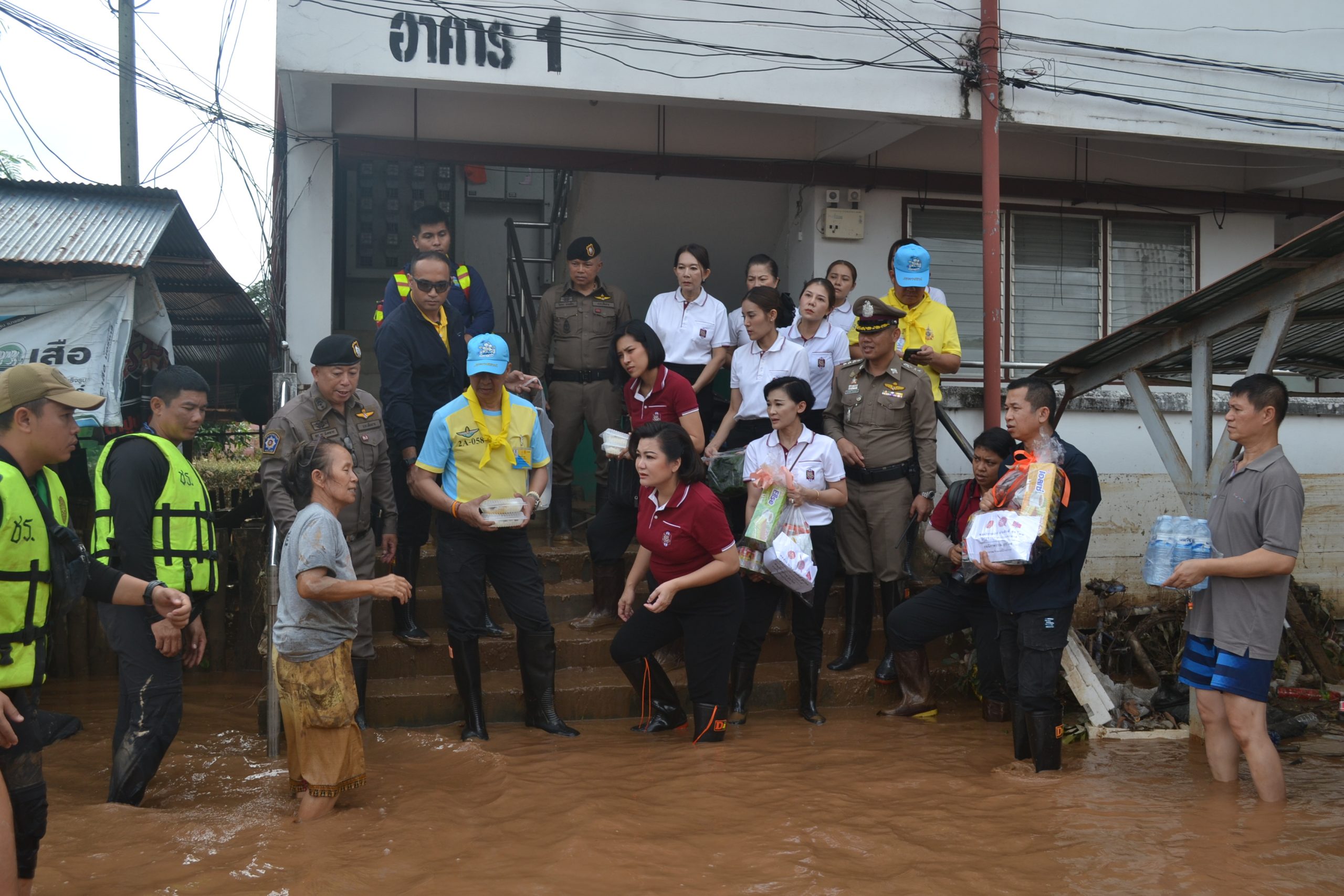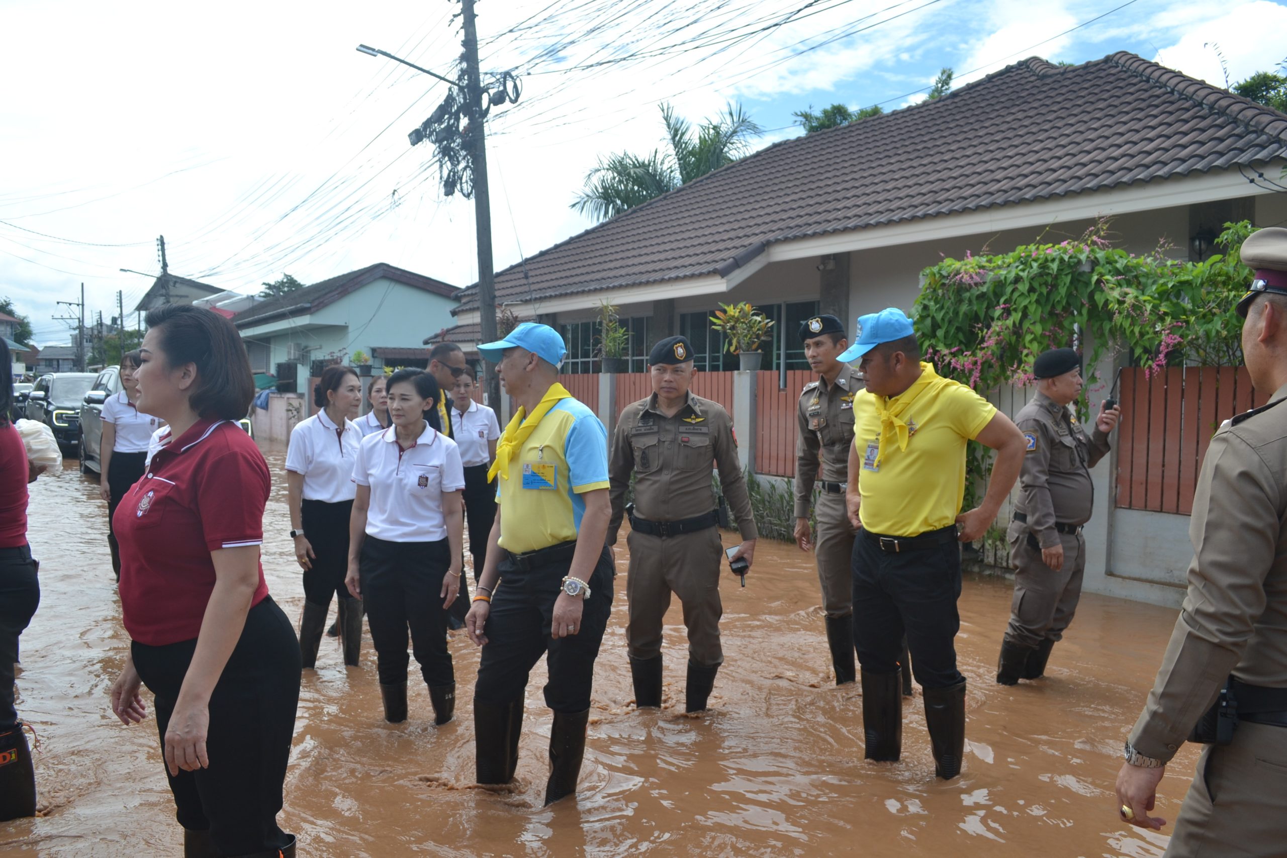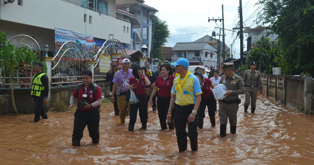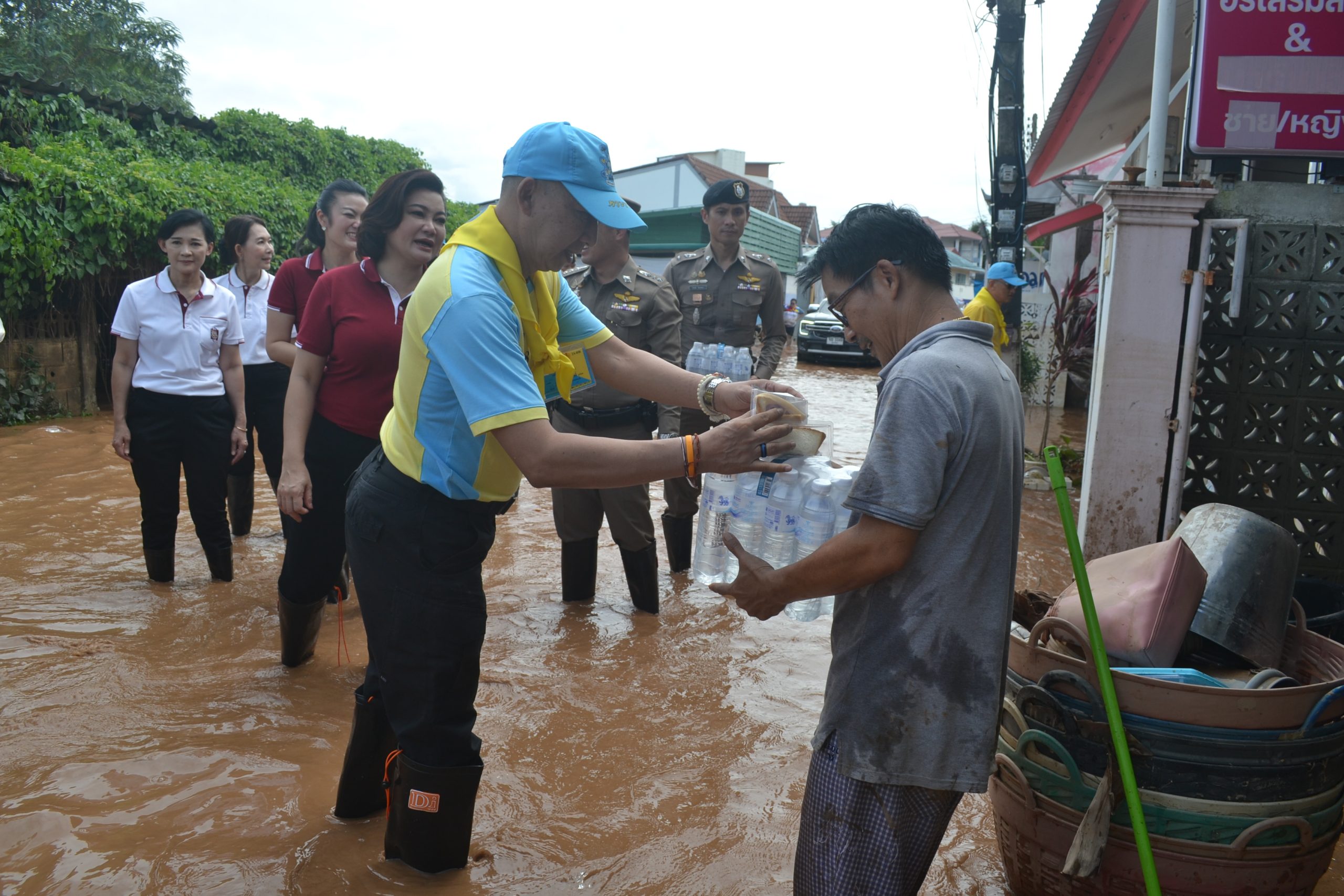 พล.ต.อ.ต่อศักดิ์ สุขวิมล ผบ.ตร. พร้อมด้วย คุณนิภาพรรณ สุขวิมล อุปนายกสมาคมแม่บ้านตำรวจ และคณะ ได้เดินทางมาตรวจเยี่ยมบำรุงขวัญข้าราชการตำรวจ และประชาชนในพื้นประสบอุทกภัย จว.เชียงราย