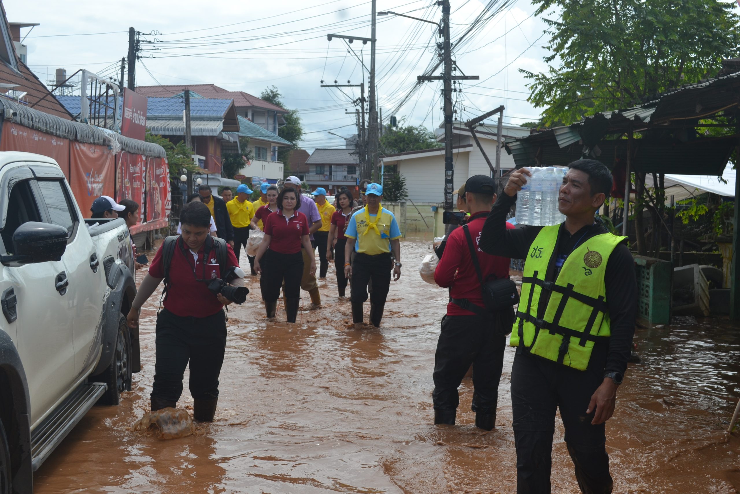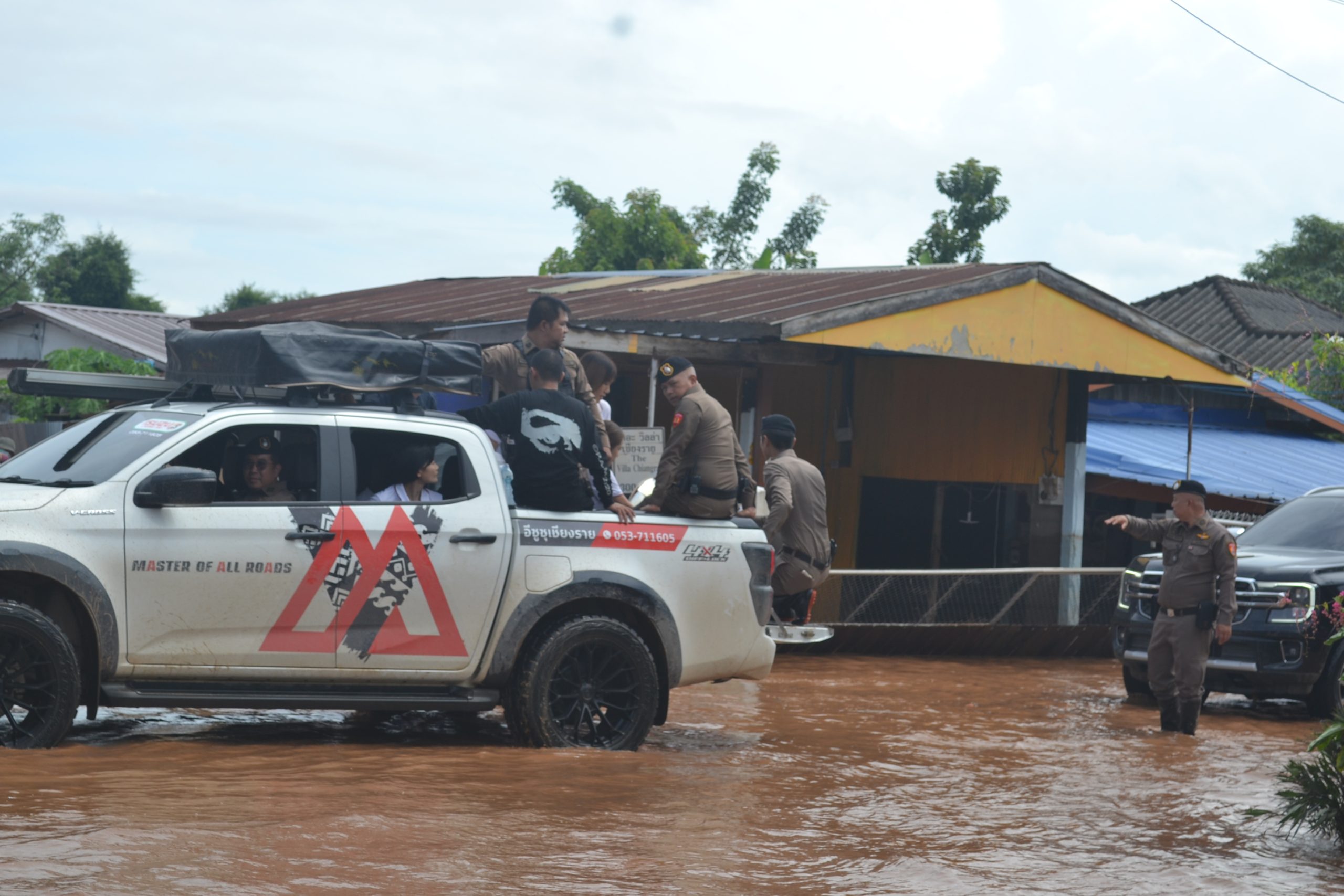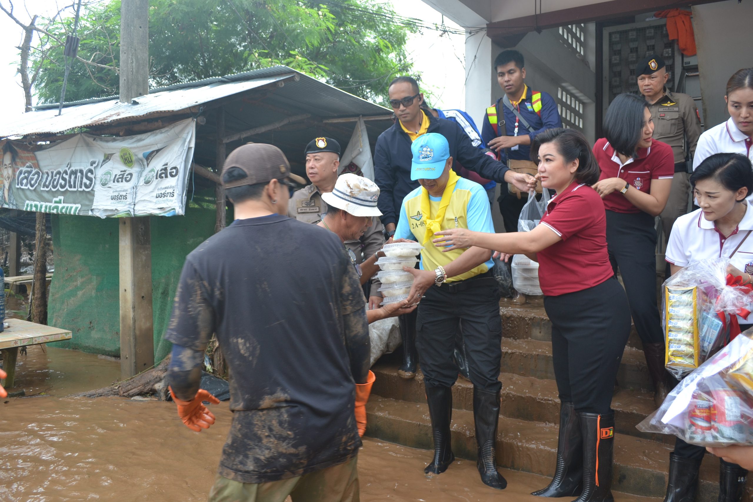 พล.ต.อ.ต่อศักดิ์ สุขวิมล ผบ.ตร. พร้อมด้วย คุณนิภาพรรณ สุขวิมล อุปนายกสมาคมแม่บ้านตำรวจ และคณะ ได้เดินทางมาตรวจเยี่ยมบำรุงขวัญข้าราชการตำรวจ และประชาชนในพื้นประสบอุทกภัย จว.เชียงราย