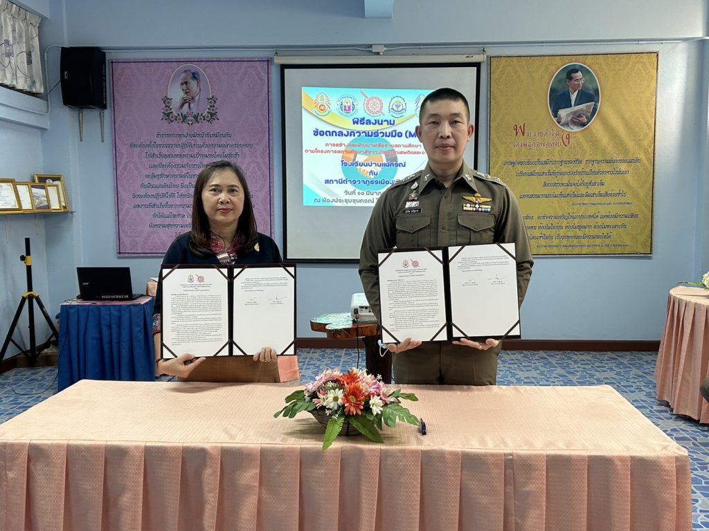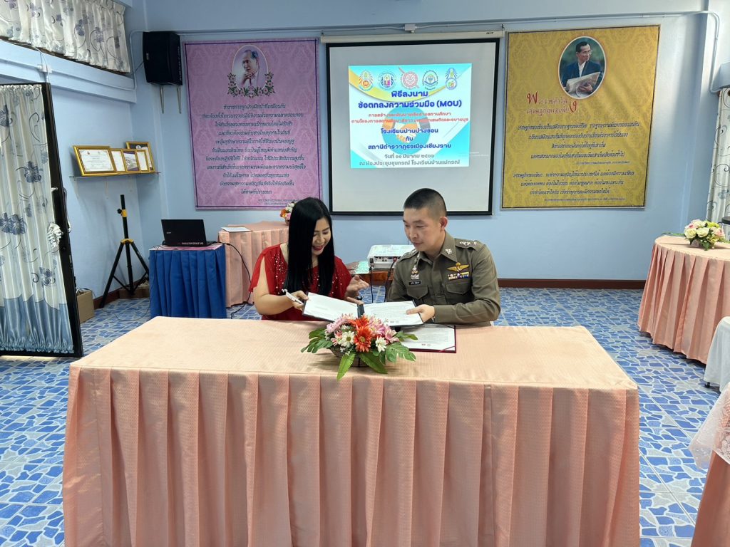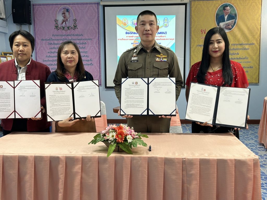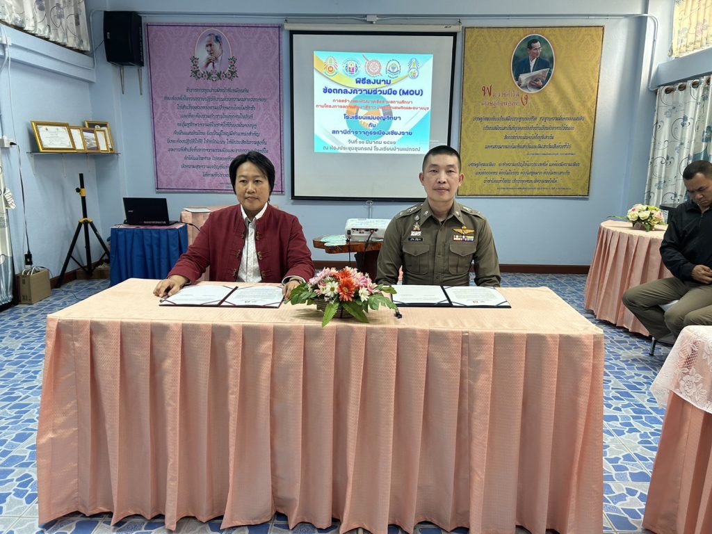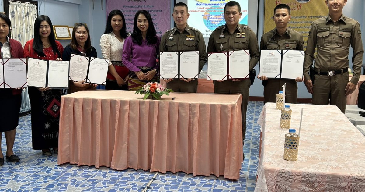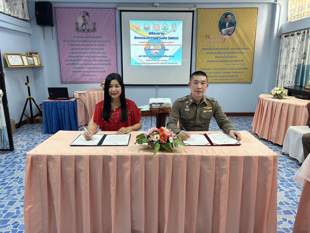 วันที่ 10 มีนาคม 2566 เวลา 13.30 น.โดยการอำนวยการ พ.ต.อ.โสภณ ม่วงเฟื่อง ผกก.สภ.เมืองเชียงราย มอบหมายให้ พ.ต.ท.ภูริวัฒ รุจิรัฐภาส รอง ผกก.ปฯ , พ.ต.ท.เอกพล ยาสิทธิ์ สวป.ฯ และชุด ชมส. ร่วมพิธีลงนามข้อตกลงความร่วมมือ (MOU) การสร้างและพัฒนาเครือข่ายสถานศึกษาตามโครงการสถานศึกษาสีขาวปลอดยาเสพติดและอบายมุข ระหว่าง สภ.เมืองเชียงราย กับ รร.บ้านแม่กรณ์ , รร.แม่มอญวิทยา , รร.บ้านปางขอน และ รร.แม่ยาววิทยา ณ ห้องประชุมขุนกรณ์ รร.บ้านแม่กรณ์