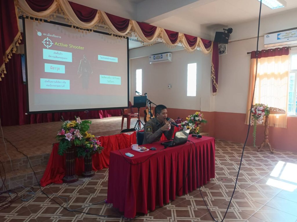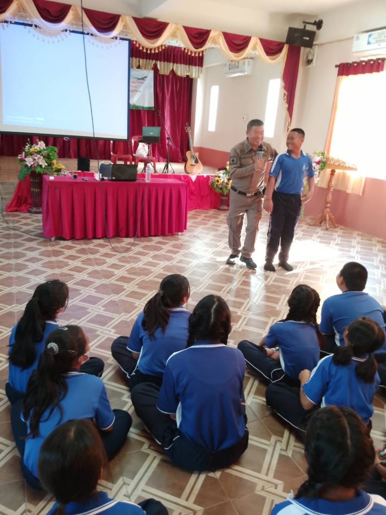 วันที่ 19 ก.พ 67 เวลา 08.30 น. โดยการอำนวยการของ พ.ต.อ.โสภณ ม่วงเฟื่อง ผกก.สภ.เมืองเชียงราย ,พ.ต.ท.ฉันทฤทธิ์ เหล่าไพโรจน์จารี รอง.ผกก.ป.สภ.เมืองเชียงราย มอบหมายให้ พ.ต.ต.อิทธิพัทธิ์ ศรีวิชัย สวป.(ชส.)สภ.เมืองเชียงราย พร้อมชุด ชมส. เดินทางไปอบรมให้ความรู้และฝึกทักษะการเอาตัวรอด “หนี ซ่อน สู้” ให้กับนักเรียนโรงเรียนบ้านหัวดอย ระดับชั้น ป.5 – 6 โดยมีนักเรียนเข้าร่วมการอบรม จำนวน 32 คน