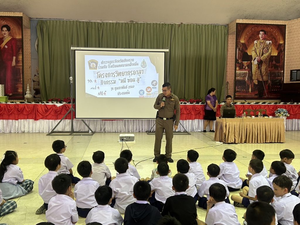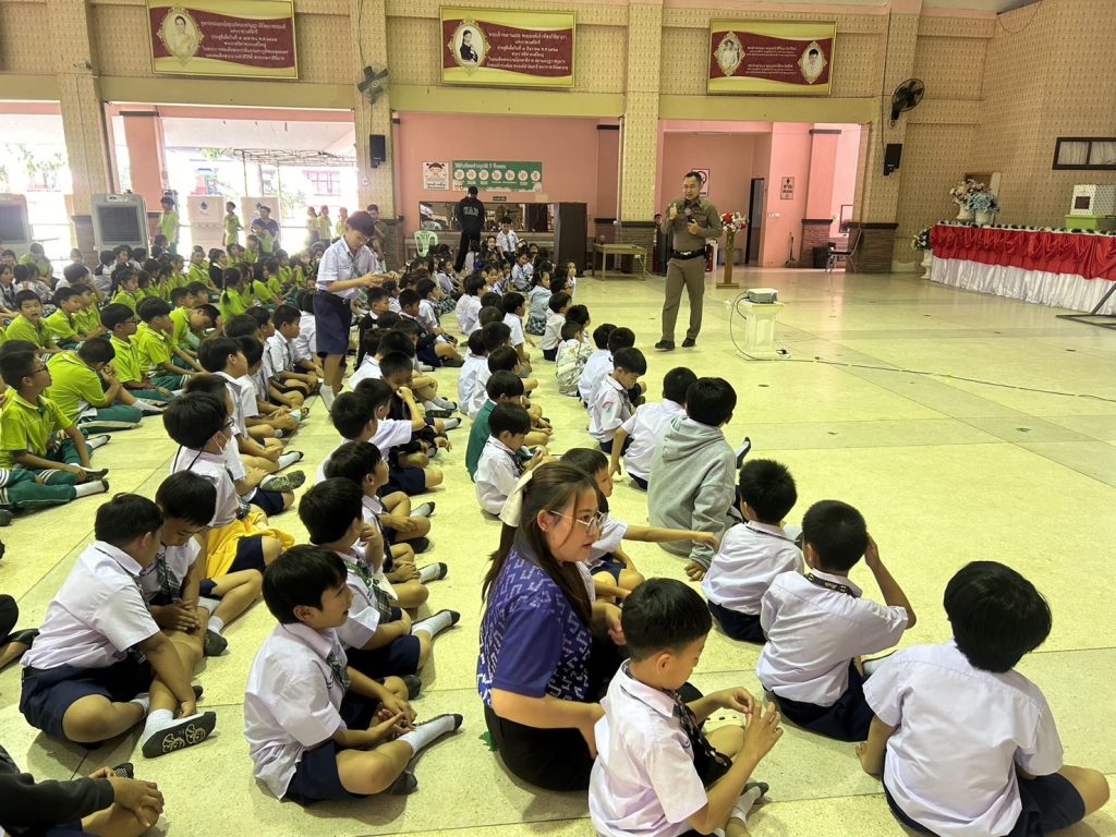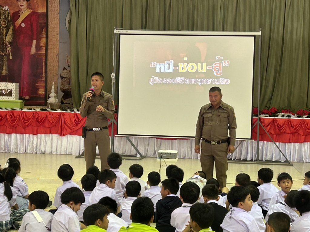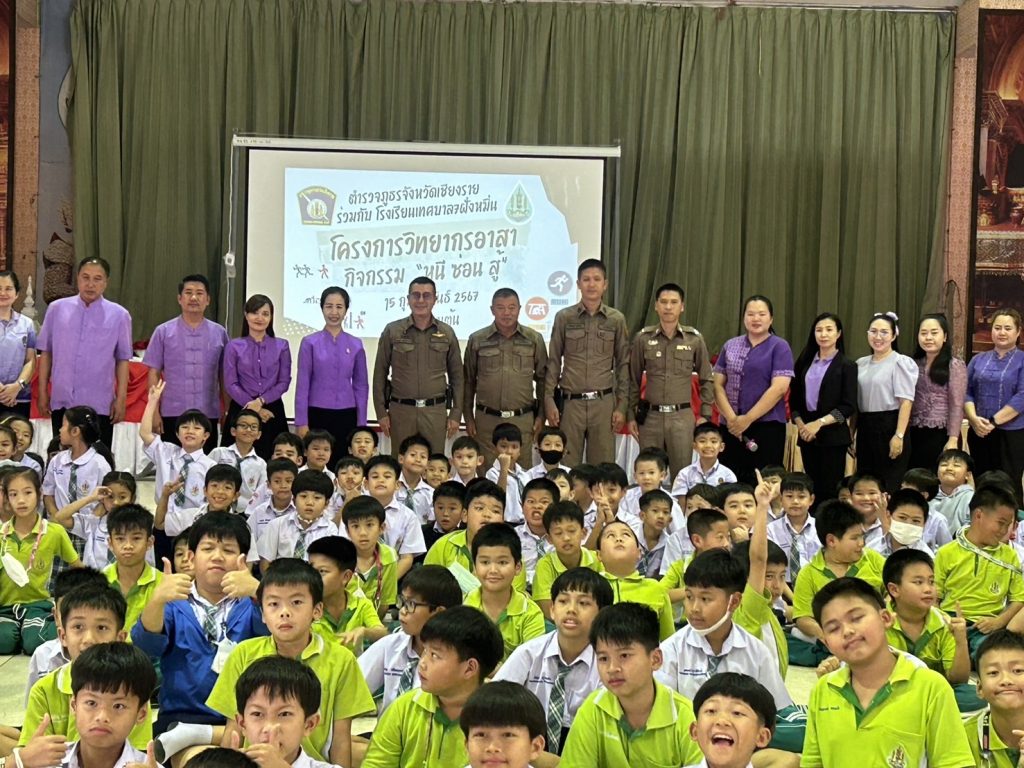 วันที่ 15 ก.พ 67 เวลา 12.30 น. โดยการอำนวยการของ พ.ต.อ.โสภณ ม่วงเฟื่อง ผกก.สภ.เมืองเชียงราย มอบหมายให้ พ.ต.ท.ฉันทฤทธิ์ เหล่าไพโรจน์จารี รอง.ผกก.ป.สภ.เมืองเชียงราย , พ.ต.ต.อิทธิพัทธิ์ ศรีวิชัย สวป.(ชส.)สภ.เมืองเชียงราย พร้อมชุด ชมส. เดินทางไปอบรมให้ความรู้และฝึกทักษะการเอาตัวรอด “หนี ซ่อน สู้” ให้กับนักเรียนโรงเรียนเทศบาล 7 ฝั่งหมิ่น ระดับชั้น ป.1 – 6 โดยมีนักเรียนเข้าร่วมการอบรม จำนวน 639 คน