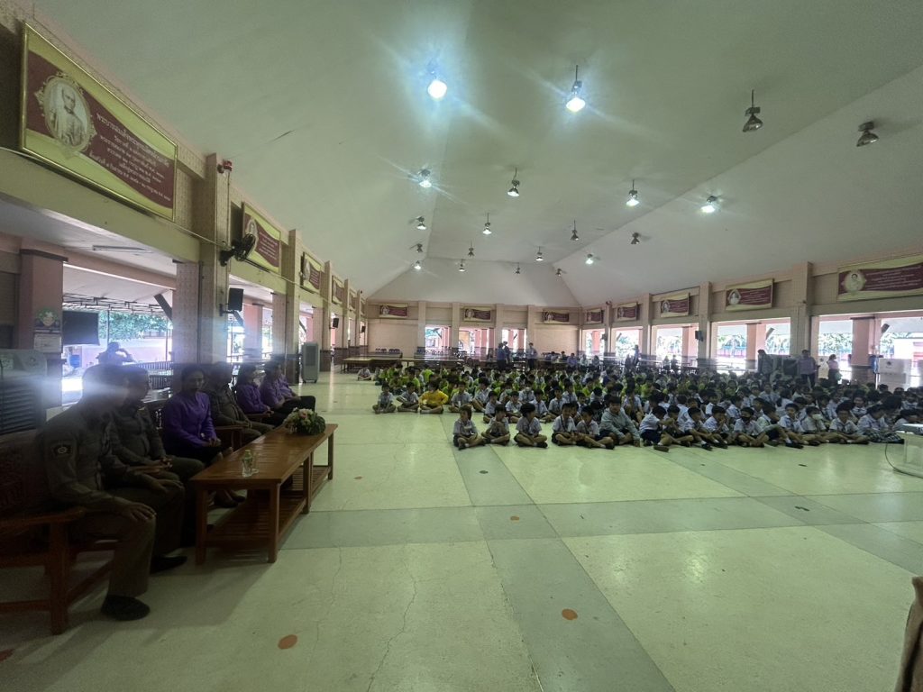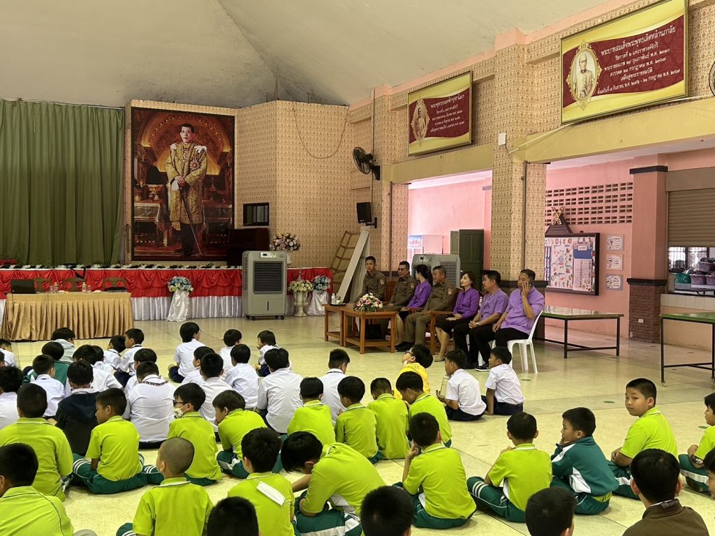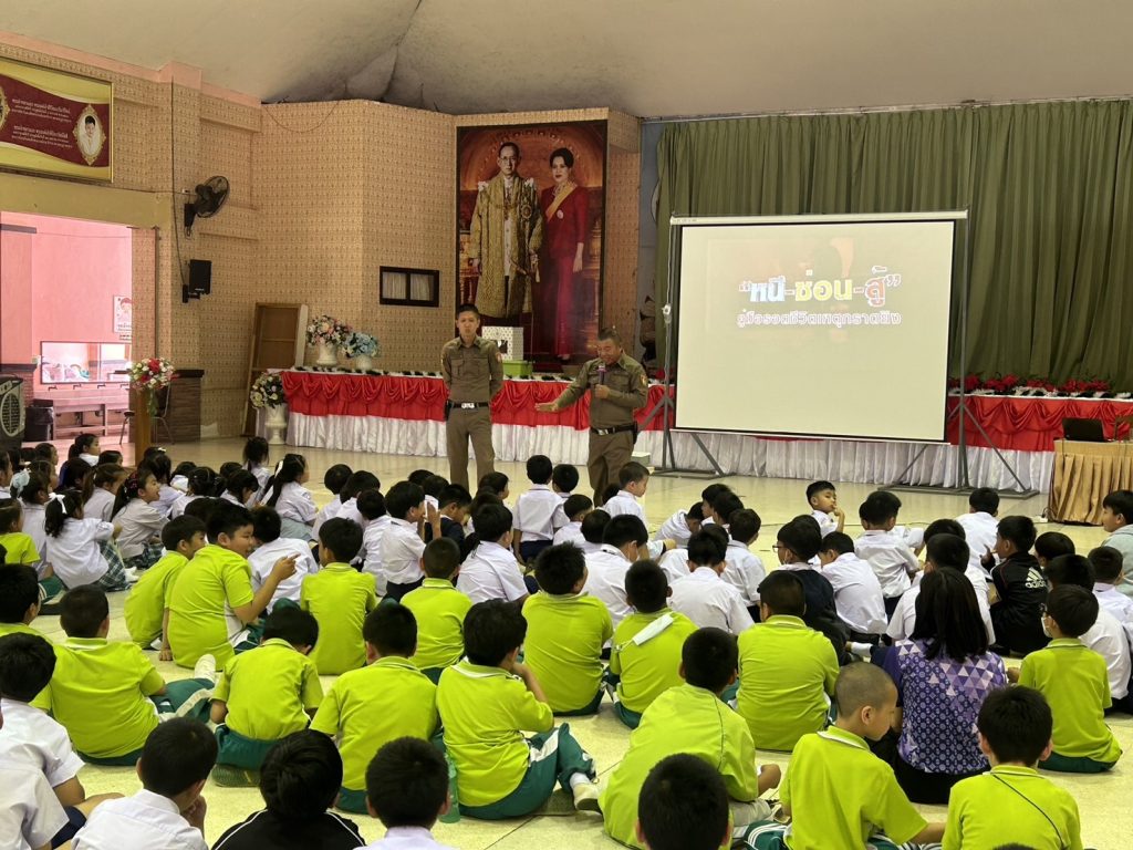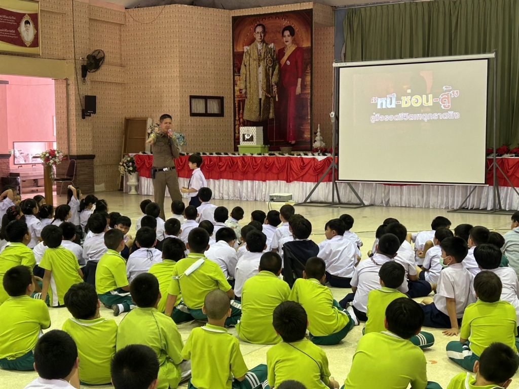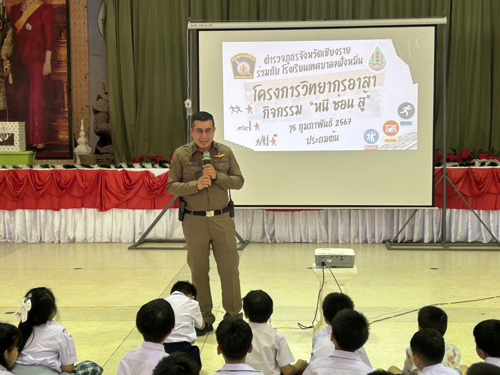 วันที่ 15 ก.พ 67 เวลา 12.30 น. โดยการอำนวยการของ พ.ต.อ.โสภณ ม่วงเฟื่อง ผกก.สภ.เมืองเชียงราย มอบหมายให้ พ.ต.ท.ฉันทฤทธิ์ เหล่าไพโรจน์จารี รอง.ผกก.ป.สภ.เมืองเชียงราย , พ.ต.ต.อิทธิพัทธิ์ ศรีวิชัย สวป.(ชส.)สภ.เมืองเชียงราย พร้อมชุด ชมส. เดินทางไปอบรมให้ความรู้และฝึกทักษะการเอาตัวรอด “หนี ซ่อน สู้” ให้กับนักเรียนโรงเรียนเทศบาล 7 ฝั่งหมิ่น ระดับชั้น ป.1 – 6 โดยมีนักเรียนเข้าร่วมการอบรม จำนวน 639 คน