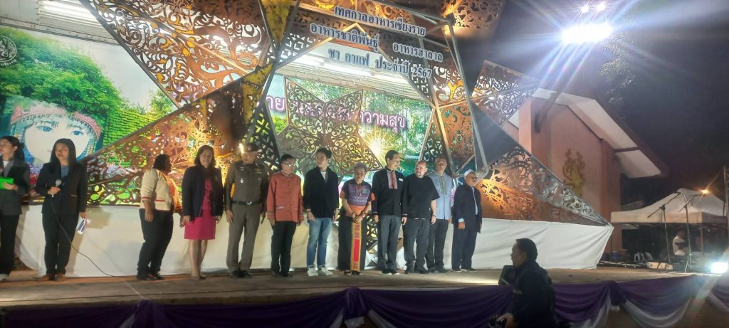 วันที่ 19 ม.ค.2567 เวลา 18.00 น. พ.ต.อ.โสภณ ม่วงเฟื่อง ผกก.สภ.เมือง เชียงราย ร่วมงานพิธีเปิด เทศกาลอาหารเชียงราย อาหารชาติพันธุ์ อาหารฮาลาล ชากาแฟ ประจำปี 2567 (CHIANGRAI FOOD FESTIVAL 2024) ณ สวนตุงและโคม จังหวัดเชียงราย โดยมี นายวันชัย จงสุทธานามณี นายกเทศมนตรีนครเชียงราย เป็นประธานจัดงาน