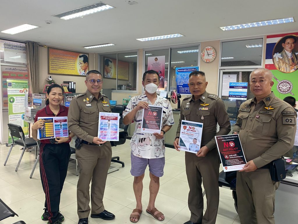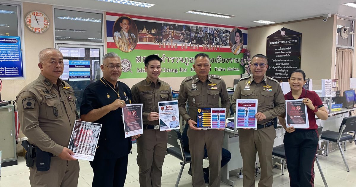 พ.ต.อ.โสภณ ม่วงเฟื่อง ผกก.สภ.เมืองเชียงราย ร่วมรณรงค์แสดงเจตนารมณ์ ไม่รับ-ไม่ให้ ของขวัญของกำนัลในการปฏิบัติหน้าที่ทุกชนิด โดยได้แจกโปสเตอร์ประชาสัมพันธ์ No Gift Policy ให้แก่ข้าราชการตำรวจ สภ.เมืองเชียงราย และประชาชนที่มาติดต่อราชการ 19 มีนาคม 2568 โดย admin / ITA,ข่าวประชาสัมพันธ์,ข่าวกิจกรรม วันที่ 19 มีนาคม 2568 เวลา 14.00 น. พ.ต.อ.โสภณ ม่วงเฟื่อง ผกก.สภ.เมืองเชียงราย ร่วมรณรงค์แสดงเจตนารมณ์ ไม่รับ-ไม่ให้ ของขวัญของกำนัลในการปฏิบัติหน้าที่ทุกชนิด โดยได้แจกโปสเตอร์ประชาสัมพันธ์ No Gift Policy ให้แก่ข้าราชการตำรวจ สภ.เมืองเชียงราย และประชาชนที่มาติดต่อราชการ ณ สภ.เมืองเชียงราย FacebookFacebookXXLINELine
