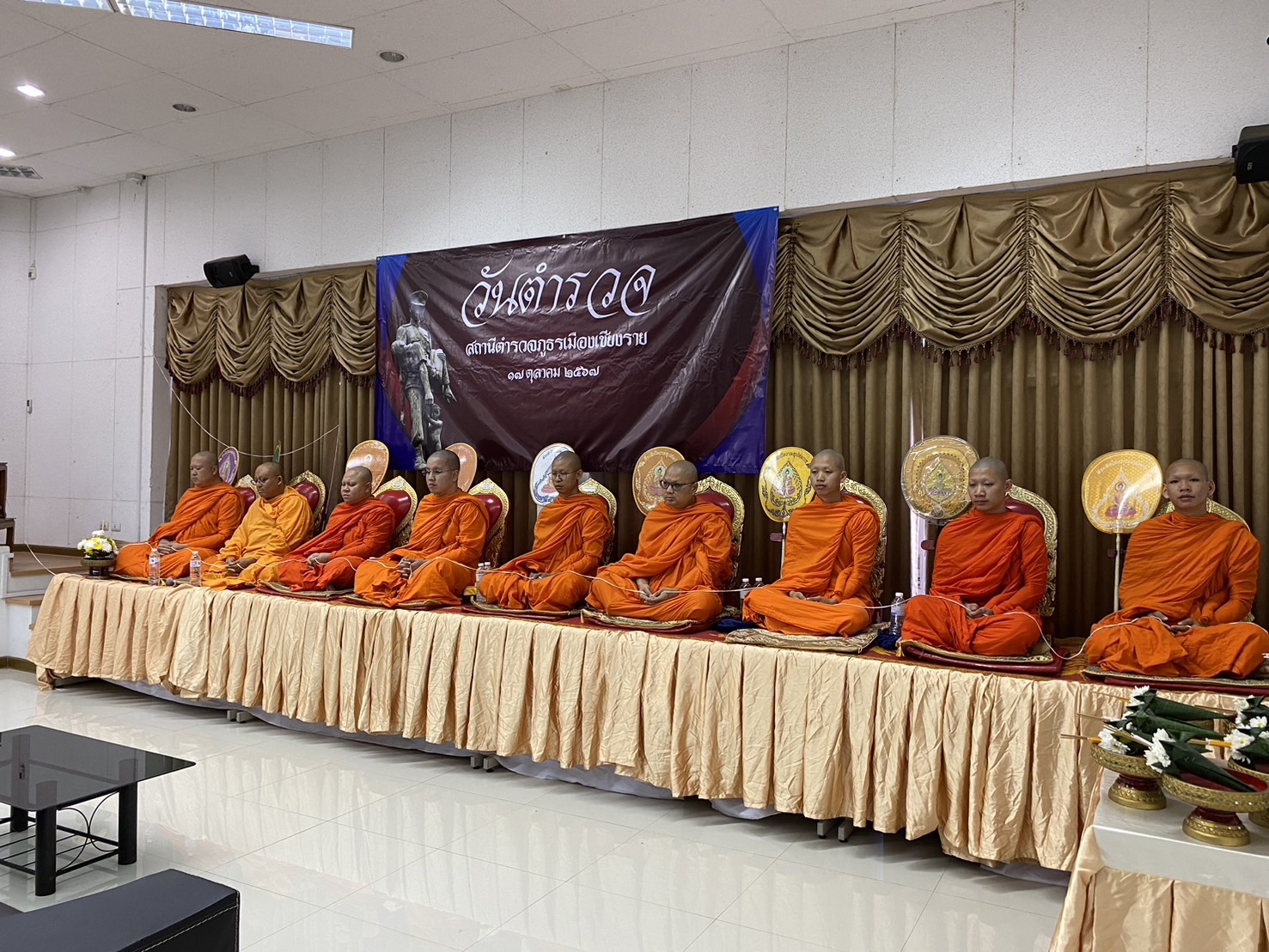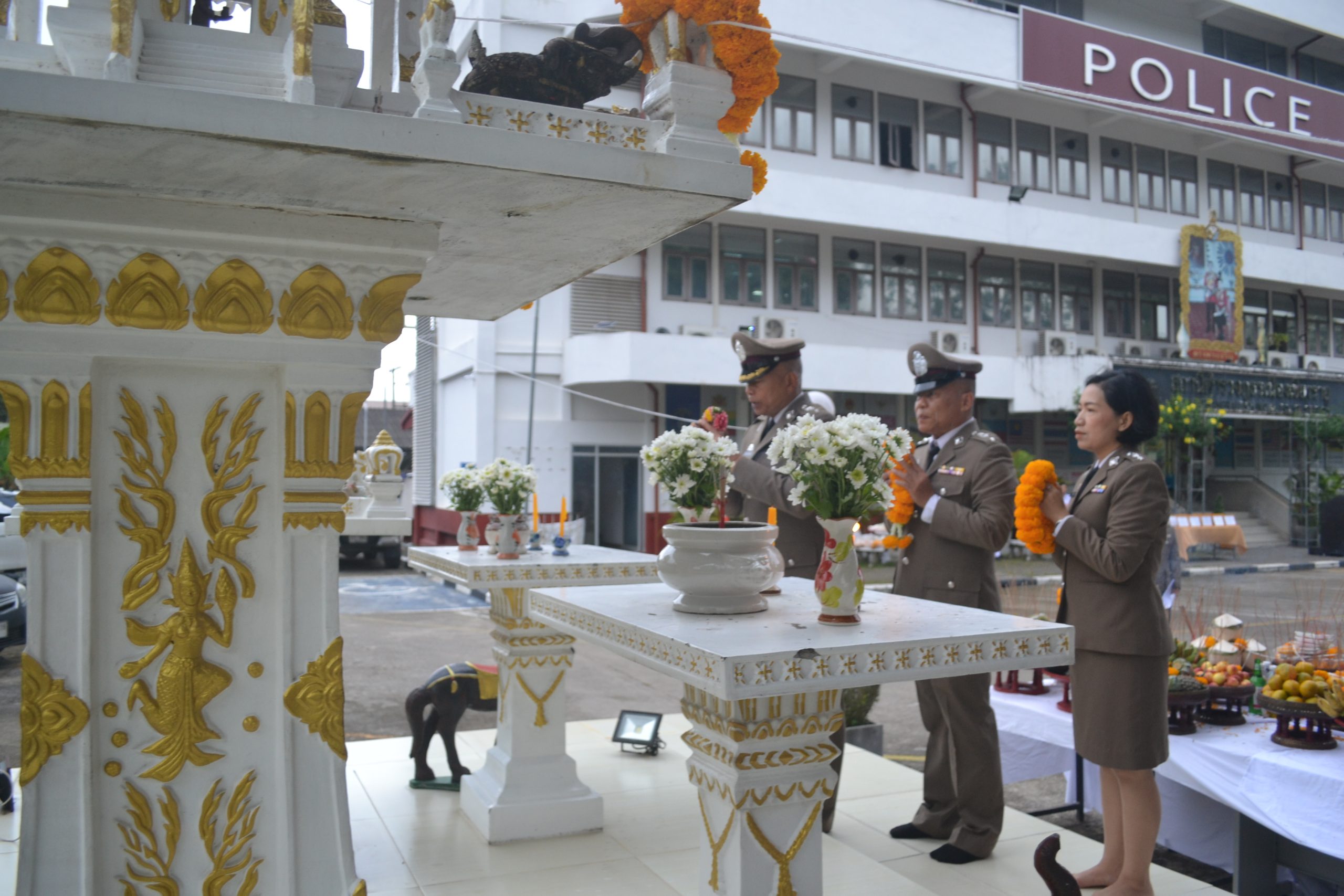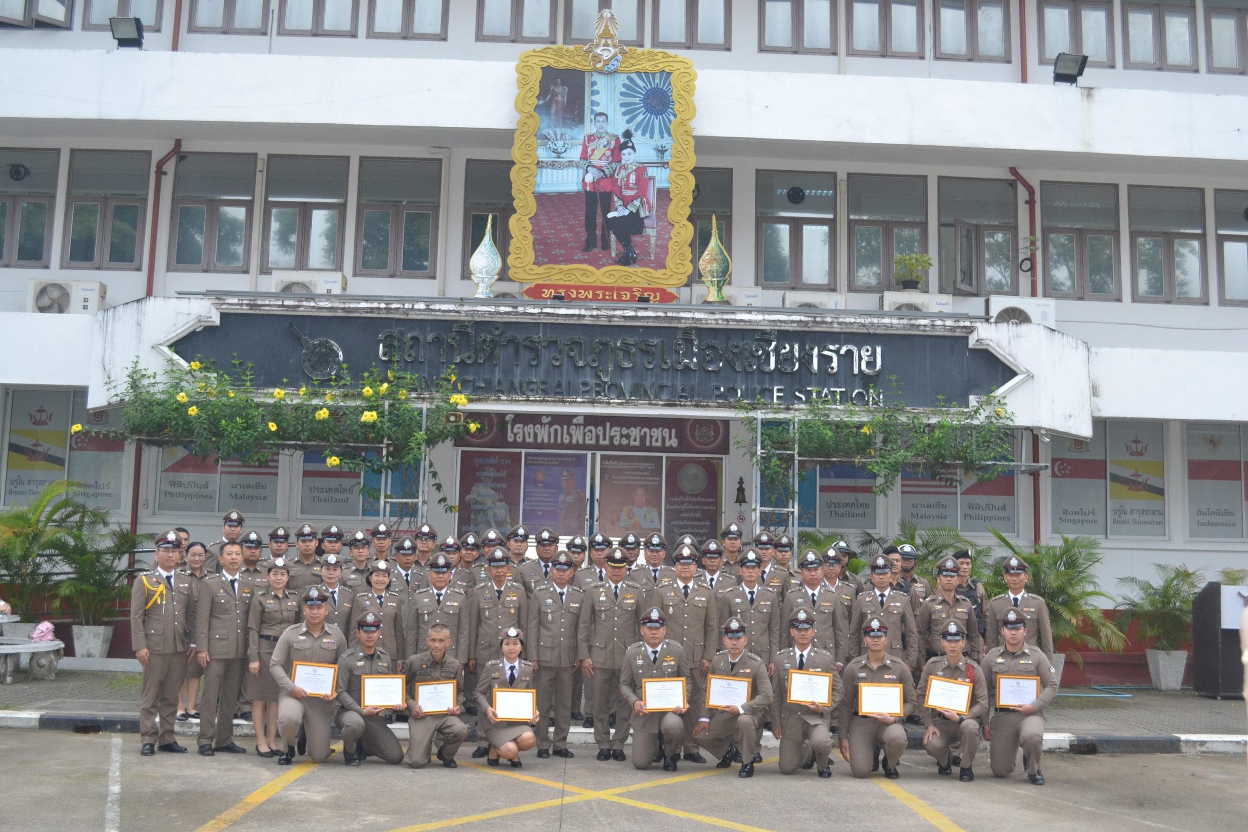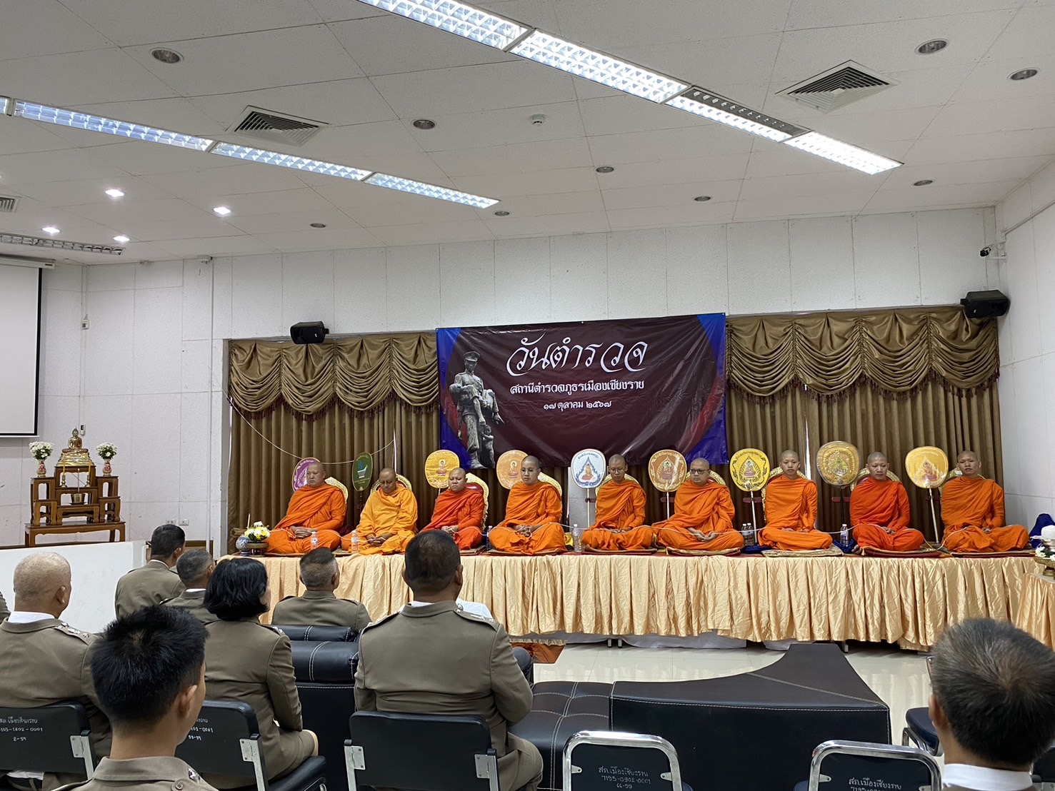 วันที่ 17 ต.ค.2567 เวลา 07.30 น. พ.ต.อ.โสภณ ม่วงเฟื่อง ผกก.สภ.เมืองเชียงราย ประธานฯ พร้อมด้วย พ.ต.ท.ธวัชชัย ระวังศรี รอง ผกก.(สอบสวน) สภ.เมืองเชียงราย, พ.ต.ท.พันชาติ สมตัว รอง ผกก.จร.สภ.เมืองเชียงราย, พ.ต.ท.จำเนียน แสงคำ รอง ผกก.(สอบสวน) สภ.เมืองเชียงราย, พ.ต.ท.พรต เศรษฐกร รอง ผกก.สส.สภ.เมืองเชียงราย และข้าราชการตำรวจ ในสังกัด สภ.เมืองเชียงราย ทำกิจกรรมเนื่องใน "วันตำรวจ ประจำปี 2567" ทำพิธีบวงสรวงศาลพระภูมิ ศาลตายายประจำ สภ.เมืองเชียงราย, เคารพธงชาติ กล่าวคำปฏิญาณตน ท่องอุดมคติตำรวจ ประธานอ่านสารวันตำรวจ และร่วมกันร้องเพลงมาร์ชตำรวจ และมอบประกาศเกียรติคุณข้าราชการตำรวจดีเด่นประจำปี 2567 ณ บริเวณที่ทำการ สภ.เมืองเชียงราย และจากนั้น เวลา 10.00 น. จัดพิธีทำบุญเลี้ยงพระ เพื่อความเป็นสิริมงคลแก่หน่วยงาน และอุทิศส่วนบุญส่วนกุศลให้แก่ข้าราชการตำรวจที่ได้ล่วงลับไปแล้ว ณ ห้องประชุมชั้น 4 สภ.เมืองเชียงราย