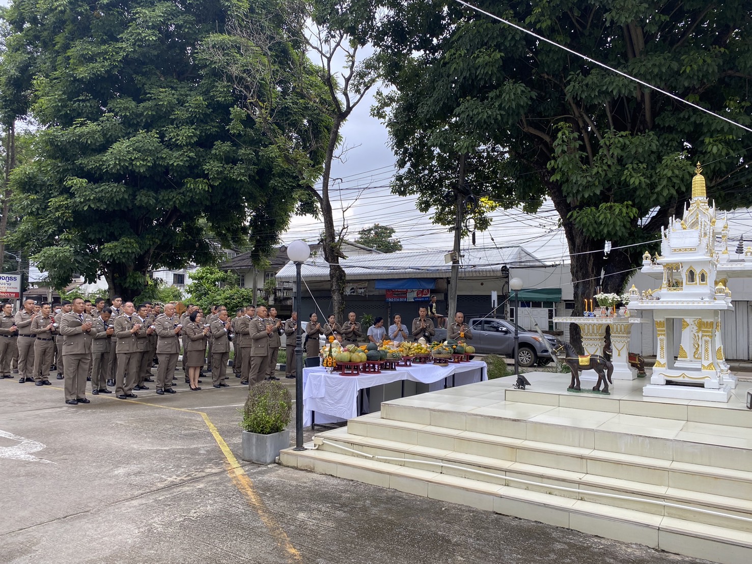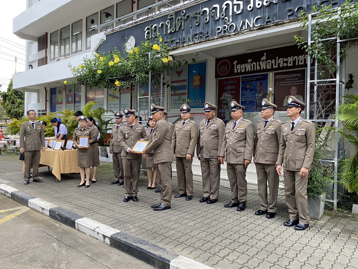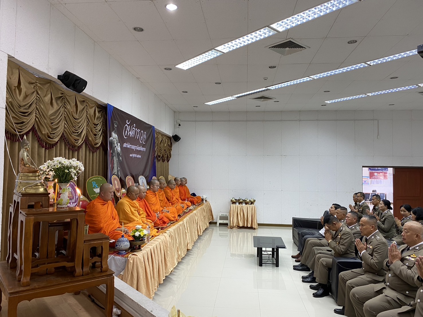 วันที่ 17 ต.ค.2567 เวลา 07.30 น. พ.ต.อ.โสภณ ม่วงเฟื่อง ผกก.สภ.เมืองเชียงราย ประธานฯ พร้อมด้วย พ.ต.ท.ธวัชชัย ระวังศรี รอง ผกก.(สอบสวน) สภ.เมืองเชียงราย, พ.ต.ท.พันชาติ สมตัว รอง ผกก.จร.สภ.เมืองเชียงราย, พ.ต.ท.จำเนียน แสงคำ รอง ผกก.(สอบสวน) สภ.เมืองเชียงราย, พ.ต.ท.พรต เศรษฐกร รอง ผกก.สส.สภ.เมืองเชียงราย และข้าราชการตำรวจ ในสังกัด สภ.เมืองเชียงราย ทำกิจกรรมเนื่องใน "วันตำรวจ ประจำปี 2567" ทำพิธีบวงสรวงศาลพระภูมิ ศาลตายายประจำ สภ.เมืองเชียงราย, เคารพธงชาติ กล่าวคำปฏิญาณตน ท่องอุดมคติตำรวจ ประธานอ่านสารวันตำรวจ และร่วมกันร้องเพลงมาร์ชตำรวจ และมอบประกาศเกียรติคุณข้าราชการตำรวจดีเด่นประจำปี 2567 ณ บริเวณที่ทำการ สภ.เมืองเชียงราย และจากนั้น เวลา 10.00 น. จัดพิธีทำบุญเลี้ยงพระ เพื่อความเป็นสิริมงคลแก่หน่วยงาน และอุทิศส่วนบุญส่วนกุศลให้แก่ข้าราชการตำรวจที่ได้ล่วงลับไปแล้ว ณ ห้องประชุมชั้น 4 สภ.เมืองเชียงราย