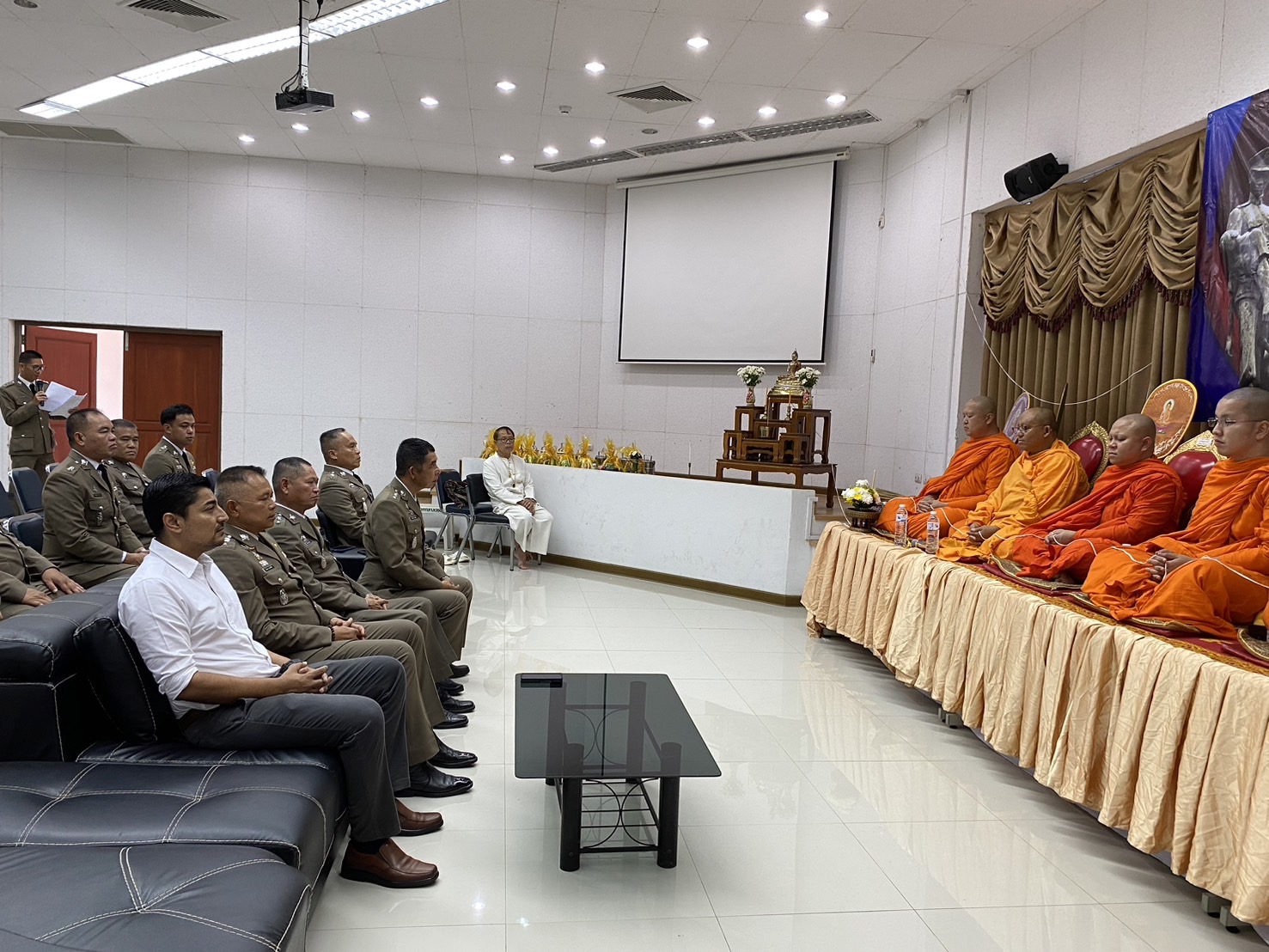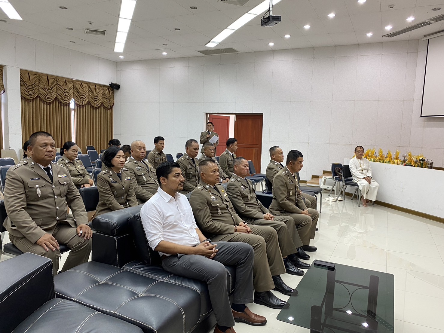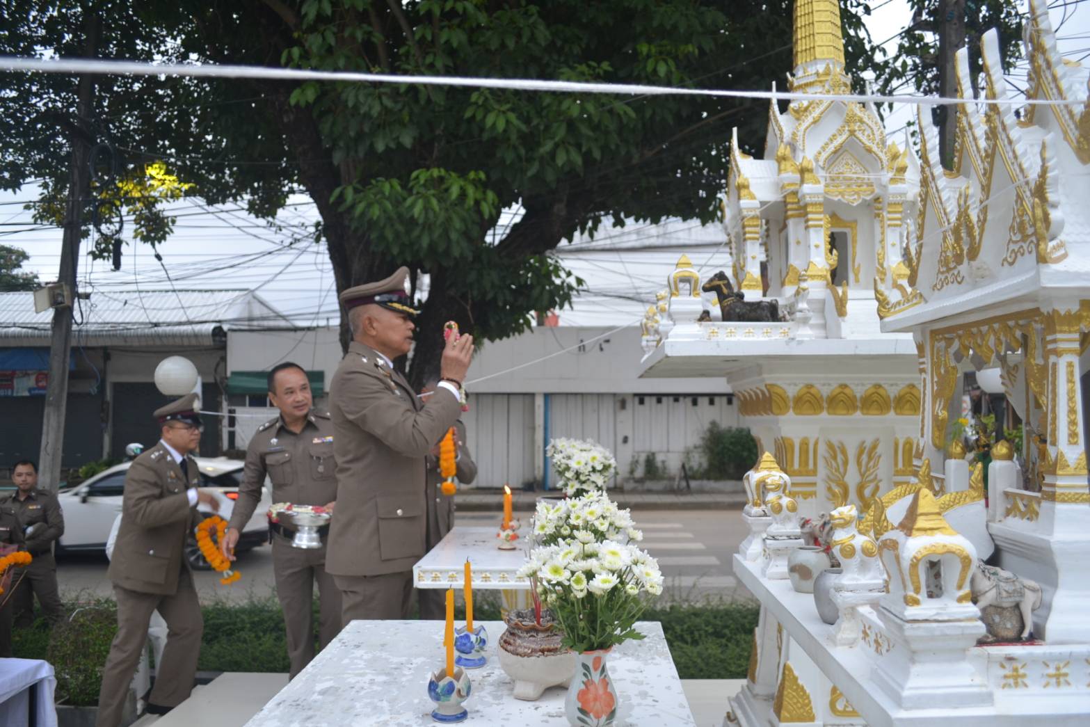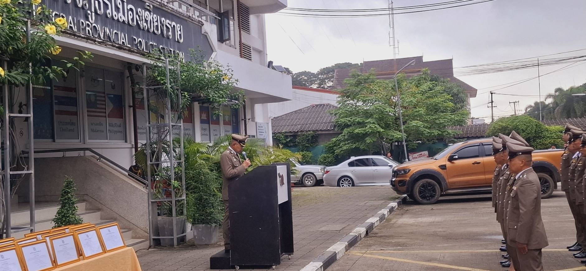 วันที่ 17 ต.ค.2567 เวลา 07.30 น. พ.ต.อ.โสภณ ม่วงเฟื่อง ผกก.สภ.เมืองเชียงราย ประธานฯ พร้อมด้วย พ.ต.ท.ธวัชชัย ระวังศรี รอง ผกก.(สอบสวน) สภ.เมืองเชียงราย, พ.ต.ท.พันชาติ สมตัว รอง ผกก.จร.สภ.เมืองเชียงราย, พ.ต.ท.จำเนียน แสงคำ รอง ผกก.(สอบสวน) สภ.เมืองเชียงราย, พ.ต.ท.พรต เศรษฐกร รอง ผกก.สส.สภ.เมืองเชียงราย และข้าราชการตำรวจ ในสังกัด สภ.เมืองเชียงราย ทำกิจกรรมเนื่องใน "วันตำรวจ ประจำปี 2567" ทำพิธีบวงสรวงศาลพระภูมิ ศาลตายายประจำ สภ.เมืองเชียงราย, เคารพธงชาติ กล่าวคำปฏิญาณตน ท่องอุดมคติตำรวจ ประธานอ่านสารวันตำรวจ และร่วมกันร้องเพลงมาร์ชตำรวจ และมอบประกาศเกียรติคุณข้าราชการตำรวจดีเด่นประจำปี 2567 ณ บริเวณที่ทำการ สภ.เมืองเชียงราย และจากนั้น เวลา 10.00 น. จัดพิธีทำบุญเลี้ยงพระ เพื่อความเป็นสิริมงคลแก่หน่วยงาน และอุทิศส่วนบุญส่วนกุศลให้แก่ข้าราชการตำรวจที่ได้ล่วงลับไปแล้ว ณ ห้องประชุมชั้น 4 สภ.เมืองเชียงราย