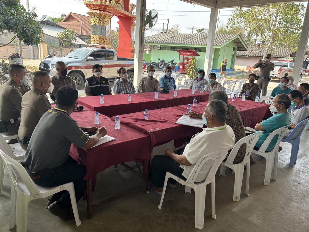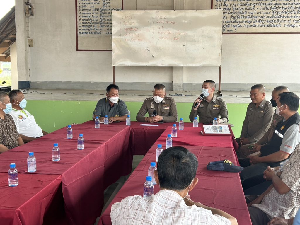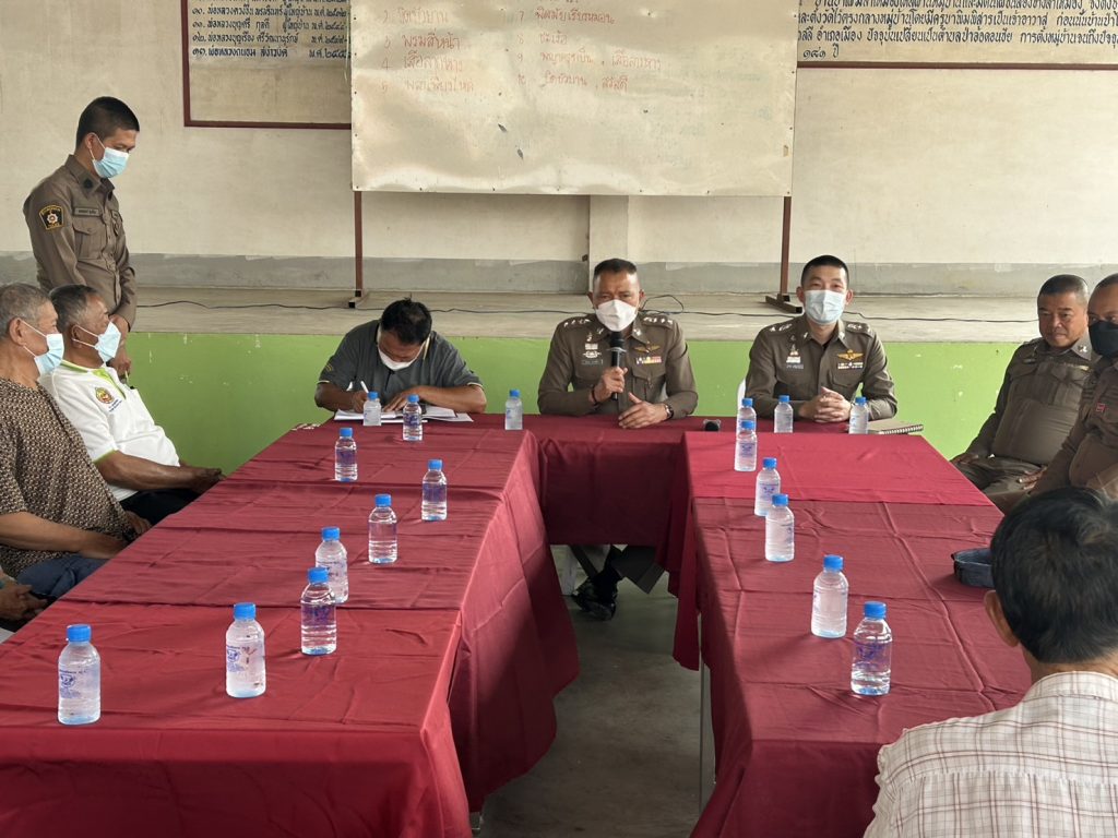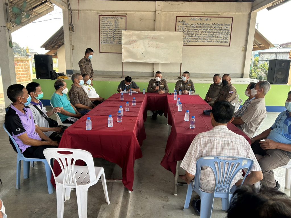 วันที่ 1 มี.ค.66 เวลา 14.20 น. พ.ต.อ.โสภณ ม่วงเฟื่อง ผกก.สภ.เมืองเชียงราย พร้อมด้วย พ.ต.ท.ภูริวัฒ ริจิรัฐภาส รอง ผกก.ป.สภ.เมืองเชียงราย , พ.ต.ท.เอกพล ยาสิทธิ์ สวป.สภ.เมืองเชียงราย สวป.สภ.เมืองเชียงราย ,จนท.สายตรวจประจำตู้ยามขุนกรณ์ และชุดปฏิบัติการชุมชนยั่งยืน เข้าพบปะ ประชุมร่วมกับผู้ใหญ่บ้านและคณะกรรมการหมู่บ้านป่าไผ่ ม.4 ต.ป่าอ้อดอนชัย อ.เมืองเชียงราย จว.เชียงราย เพื่อขับเคลื่อนโครงการ ค้นหาผู้ใช้ ผู้เสพ ผู้ติดยาเสพติดและผู้ป่วยจิตเวช เพื่อนำเข้าสู่กระบวนการบำบัดรักษา โดยได้แจกผ้าป่ายาเสพติดเพื่อเป็นข้อมูลในการค้นหาและได้ปรึกษา รับฟังปัญหาที่ต้องการให้ตำรวจเข้ามาร่วมแก้ไข