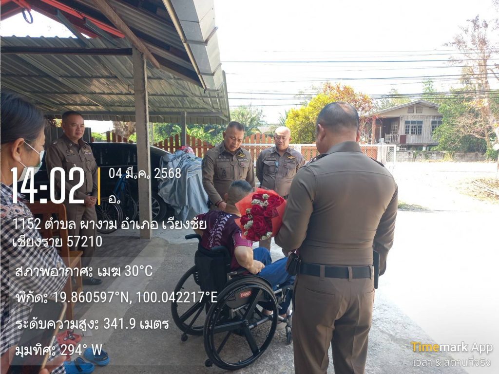 สภ. เมืองเชียงราย วันที่ 4 มี.ค.2568 เวลา 14.00 น. พ.ต.อ.โสภณ ม่วงเฟื่อง ผู้กำกับการสถานีตำรวจภูธร เมืองเชียงราย พร้อมด้วย พ.ต.ทสถาพร มังคลาด สวป.ฯ พ.ต.ต.อิทธิพัทธิ์ ศรีวิชัย สวป.(ชส.)ฯ กต.ตร.สภ.เมืองเชียงราย, ร.ต.ท.ณษาพงศ์. นิตินันทิกานต์ รอง สว.(ป.)ฯ แสดงความยิน กับ ร.ต.อ.พนมปวงคำ บ้านผางาม ต.เวียงชัย อ.เวียงชัย จ.เชียงราย