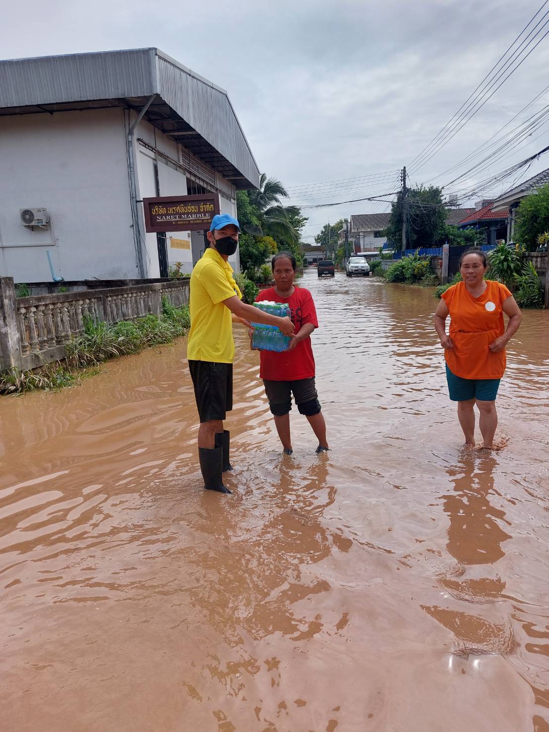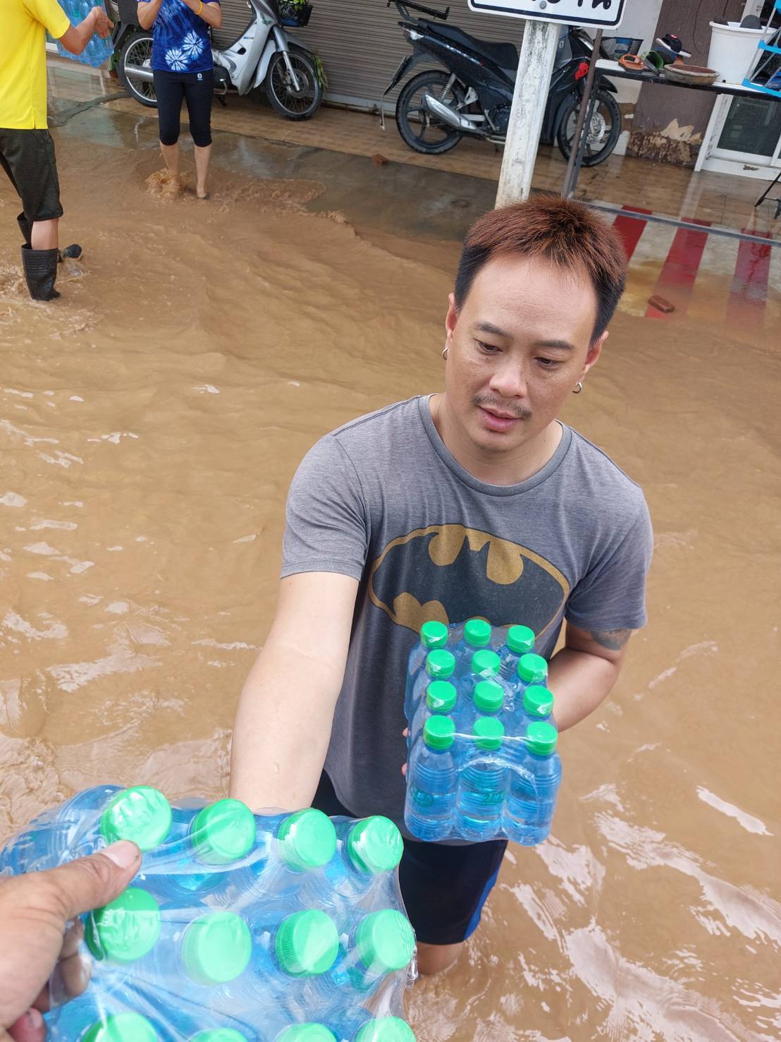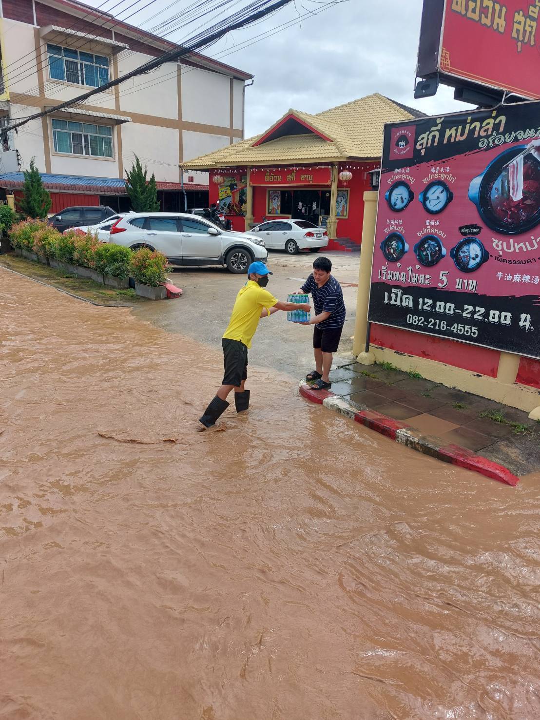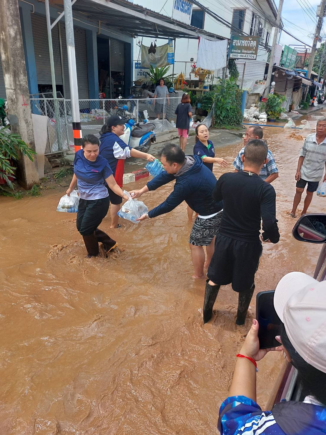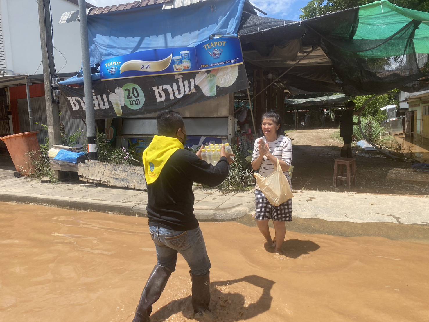 ร.ต.อ.ประกาย หล้าธิ พร้อมเจ้าหน้าที่ประจำจุดตรวจจำบอน พร้อมรถยนต์101 นำน้ำดื่มเพื่อแจกจ่ายผู้ประสบภัยบ้านใหม่ บ้านสักวัน พื้นที่ตำบลริมกกเหตุการณ์ทั่วไปปกติ