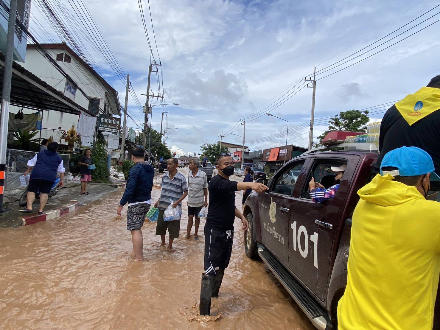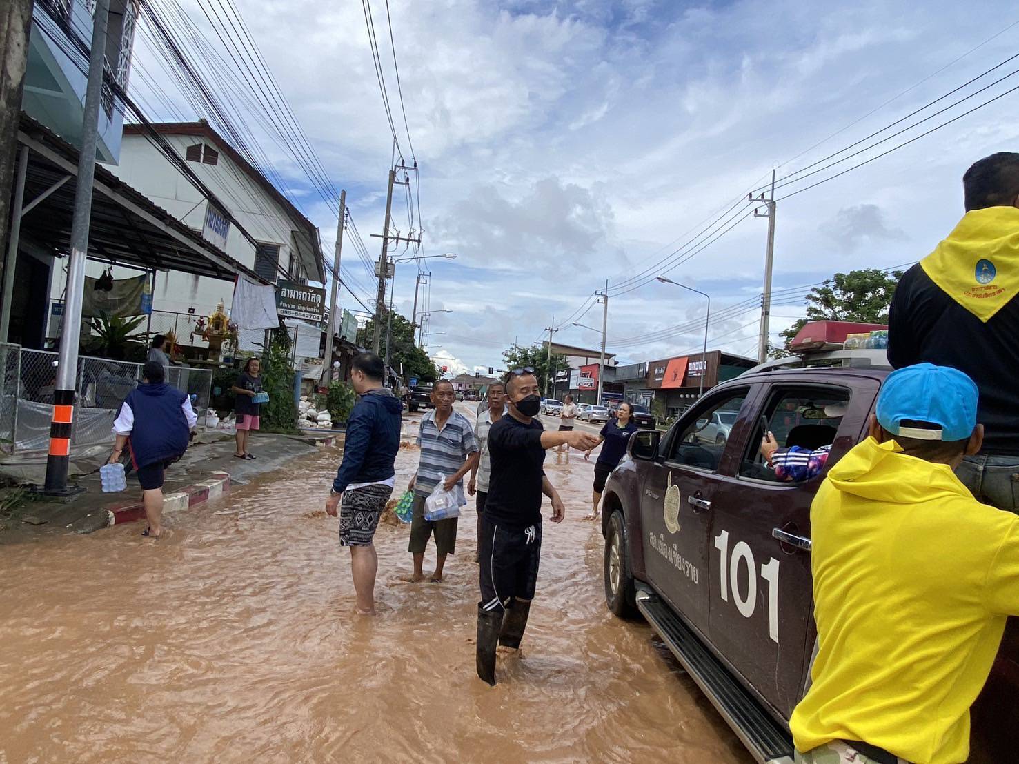 พ.ต.ท.ฉันทฤทธิ์ เหล่าไพโรจน์จารี รอง ผกก.ป.สภ.เมืองเชียงราย พ.ต.ท.สถาพร มังคลาด สวป.สภ.เมือ.งเชียงราย มอบหมายให้ ร.ต.อ.ประกาย หล้าธิ พร้อมเจ้าหน้าที่ประจำจุดตรวจจำบอน พร้อมรถยนต์101 นำน้ำดื่มเพื่อแจกจ่ายผู้ประสบภัยบ้านใหม่ บ้านสักวัน พื้นที่ตำบลริมกกเหตุการณ์ทั่วไปปกติ