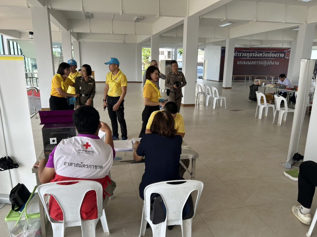 วันที่ 10 เม.ย.68 เวลา 10.00 น. โดยการอำนวยการของ พ.ต.อ.โสภณ ม่วงเฟื่อง ผกก.สภ.เมืองเชียงราย มอบหมายให้ พ.ต.ท.จำเนียน แสงคำ รอง ผกก.(สอบสวน)สภ.เมืองเชียงราย หน.ชุดประกอบพิธี นำชุดประกอบพิธี ชุดที่ 5 เข้าร่วมกิจกรรมจิตอาสา บริจาคโลหิต ดวงตา และอวัยวะ ณ ภ.จว.เชียงราย 10 เมษายน 2568 โดย admin / ข่าวประชาสัมพันธ์,ข่าวกิจกรรม,ข่าวประชาสัมพันธ์,ข่าวภารกิจผู้บังคับบัญชา,ผลการปฏิบัติงาน,งานอำนวยการ FacebookFacebookXXLINELine