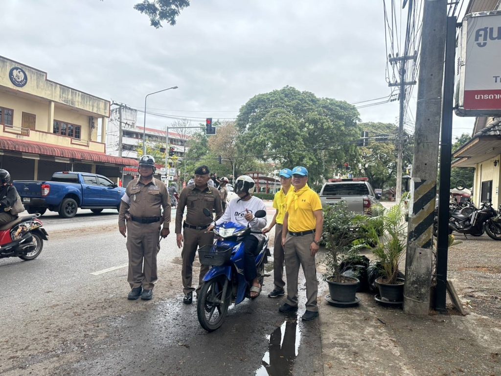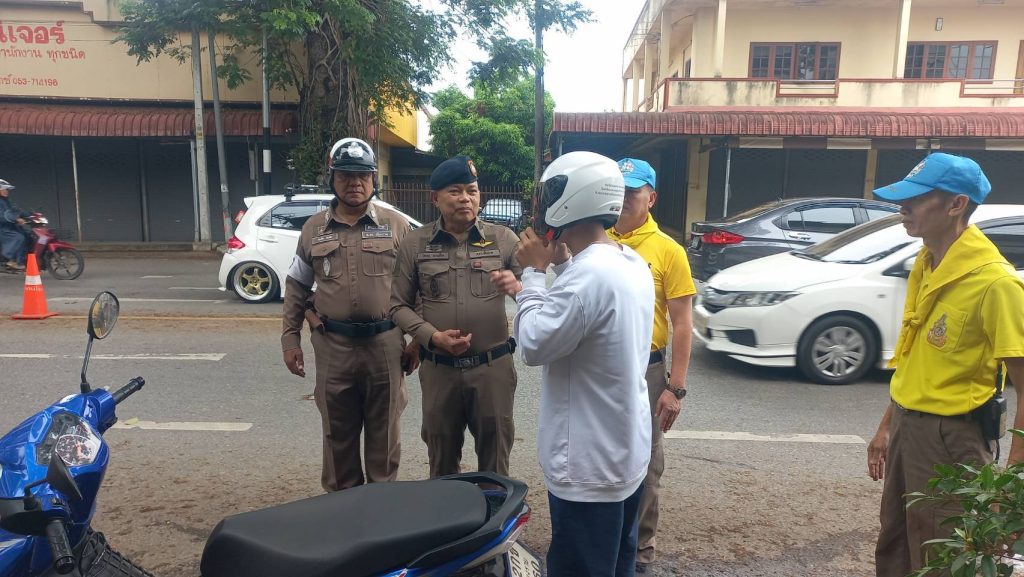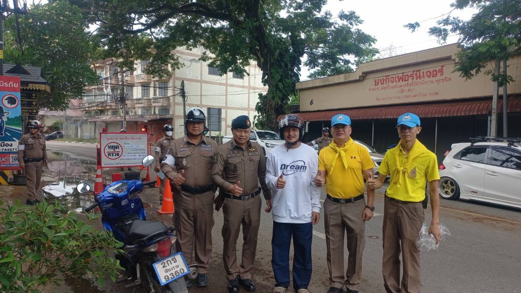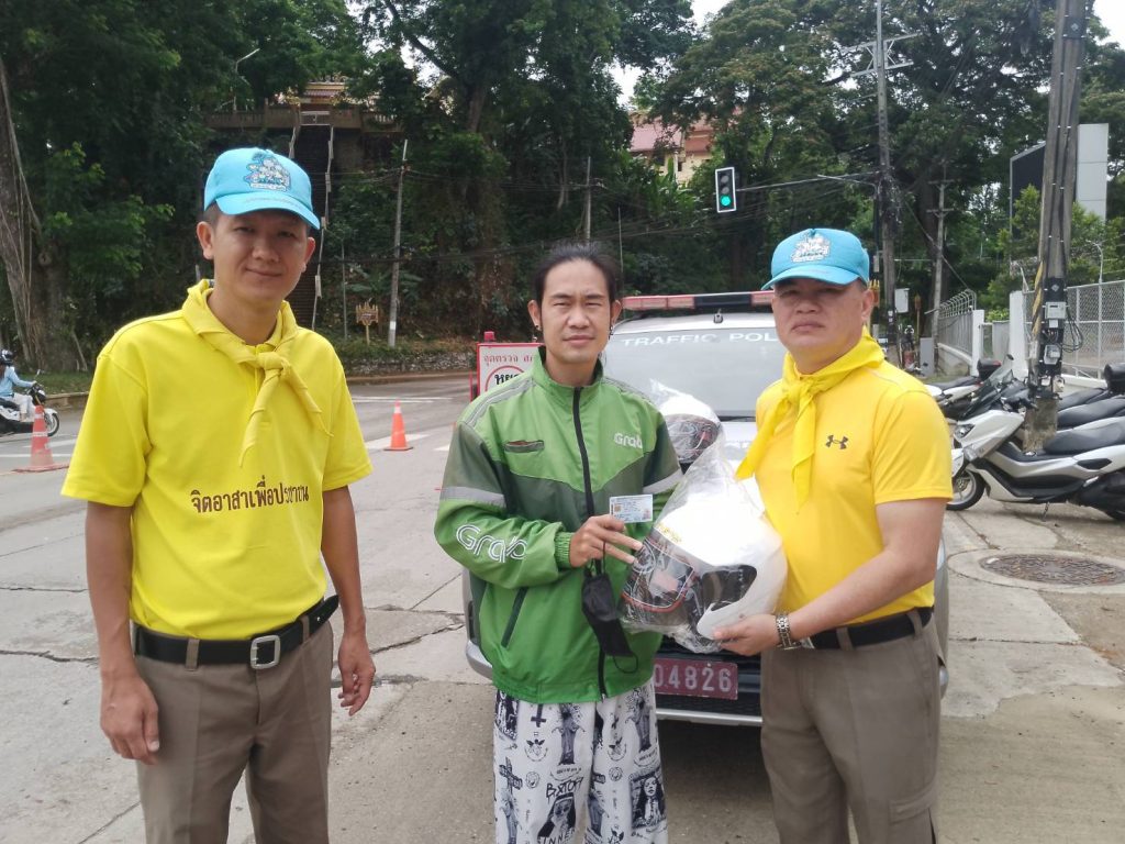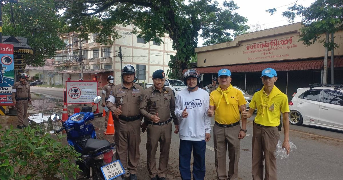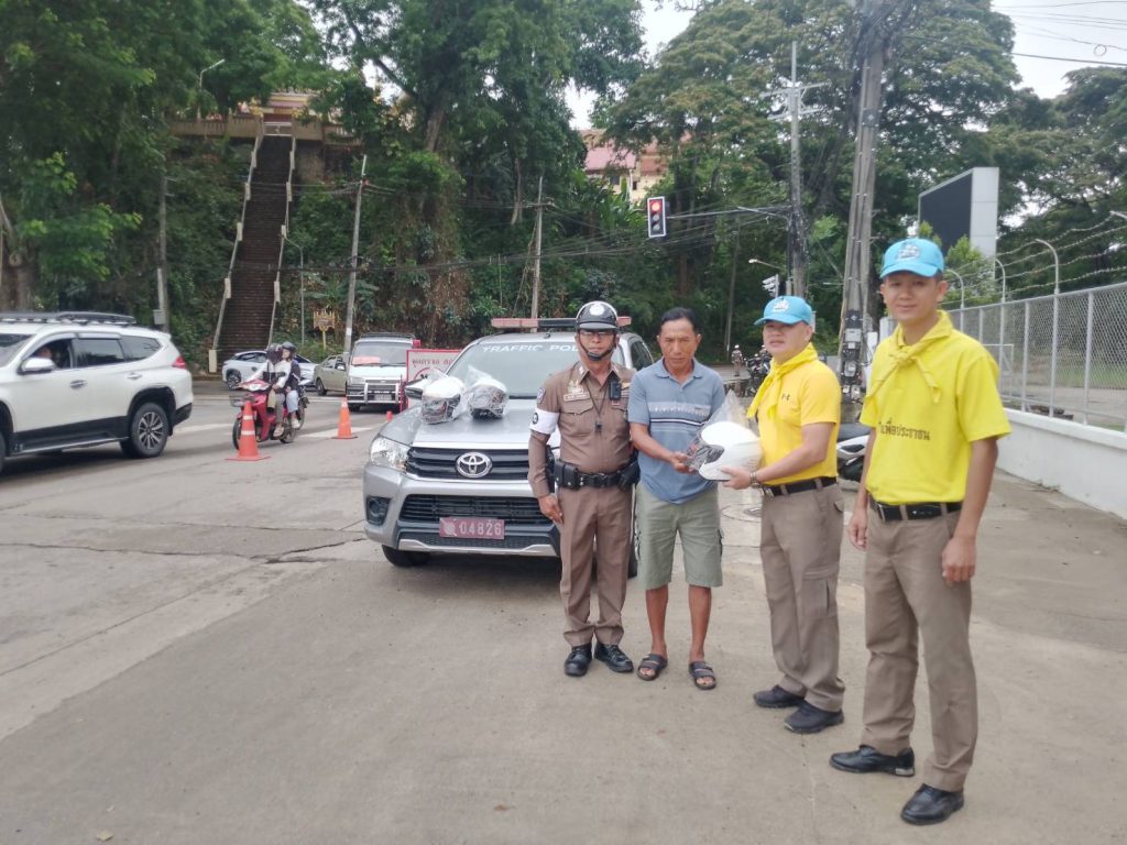 วันที่ 14 เม.ย. 68 เวลา 14.30 น. พ.ต.อ.โสภณ ม่วงเฟื่อง ผกก.สภ.เมืองเชียงราย พร้อมด้วย พ.ต.ต.อิทธิพัทธิ์ ศรีวิชัย สวป.ชส.ฯ พ.ต.ท.สมคิด กันทัด สว.จร. ชุดจราจรและชุดจิตอาสา ดำเนินกิจกรรมแจกหมวกกันน๊อคตามโครงการจิตอาสาจราจร รณรงค์การขับขี่ปลอดภัย สวมหมวกนิรภัยในช่วงเทศกาลสงกรานต์ 2568 และชุดจราจรกวดขันวินัยจราจรหน้า ศูนย์ปฏิบัติการจราจร พร้อมทั้งได้แนะนำ ประชาสัมพันธ์ ให้ขับขี่ด้วยความระมัดระวัง ไม่ประมาท มีสติ ดื่มไม่ขับ สวมใส่หมวกกันน๊อค/คาดเข็มขัดนิรภัย ทุกครั้ง 14 เมษายน 2568 โดย admin / ข่าวประชาสัมพันธ์,ข่าวกิจกรรม,ข่าวประชาสัมพันธ์,ข่าวภารกิจผู้บังคับบัญชา,ผลการปฏิบัติงาน,งานป้องกันปราบปราม,ผลการปฏิบัติงาน,งานอำนวยการ FacebookFacebookXXLINELine