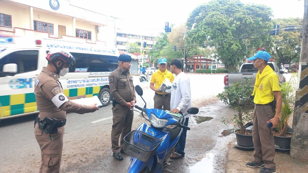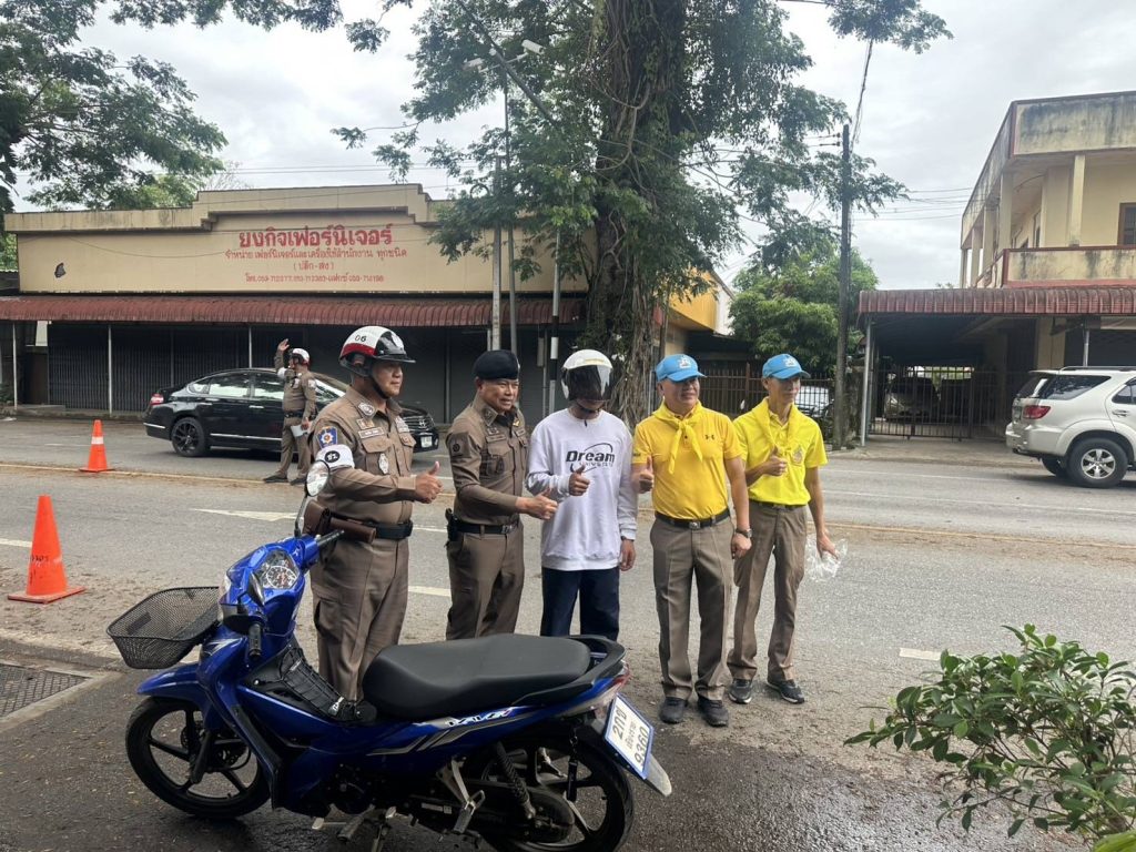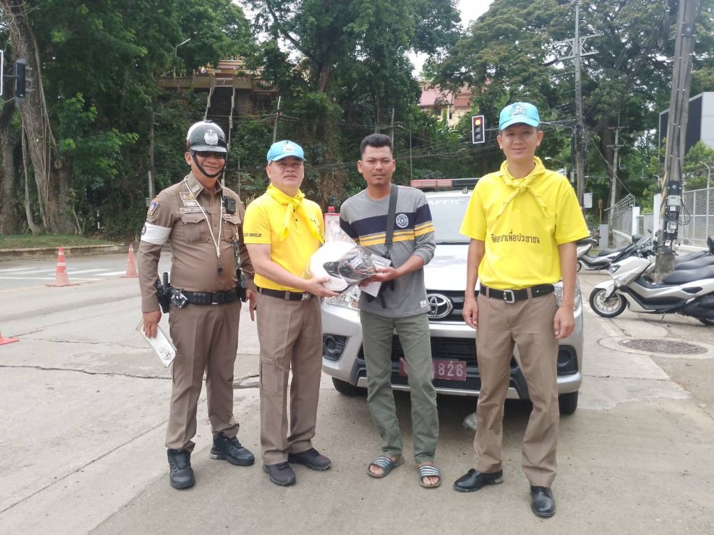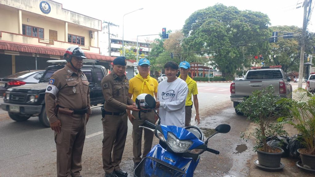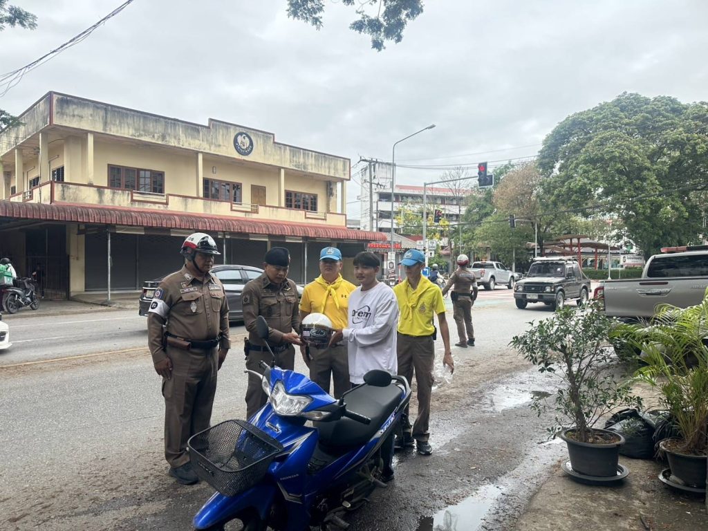 วันที่ 14 เม.ย. 68 เวลา 14.30 น. พ.ต.อ.โสภณ ม่วงเฟื่อง ผกก.สภ.เมืองเชียงราย พร้อมด้วย พ.ต.ต.อิทธิพัทธิ์ ศรีวิชัย สวป.ชส.ฯ พ.ต.ท.สมคิด กันทัด สว.จร. ชุดจราจรและชุดจิตอาสา ดำเนินกิจกรรมแจกหมวกกันน๊อคตามโครงการจิตอาสาจราจร รณรงค์การขับขี่ปลอดภัย สวมหมวกนิรภัยในช่วงเทศกาลสงกรานต์ 2568 และชุดจราจรกวดขันวินัยจราจรหน้า ศูนย์ปฏิบัติการจราจร พร้อมทั้งได้แนะนำ ประชาสัมพันธ์ ให้ขับขี่ด้วยความระมัดระวัง ไม่ประมาท มีสติ ดื่มไม่ขับ สวมใส่หมวกกันน๊อค/คาดเข็มขัดนิรภัย ทุกครั้ง 14 เมษายน 2568 โดย admin / ข่าวประชาสัมพันธ์,ข่าวกิจกรรม,ข่าวประชาสัมพันธ์,ข่าวภารกิจผู้บังคับบัญชา,ผลการปฏิบัติงาน,งานป้องกันปราบปราม,ผลการปฏิบัติงาน,งานอำนวยการ FacebookFacebookXXLINELine