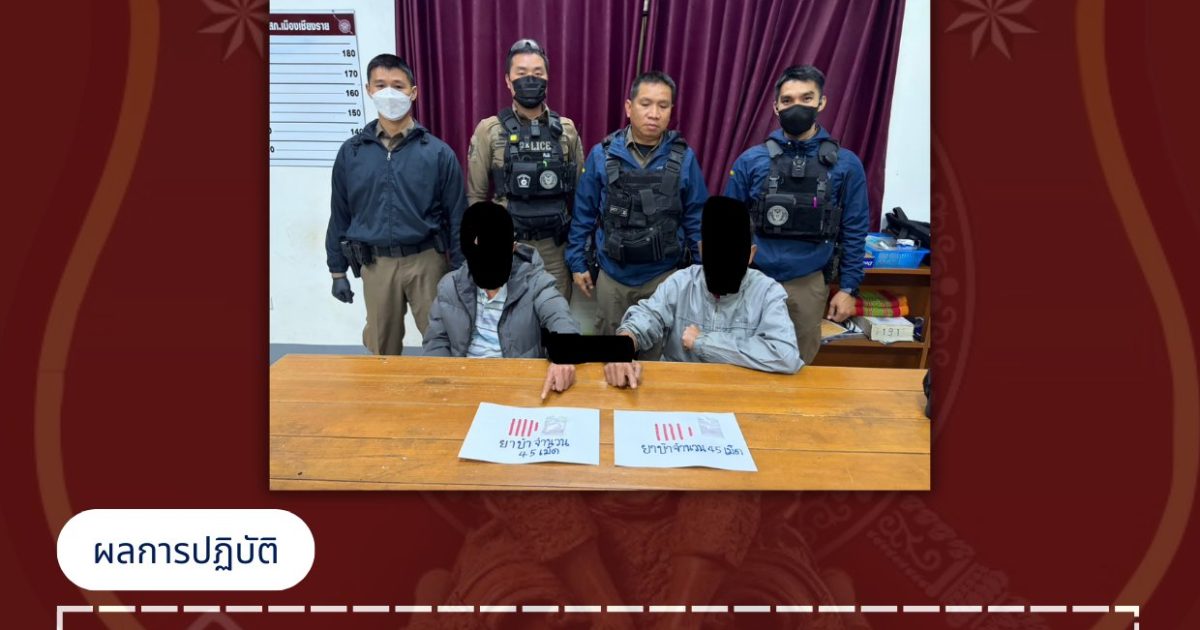 ได้มอบหมายให้ ร.ต.อ.ชานนท์ ปินใจ รอง สวป.สภ.เมืองเชียงราย ทำหน้าที่ร้อยเวร 20 พร้อมชุดสายตรวจโยธิน ชุดที่ 1 ออกปฏิบัติหน้าที่ตรวจสอบและกวาดล้างอาชญากรรมในพื้นที่ ผลการปฏิบัติสามารถจับกุมผู้ต้องหา จำนวน 2 คดี รวม 3 คน ตามความผิด พ.ร.บ.ยาเสพติดฯ พร้อมของกลาง ได้แก่ ผู้ต้องหาที่ 1 ชื่อ นาย เสน่ห์ สงวนนามสกุล อายุ 42 ปี ที่อยู่ ต.รอบเวียง อ.เมือง จ.เชียงราย ผู้ต้องหาที่ 2 ชื่อ นาย พงค์ศักดิ์ สงวนนามสกุล อายุ 60 ปี ที่อยู่ ต.รอบเวียง อ.เมือง จ.เชียงราย ในข้อหา ร่วมกันจำหน่ายยาเสพติดให้โทษประเภทที่ 1 ยาบ้า (เมทแอมเฟตามีน) จำนวน 90 เม็ด มีไว้จำหน่าย และมีสารเสพติดให้โทษประเภทที่ 1 (ยาบ้า) ในร่างกายขณะขับขี่รถจักรยานยนต์โดยฝ่าฝืนต่อกฏหมาย,เสพสารเสพติดให้โทษประเภทที่ 1(เฮโรอีน)โดยผิดกฏหมาย ผู้ต้องหาที่ 3 ชื่อนายรัชชานนท์ สงวนนามสกุล อายุ 20 ปี ที่อยู่ ต.แม่อ้อ อ.พาน จ.เชียงราย ในข้อหา มียาเสพติดให้โทษประเภทที่ 1(เฮโรอีน)ไว้ในครอบครองโดยผิดกฏหมาย น้ำหนัก 30.3 กรัม,เสพสารเสพติดให้โทษประเภทที่ 1 (เฮโรอีน) โดยผิดกฏหมายเจ้าหน้าที่ได้นำผู้ต้องหาและของกลางส่งพนักงานสอบสวน สภ.เมืองเชียงราย เพื่อดำเนินคดีตามกฎหมายต่อไปสภ.เมืองเชียงรายยืนยันเดินหน้าปราบปรามยาเสพติดและอาชญากรรมในพื้นที่อย่างเคร่งครัด เพื่อสร้างความปลอดภัยและความสงบเรียบร้อยให้แก่ประชาชนอย่างต่อเนื่อง.