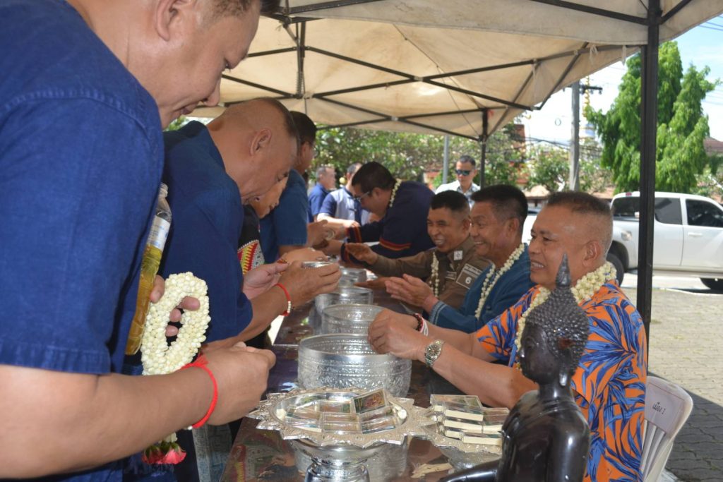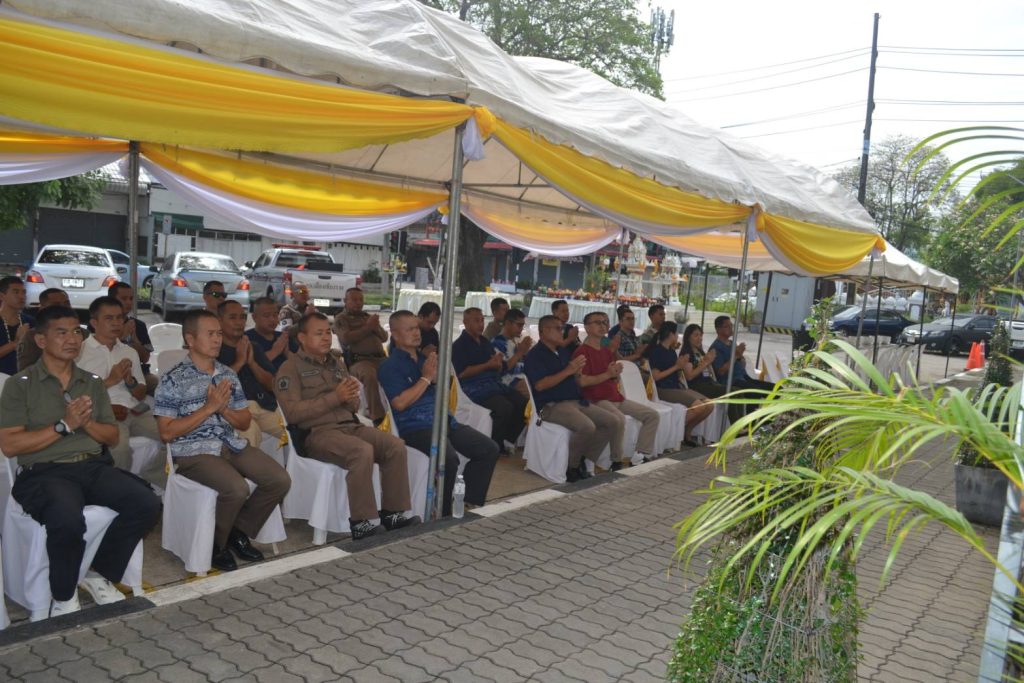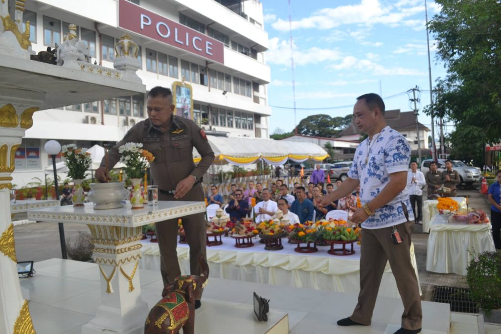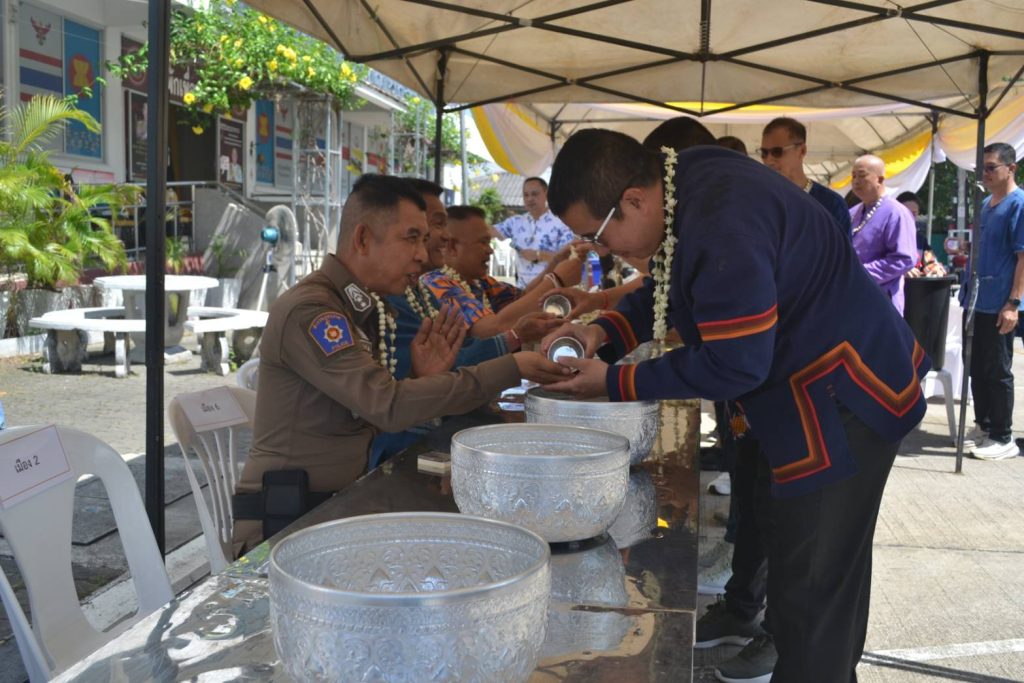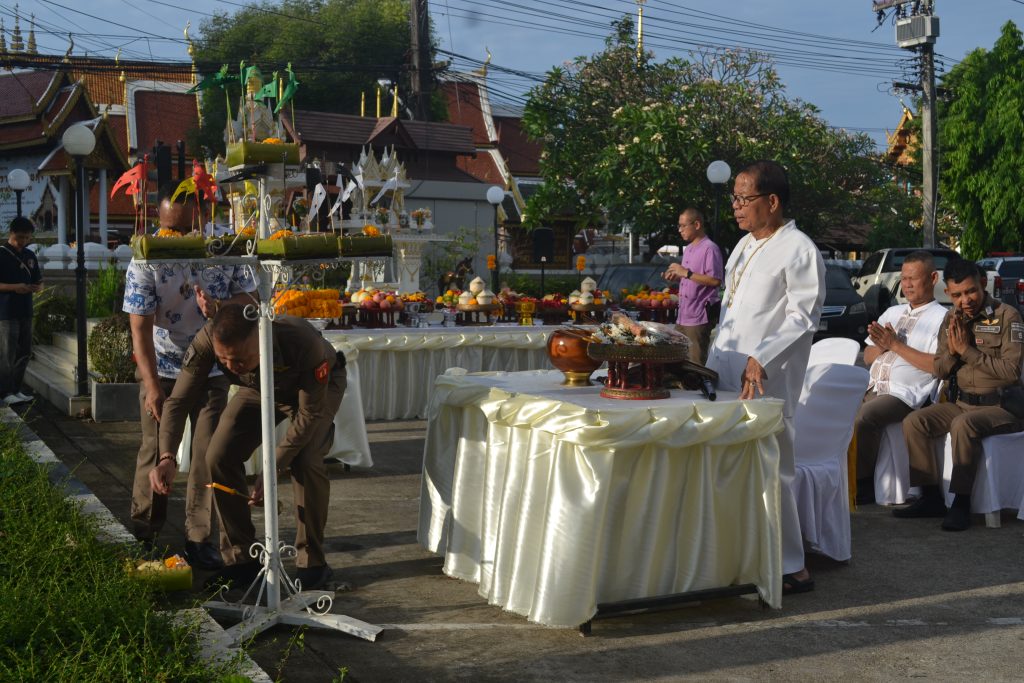 วันนี้ 18 เม.ย.68 เวลา 08.09 น. สภ.เมืองเชียงราย จัดพิธีบวงสรวงศาลพระภูมิ ศาลตายาย พิธีทำบุญเนื่องในวันสงกรานต์ เพื่อความเป็นสิริมงคลแก่ข้าราชการตำรวจและหน่วยงาน จากนั้นได้จัดพิธีรดน้ำดำหัวเพื่อขอขมาลาโทษและขอพรจากผู้บังคับบัญชา สภ.เมืองเชียงราย และรับประทานอาหารกลางวันร่วมกัน ในช่วงบ่ายเป็นการแข่งขันกีฬาเปตองเพื่อเชื่อมความสัมพันธ์ในหน่วยงานและกิจกรรมสันทนาการ 18 เมษายน 2568 โดย admin / ข่าวประชาสัมพันธ์,ข่าวกิจกรรม,ข่าวประชาสัมพันธ์,ข่าวภารกิจผู้บังคับบัญชา,ผลการปฏิบัติงาน,งานอำนวยการ,ผลการปฏิบัติงาน FacebookFacebookXXLINELine