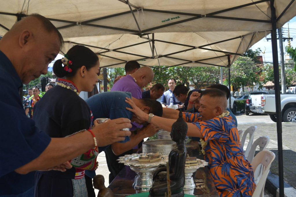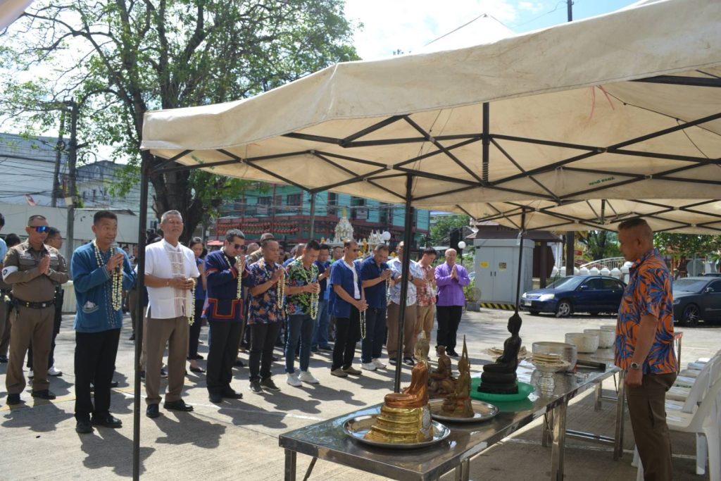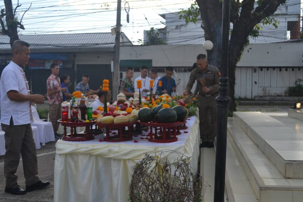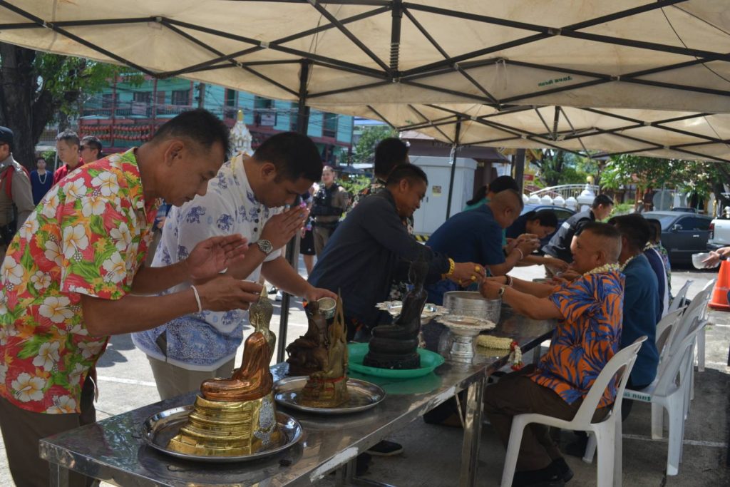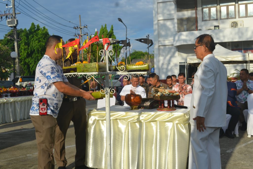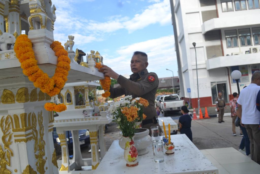 วันนี้ 18 เม.ย.68 เวลา 08.09 น. สภ.เมืองเชียงราย จัดพิธีบวงสรวงศาลพระภูมิ ศาลตายาย พิธีทำบุญเนื่องในวันสงกรานต์ เพื่อความเป็นสิริมงคลแก่ข้าราชการตำรวจและหน่วยงาน จากนั้นได้จัดพิธีรดน้ำดำหัวเพื่อขอขมาลาโทษและขอพรจากผู้บังคับบัญชา สภ.เมืองเชียงราย และรับประทานอาหารกลางวันร่วมกัน ในช่วงบ่ายเป็นการแข่งขันกีฬาเปตองเพื่อเชื่อมความสัมพันธ์ในหน่วยงานและกิจกรรมสันทนาการ 18 เมษายน 2568 โดย admin / ข่าวประชาสัมพันธ์,ข่าวกิจกรรม,ข่าวประชาสัมพันธ์,ข่าวภารกิจผู้บังคับบัญชา,ผลการปฏิบัติงาน,งานอำนวยการ,ผลการปฏิบัติงาน FacebookFacebookXXLINELine
