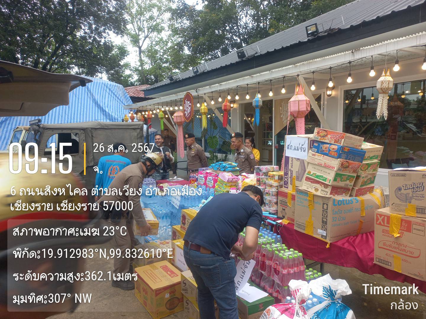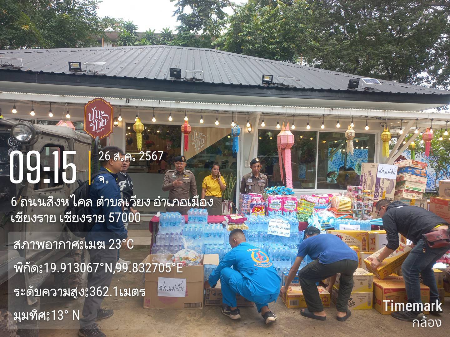 วันที่ 26 สิงหาคม 2567 เวลา 09.00 น. พล.ต.ต.มานพ เสนากูล ผบก.ภ.จว.เชียงรายพ.ต.อ.โสภณ ม่วงเฟื่อง ผกก.สภ.เมืองเชียงราย พร้อมด้วย พ.ต.ท.ฉันทฤทธิ์ เหล่าไพโรจน์จารีรอง.ผกก.ป.ฯ พ.ต.ท.พันชาติ สมตัว รอง ผกก.จร.พ.ต.ท.พรต เศษฐกร รอง ผกก.สส.ฯ, พ.ต.ท.สมคิด กันทัด สว.จร., พ.ต.ท.สถาพร มังคลาด สวป.ฯ ร่วมรับ บริจาคสิ่งของ เพื่อไปช่วยเหลือพี่น้องประชาชน ที่ประสบภัยน้ำท่วมในเขตพื้นที่ของจังหวัดเชียงราย โดยมีภาคส่วนราชการและภาคส่วนเอกชนรัฐวิสาหกิจร่วมสมทบบริจาคสิ่งของในครั้งนี้ ณ ร้านปันรักษ์เจียงฮาย แยกสถานีตำรวจ ถ.สิงหไคล ต.เวียง อ. เมือง จ.เชียงราย
