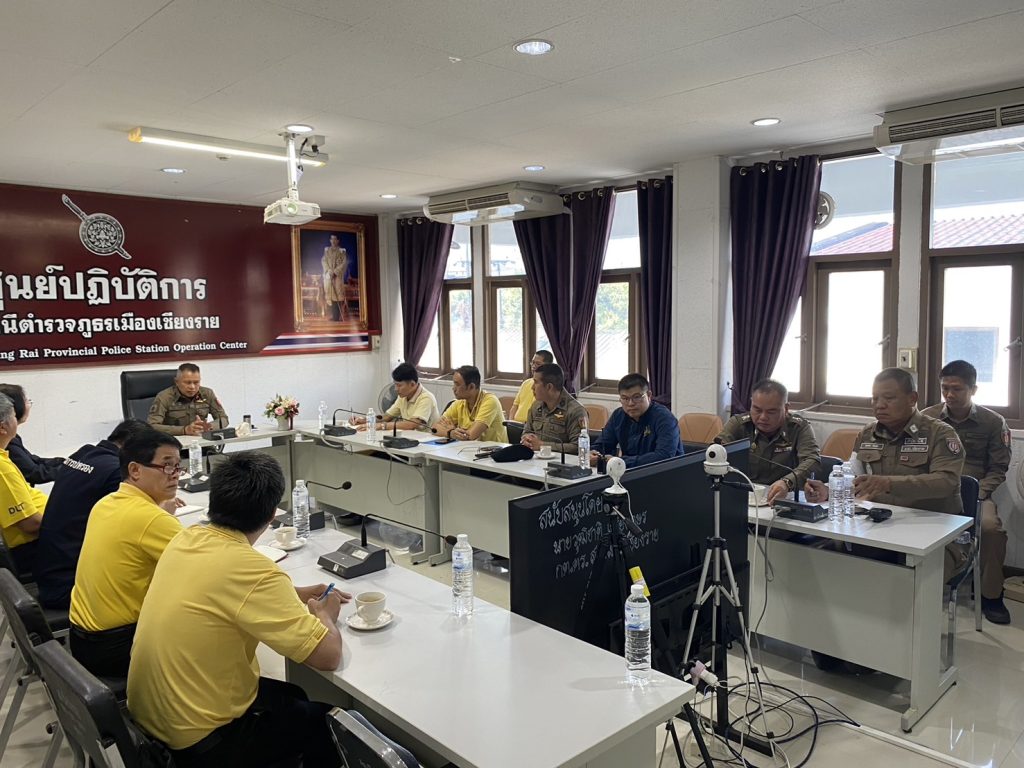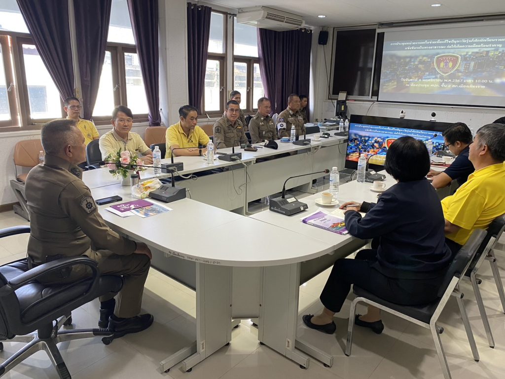วันนี้ 4 พ.ย.67 เวลา 10.00 น. พ.ต.อ.โสภณ ม่วงเฟื่อง ผกก.สภ.เมืองเชียงราย พร้อมด้วย พ.ต.ท.พรต เศรษฐกร รอง ผกก.สส.สภ.เมืองเชียงราย, พ.ต.ท.ฉันทฤทธิ์ เหล่าไพโรจน์จารี รอง ผกก.ป.สภ.เมืองเชียงราย, พ.ต.ท.สมคิด กันทัต สว.จร.สภ.เมืองเชียงราย, พ.ต.ท.สถาพร มังคราด สวป.สภ.เมืองเชียงราย, พ.ต.ต.อิทธิพัทธิ์ ศรีวิชัย สวป.(ชส.) สภ.เมืองเชียงราย ร่วมประชุมบูรณาการหน่วยเครือข่าย ได้แก่ อ.เมืองเชียงราย, ขนส่งจังหวัดเชียงราย, ผู้แทนวิทยาลัยเทคนิคเชียงราย, วิทยาลัยอาชีวศึกษาพณิชยการเชียงราย,