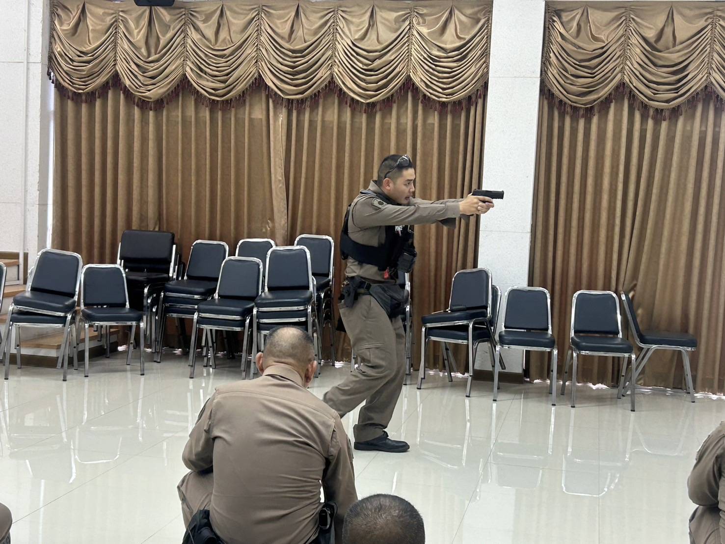 สภ.เมืองเชียงราย ฝึกทบทวนทางยุทธวิธีการใช้อาวุธปืนเบื้องต้น” แก่ข้าราชการตำรวจสายงานป้องกันปราบปราม , งานจราจร และงานสืบสวน 23 พฤษภาคม 2567 โดย admin / ข่าวประชาสัมพันธ์,ข่าวกิจกรรม,ข่าวประชาสัมพันธ์,ข่าวภารกิจผู้บังคับบัญชา วันที่ 23 พ.ค.2567 เวลา 14.00 น. พ.ต.อ.โสภณ ม่วงเฟื่อง ผกก.สภ.เมืองเชียงราย , พ.ต.ท.ฉันทฤทธิ์ เหล่าไพโรจน์จารี รอง ผกก.ป.สภ.เมืองเชียงราย ,พ.ต.ท.สถาพร มังคลาด สวป.สภ.เมืองเชียงราย ควบคุมการฝึก “ยุทธวิธีการใช้อาวุธปืนเบื้องต้น” แก่ข้าราชการตำรวจสายงานป้องกันปราบปราม , งานจราจร และงานสืบสวน ณ ห้องประชุมชั้น 4 สภ.เมืองเชียงราย FacebookFacebookXXLINELine