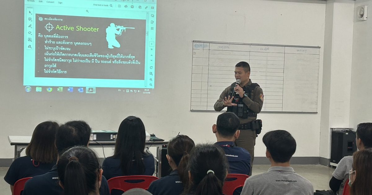 14 พ.ย.66 เวลา 09.00 น.โดยการอำนวยการของ พ.ต.อ.โสภณ ม่วงเฟื่อง ผกก.สภ.เมืองเชียงราย , พ.ต.ท.ภูริวัฒ รุจิรัฐภาส รอง ผกก.ป.สภ.เมืองเชียงราย มอบหมายให้ พ.ต.ท.เอกพล ยาสิทธิ์ สวป.สภ.เมืองเชียงราย เดินทางไปบรรยายให้ความรู้เรื่อง “หนี ซ่อน สู้” ให้กับบริษัทไทวัสดุ สาขาเชียงราย