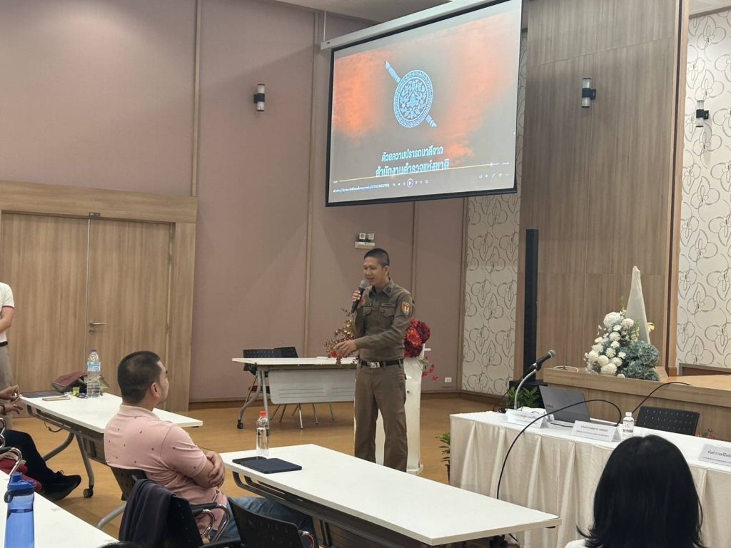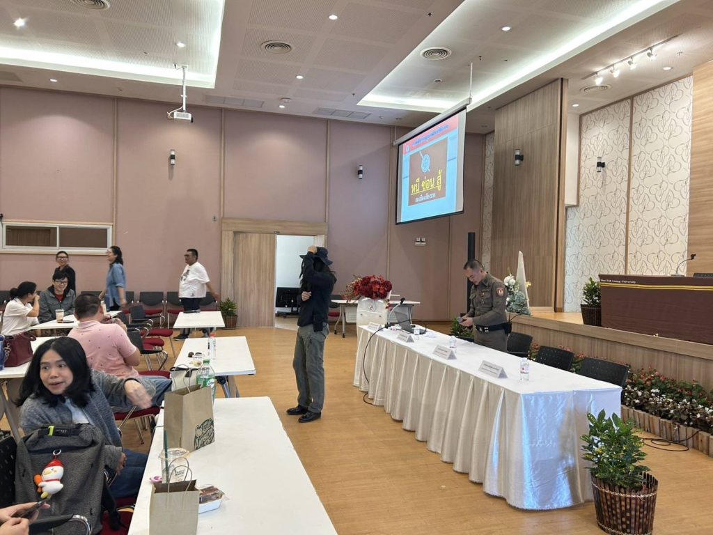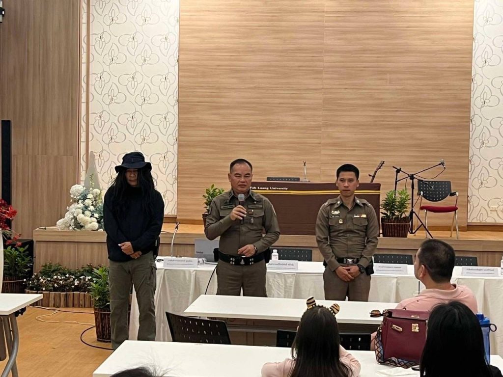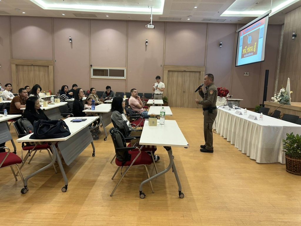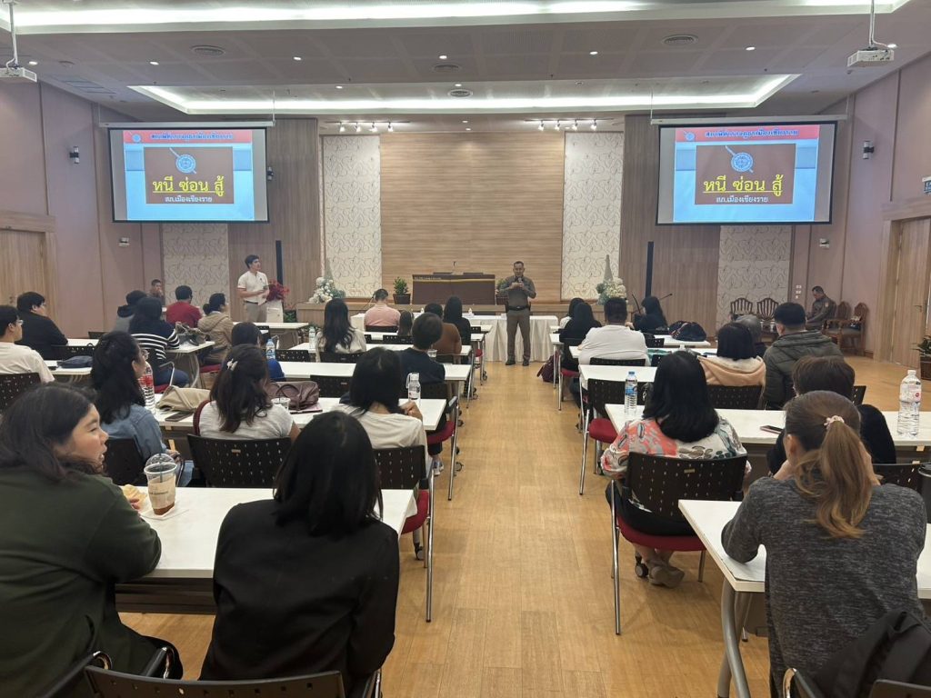 วันที่ 8 ก.พ.68 โดยการอำนวยการของ พ.ต.อ.โสภณ ม่วงเฟื่อง ผกก.สภ.เมืองเชียงราย , พ.ต.ท.ฉันทฤทธิ์ เหล่าไพโรจน์จารี รอง.ผกก.ป.สภ.เมืองเชียงราย มอบหมายให้ พ.ต.ต.อิทธิพัทธิ์ ศรีวิชัย สวป.(ชส.)สภ.เมืองเชียงราย พร้อมชุด ชมส. บรรยายเรื่อง หนี ซ่อน สู้ แก่คณะอาจารย์ ม.แม่ฟ้าหลวง ณ ม.แม่ฟ้าหลวง ต.ท่าสุด อ.เมืองเชียงราย จว.เชียงราย