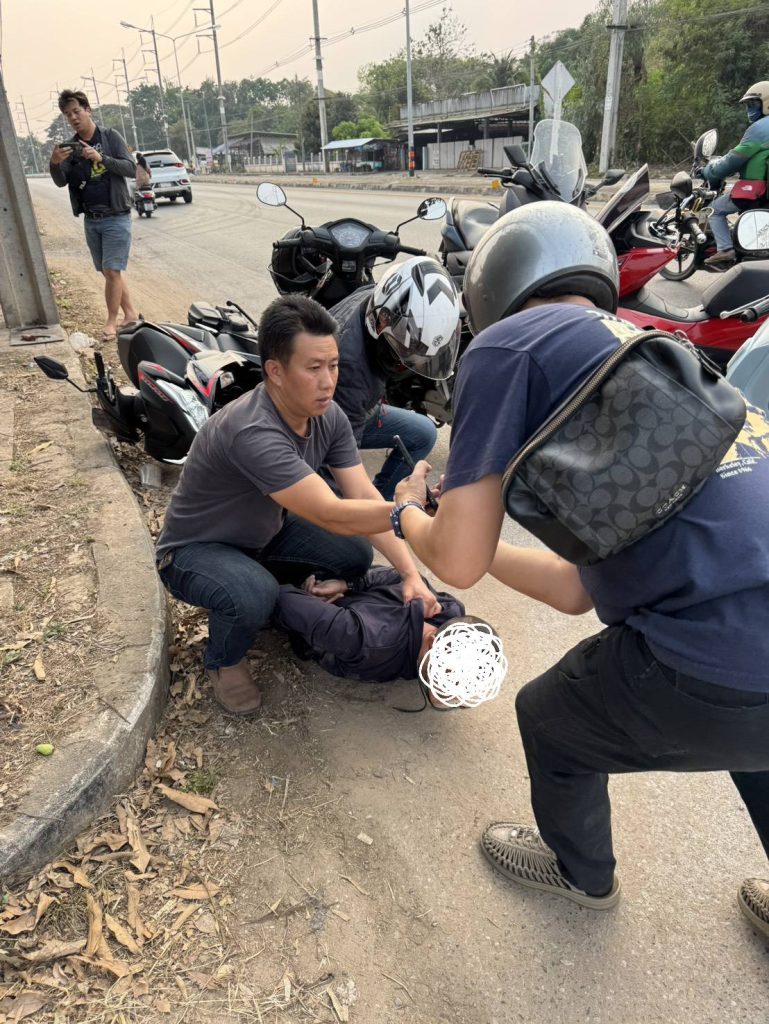 ➤ พฤติการณ์ในการจับกุม วันที่ 31 มีนาคม 2568 เวลาประมาณ 12.45 น. เจ้าหน้าที่ตำรวจได้รับแจ้งจากศูนย์วิยุเม็งราย กรณีเหตุชิงทรัพย์บริเวณถนนหลังวัดดอยพระบาท มีผู้ได้รับบาดเจ็บ จำนวน 1 ราย เจ้าหน้าตำรวจจึงได้เดินทางไปตรวจสอบ เมื่อเดินทางไปถึงพบผู้เสียหายได้รับบาดเจ็บบริเวณลำคอ จากของมีคม จึงได้แจ้งเจ้าหน้าที่กู้ภัยนำตัวไปรักษาที่โรงพยาบาล ต่อมาเจ้าหน้าที่ตำรวจได้ร่วมกันออกตรวจสอบกล้องวงจรปิดบริเวณสถานที่เกิดเหตุ และเส้นทางที่คาดว่าผู้ก่อเหตุใช้ในการหลบหนี จนกระทั่งทราบว่าผู้ก่อเหตุได้ใช้รถจักรยานยนต์ยี่ห้อฮอนด้า รุ่นเวฟ สีดำแดง หมายเลขทะเบียน คพต 808 เชียงราย ในการหลบหนี จึงได้ร่วมกันออกสืบสวนติดตามบริเวณใกล้เคียง จนกระทั่งพบตัวผู้ต้องสงสัยขับขี่รถจักรยานยนต์บริเวณใกล้กับวัดดอยพระบาท จึงได้เรียกให้จอดแต่ผู้ขับขี่ไม่ยอมจอดรถและได้ขับขี่หลบหนีไป เจ้าหน้าที่ตำรวจจึงได้ทำการติดตามจนมาถึงบริเวณถนนเด่นห้า-ดงมะดะ ต.รอบเวียง อ.เมือง จ.เชียงราย จึงได้ทำการควบคุมตัวไว้ สอบถามทราบชื่อ นายณัฎฐพล อายุ 52 ปี ให้การยอมรับกับเจ้าหน้าที่ตำรวจว่าตนเองเป็นผู้ก่อเหตุดังกล่าว จึงนำตัวส่งพนักงานสอบสวนตดำเนินคดีต่อไป