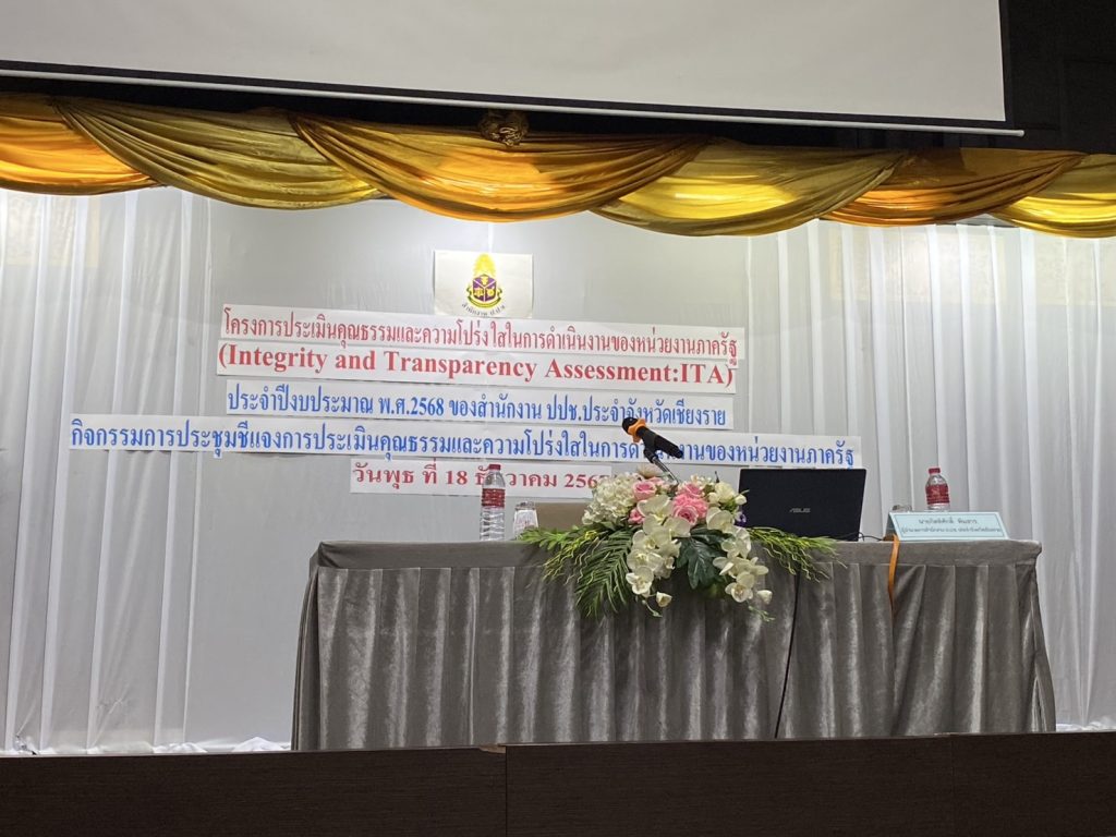เมื่อวันที่ 18 ธ.ค.68 เวลา 13.00 น. สภ.เมืองเชียงราย ได้มอบหมายให้ พ.ต.ท.หญิง ปาลิดา คำภิวัน สว.อก.สภ.เมืองเชียงราย และ ร.ต.อ.ธนันณัฐ บุญกว้าง รอง สว.อก.สภ.เมืองเชียงราย เข้าร่วมอบรมโครงการประเมินคุณธรรมและความโปร่งใสในการดำเนินงานของหน่วยงานภาครัฐ (Integrity and Transparency Assessment: ITA) ประจำปีงบประมาณ พ.ศ. 2568 ของสำนักงาน ป.ป.ช. ประจำจังหวัดเชียงราย ณ โรงแรมลักษวรรณ รีสอร์ท เชียงราย