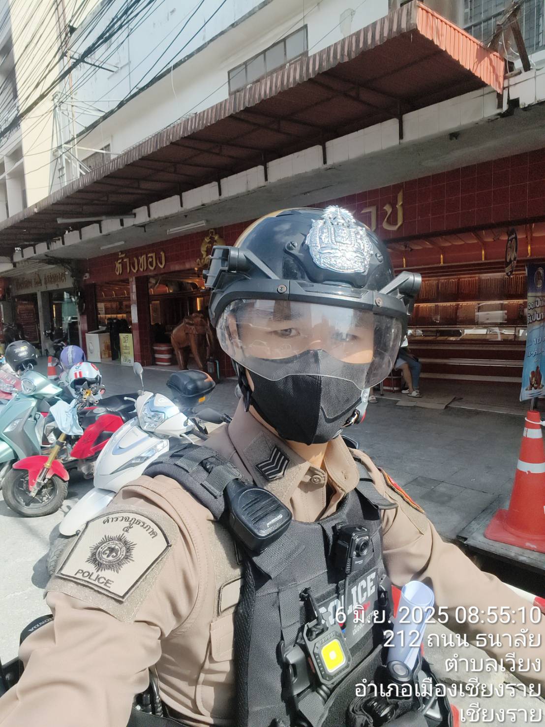 สภ.เมืองเชียงราย วันที่ 6 มิ.ย. 68 โดยการอำนวยการของ พ.ต.อ.โสภณ ม่วงเฟื่อง ผกก.สภ.เมืองเชียงราย, พ.ต.ท.ฉันทฤทธิ์ เหล่าไพโรจน์จารี รอง.ผกก.ป.ฯ, พ.ต.ท.สถาพร มังคลาด สวป.ฯ มอบหมายให้ ร.ต.อ.สันชัย ดีจะเสน รอง สวป.ฯ ร้อยเวร20, พลขับ201 ว.4 ตรวจร้านทองเยาวราชแม่พิมพ์หัวฝาย เพื่อเพิ่มความปลอดภัยในชีวิตและทรัพย์สินของประชาชน