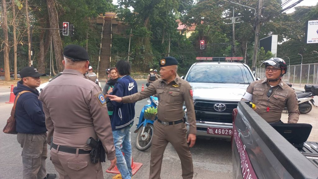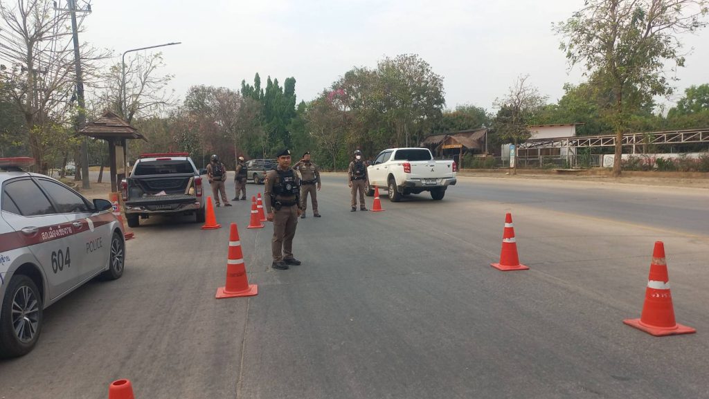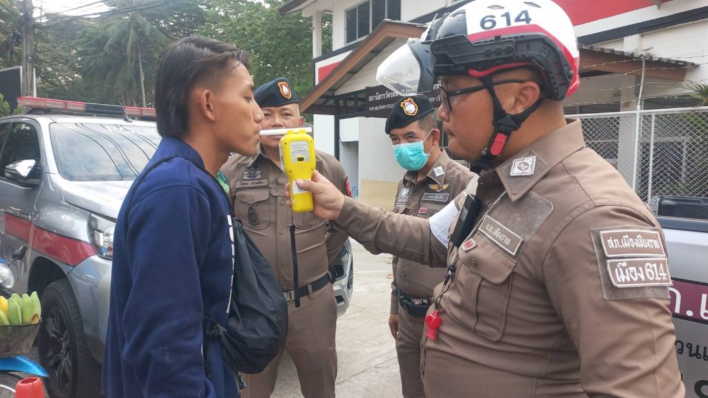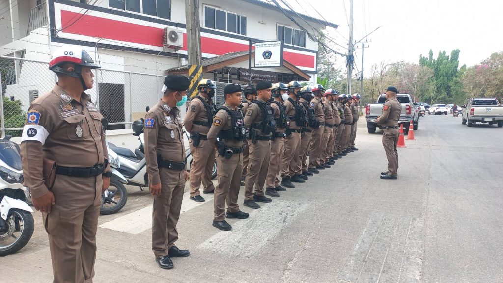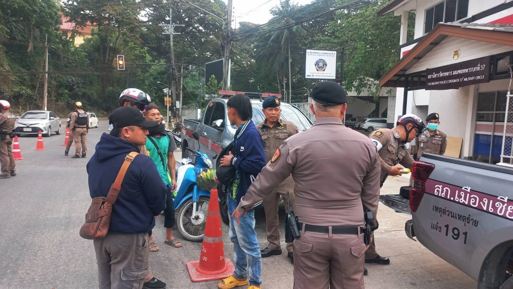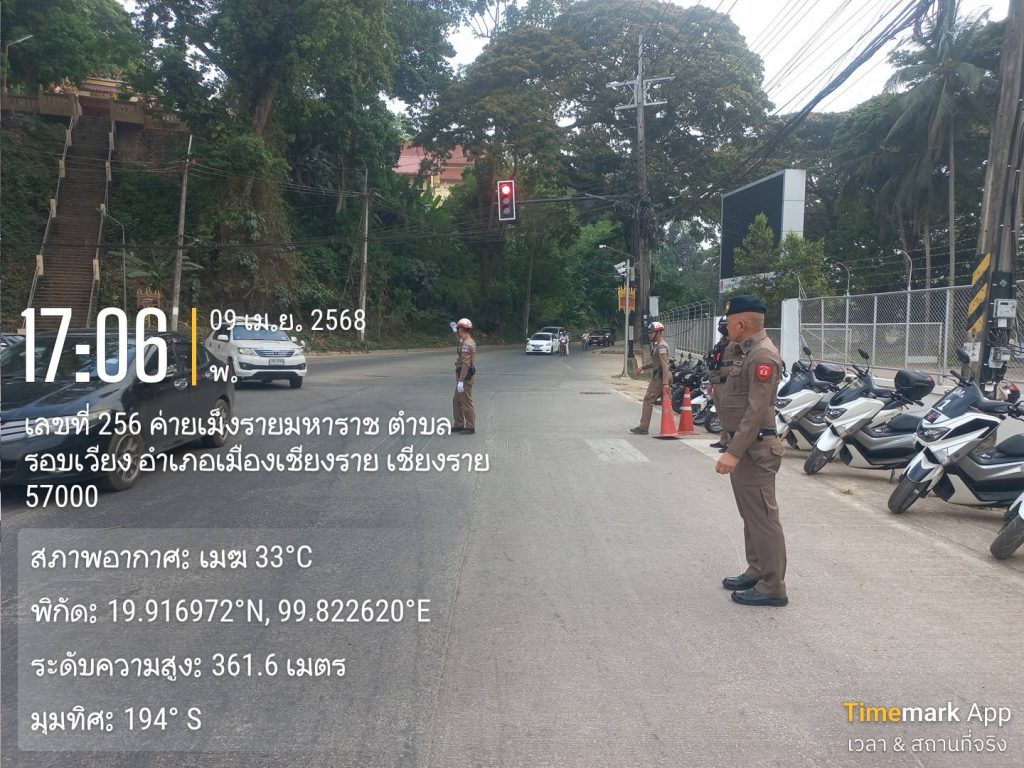 สภ.เมืองเชียงราย วันที่ 9 เมษายน 2568 เวลา 17.00 น. พ.ต.อ.โสภณ ม่วงเฟื่อง ผกก.สภ. เมืองเชียงราย พร้อมด้วย พ.ต.ท พันชาติ สมตัว รอง ผกก. จร.พ.ต.ท. สถาพร มังคลาด สวป พ.ต.ท. สมคิด กันทัด สว.จร.ร้อยเวร 20 และ 60 พร้อมชุด สายตรวจโยธินและชุดจราจร ปล่อยแถวระดมกวาดล้างตั้งจุดตรวจวัดแอลกอฮอล์ รณรงค์เมาไม่ขับและขับรถให้ปลอดภัยในช่วงก่อนวันหยุดสงกรานต์ ปี 2568 แยกร้อย อส. ต.เวียง อ.เมือง จ.เชียงราย 9 เมษายน 2568 โดย admin / ข่าวประชาสัมพันธ์,ข่าวกิจกรรม,ข่าวประชาสัมพันธ์,ข่าวภารกิจผู้บังคับบัญชา,ผลการปฏิบัติงาน,งานจราจร,ผลการปฏิบัติงาน,งานป้องกันปราบปราม FacebookFacebookXXLINELine