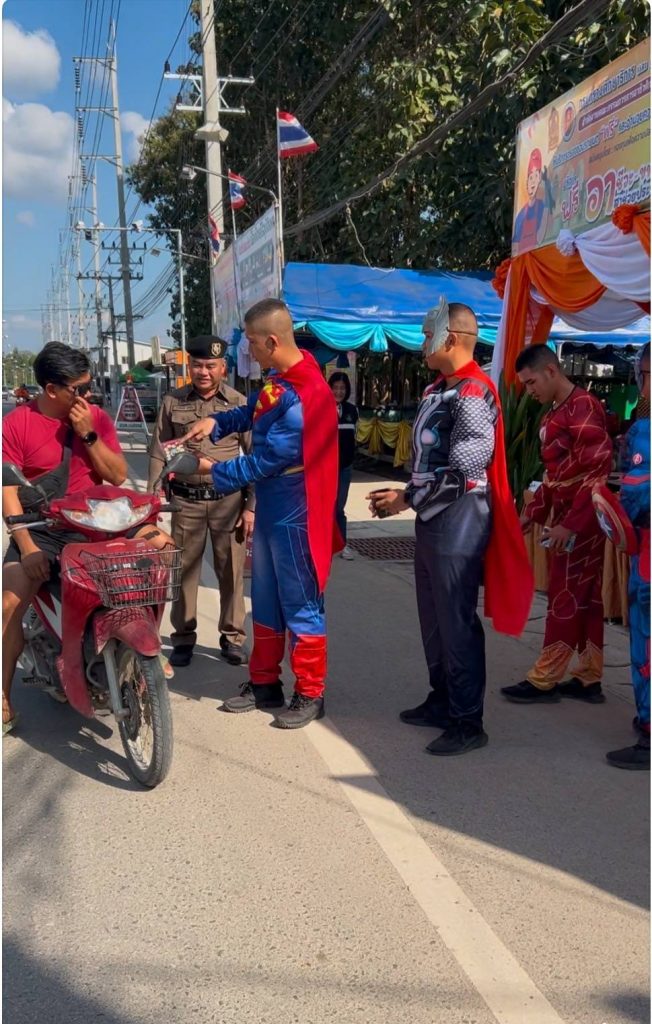 วันที่ 29 ธ.ค.67 สภ.สภ.เมืองเชียงราย ภายได้การอำนวยการของ พ.ต.อ.โสภณ ม่วงเฟื่อง ผกก.สภ.เมืองเชียงราย, พ.ต.ท.ฉันทฤทธิ์ เหล่าไพโรจน์จารีรอง ผกก.ป.สภ.เมืองเชียงราย มอบหมายให้ พ.ต.ต.อิทธิพัทธิ์ ศรีวิชัย สวป.(ชส.)ฯ พร้อมชุดตำรวจจิตอาสา, ตำรวจชุมชนและมวลชนสัมพันธ์ สภ.เมืองเชียงราย แต่งกายเป็นบรรดาเหล่าฮีโร่ต่างๆ ออกรณรงค์ให้ความการจราจรการลดอุบัติเหตุบนท้องถนน และให้บริการอำนวยความสะดวกแก่ประชาชนช่วงเทศกาลปีใหม่ 2568 ณ หน่วยบริการประชาชนตู้ยามขุนกรณ์ ต.แม่กรณ์ อ.เมืองเชียงราย จว.เชียงราย และจุดบริการประชาชนของหน่วยร่วมบูรณาการ