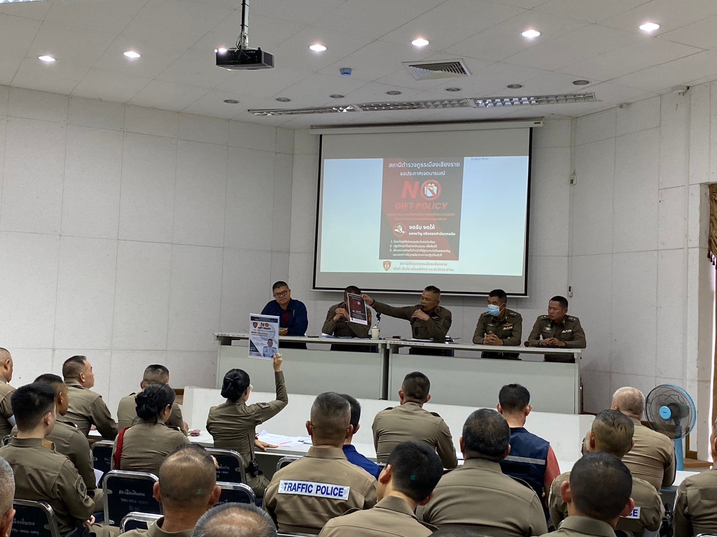 สภ.เมืองเชียงราย เข้าร่วมประชุม โดยได้ชี้แจง กำชับการปฏิบัติราชการให้เป็นไปตามนโยบาย ข้อสั่งการ ของ ตร., ภ.5 และ ภ.จว.เชียงราย และได้เน้นย้ำเรื่องการปฏิบัติตนตามประมวลจริยธรรมของตำรวจ ปฏิบัติหน้าที่ด้วยความซื่อสัตย์สุจริต และประกาศนโยบายต่อต้านการรับสินบน (Anti-Bribery Policy) แสดงเจตนารมณ์งดให้-งดรับของขวัญ หรือของกำนัลทุกชนิดจากการปฏิบัติหน้าที่ เพื่อมุ่งสู่การเป็นองค์กรที่มีความโปร่งใสในการดำเนินงาน และกำชับและเสริมสร้างความเข้าใจเกี่ยวกับการจัดการทรัพย์สินของทางราชการฯ เพื่อยกระดับคุณธรรมและความโปร่งใสภายในหน่วยงาน ตามมาตรฐาน ITA 2025