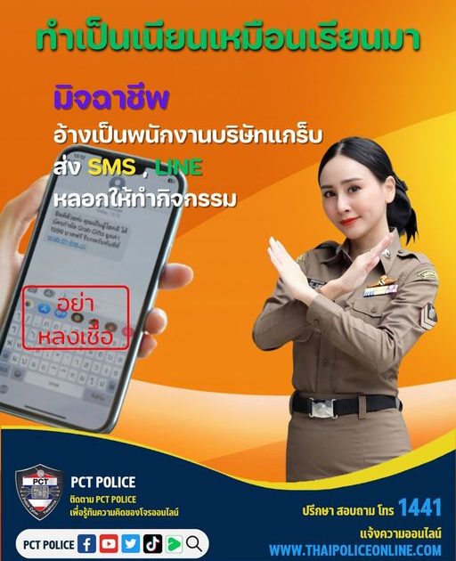 PCT POLICE ของเราจึงขอแจ้งเตือนให้ผู้ใช้บริการ รวมถึงประชาชนทั่วไป โปรดระมัดระวังและอย่าหลงเชื่อมิจฉาชีพที่มีพฤติการณ์ดังกล่าว