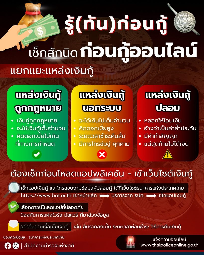 เตือนภัย รู้ทันก่อนกู้ การตรวจสอบก่อนกู้เงินออนไลน์ เพื่อป้องกันการถูกหลอกลวง 13 มีนาคม 2567 โดย admin / ข่าวประชาสัมพันธ์,ข่าวประชาสัมพันธ์,ข่าวฝากประชาสัมพันธ์ FacebookFacebookXXLINELine