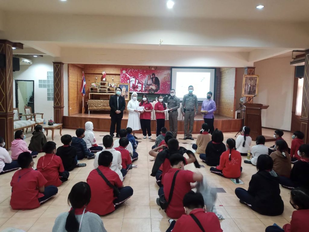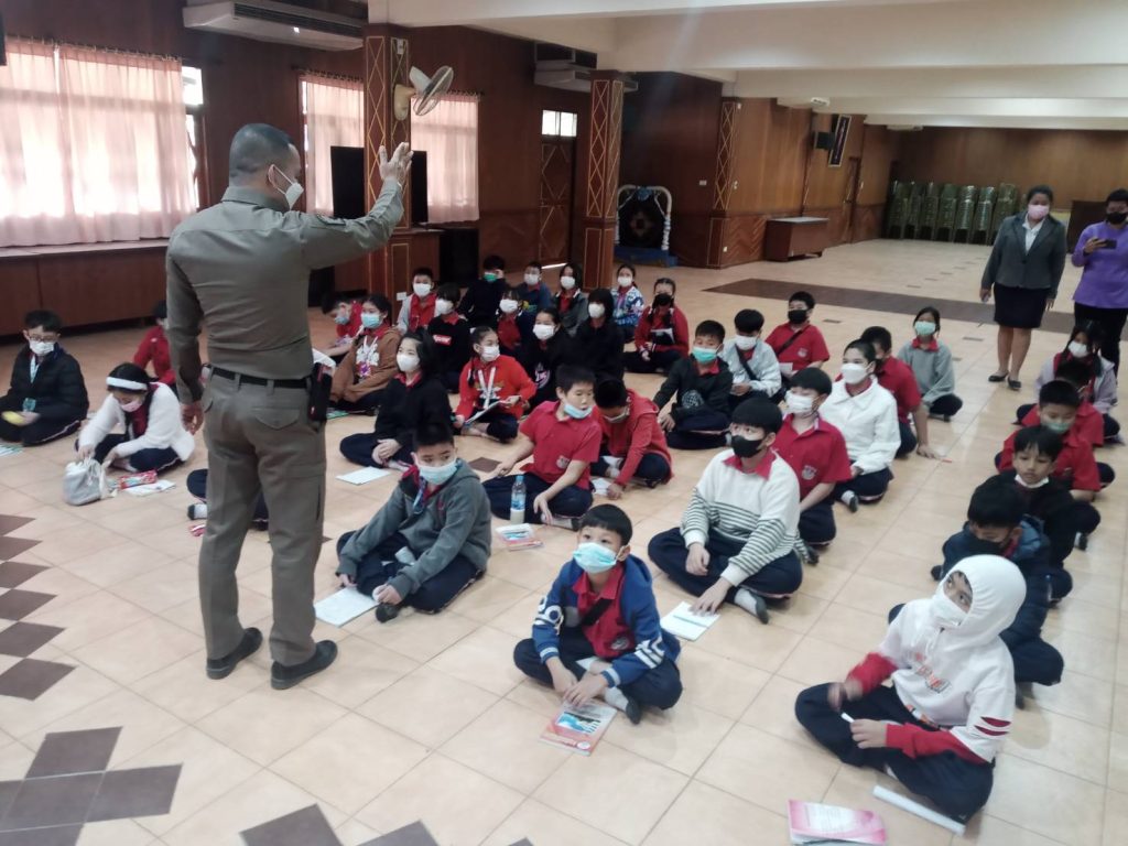 ,พ.ต.ท. วีระยุทธ์ ศรีวรรณรมย์ รรท.รอง.ผกก.ป.ฯ ,พ.ต.ท.เอกพล ยาสิทธิ์ รรท.สวป.ฯ มอบหมายให้ ด.ต.สมควร จอดนอก ,จ.ส.ต.เสกสรรค์ อุ่นเรือน ว.4 โครงการต่อต้านการใช้ยาเสพติดในเด็กนักเรียน(แดร์) นักเรียนระดับชั้นประถมศึกษาปีที่ 5 โรงเรียนสันติวิทยา จำนวน 56 คน