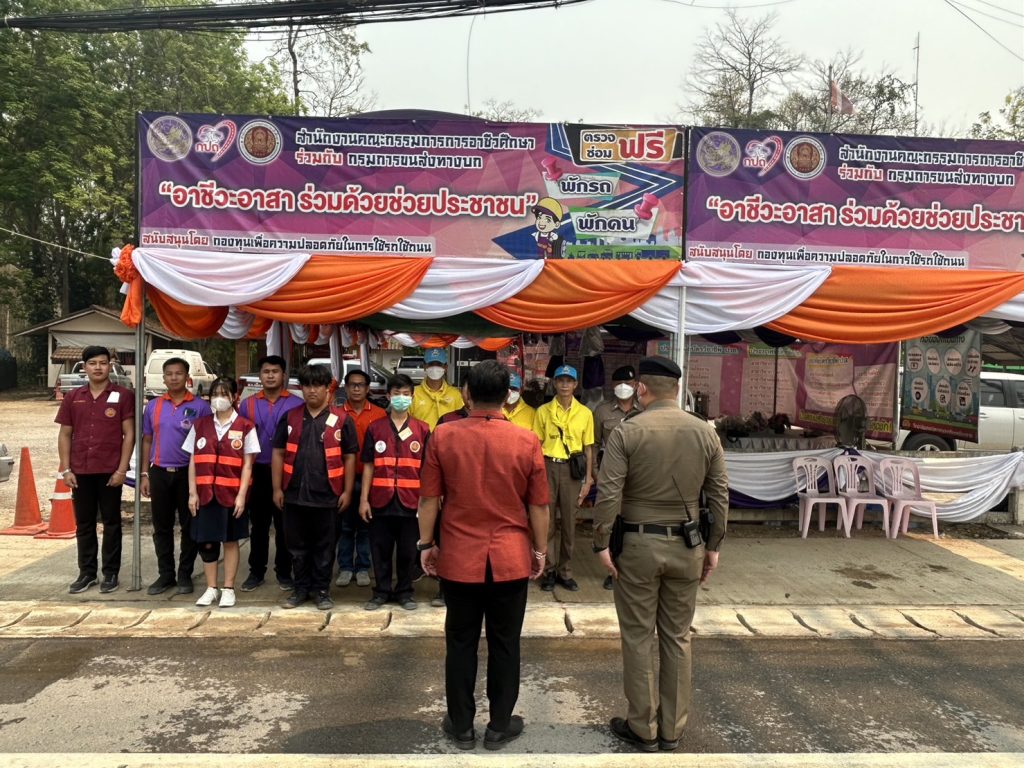 พ.ต.ท.ภูริวัฒ รุจิรัฐภาส รอง ผกก.ป.สภ.เมืองเชียงราย มอบหมายให้ พ.ต.ท.เอกพล ยาสิทธิ์ สวป.ฯ พร้อมด้วยชุดจิตอาสา ประกอบด้วย ร.ต.อ.ไพชยนต์ ดอนลาว , ด.ต.จิราธิวัฒ บัวเทศ , จ.ส.ต.เสกสรรค์ อุ่นเรือน ออก ว.4 ประชาสัมพันธ์และบริการประชาชน ณ ตู้ยามขุนกรณ์ พร้อมด้วยนักศึกษาโครงการ “อาชีวะศึกษา ร่วมด้วยช่วยประชาชน เทศกาลสงกรานต์ 2566” ตรวจเช็คสภาพรถประชาชนที่ผ่านสัญจรไปมา บนท้องถนนให้เกิดความปลอดภัย