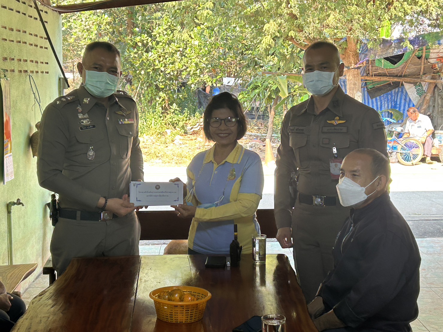 ประชุมร่วมกับประธานชุมชน แกนนำชุมชนป่าแดง ต.ริมกกโครงการ ค้นหาผู้ใช้ ผู้เสพ ผู้ติดยาเสพติดและผู้ป่วยจิตเวช เพื่อนำเข้าสู่กระบวนการบำบัดรักษา โดยได้แจกผ้าป่ายาเสพติดเพื่อเป็นข้อมูลในการค้นหาและได้ปรึกษา รับฟังปัญหาที่ต้องการให้ตำรวจเข้ามาร่วมแก้ไข ได้แก่เรื่อง การแจ้งเหตุฉุกเฉิน