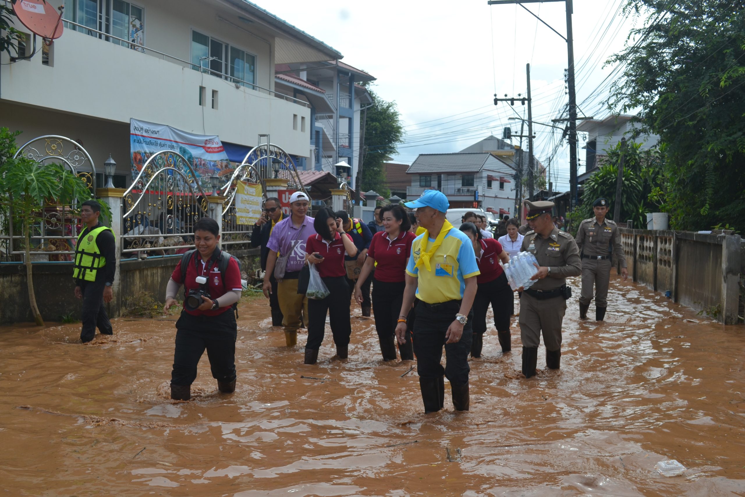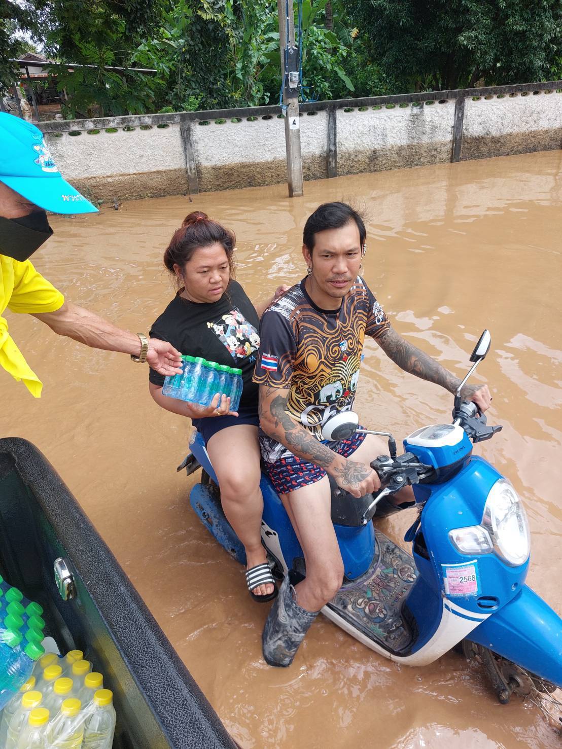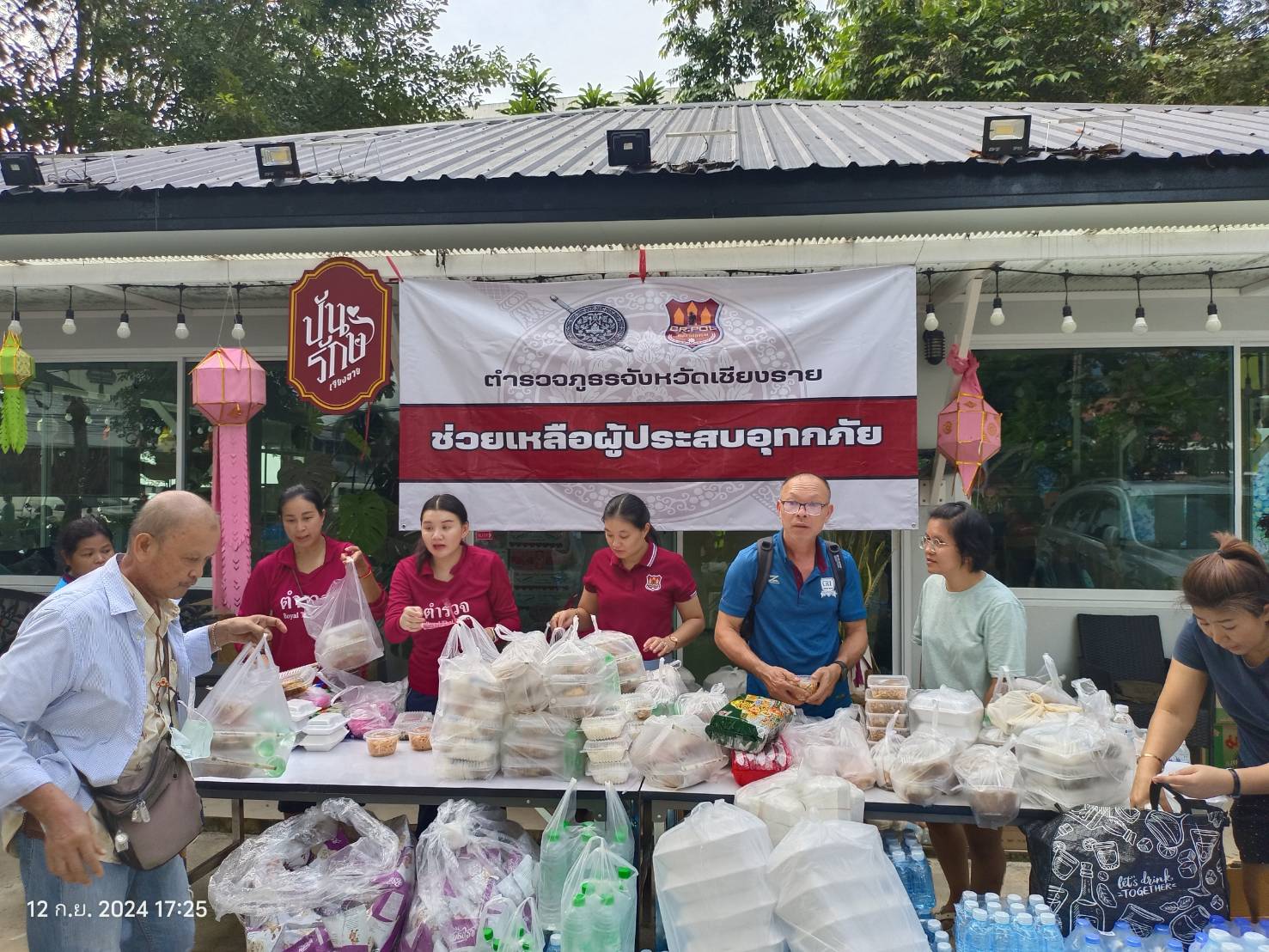 สภ.เมืองเชียงราย จัดตำรวจสายตรวจ, ชุดมวลชนและชุมชนสัมพันธ์, ข้าราชการตำรวจจิตอาสา นำอาหารและน้ำดื่ม ที่ได้รับบริจาคจากหน่วยงาน/บริษัท/ห้างร้านและเครือข่ายต่างๆ เข้าแจกจ่ายช่วยเหลือประชาชนในพื้นที่น้ำท่วมอย่างต่อเนื่องจนกว่าสถานการณ์จะคลี่คลาย