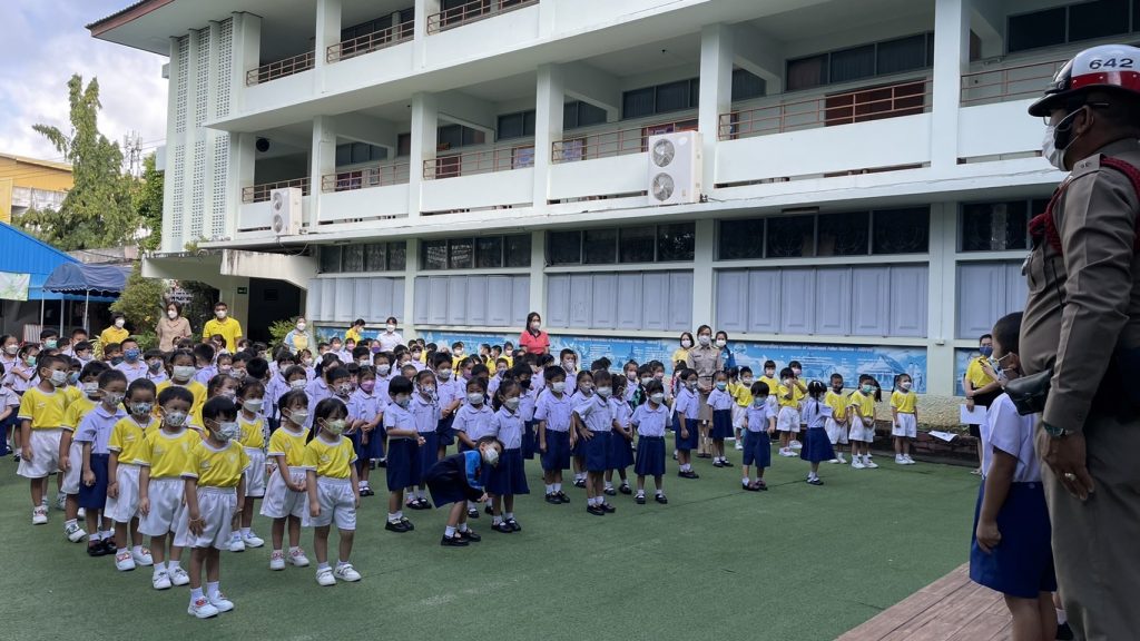 19 ก.ย. 65 เวลา 07.50 น. โดยการอำนวยการของ พ.ต.อ.ภาสกร ณ พิกุล รอง ผบก.ฯ รรท. ผกก.สภ.เมืองเชียงราย มอบหมายให้ พ.ต.ท.พันชาติ สมตัว รอง ผกก.จร.ฯ พ.ต.ต.รัตนพล บั้งเงิน สว.จรฯ ร.ต.อ.รัตน์สดา รุ่งเรือง รอง สว.จร.ฯ ร้อยเวรจราจรประจำวัน ร.ต.ต.ณรงค์ สารข้าวคำ รอง สว.(จร.)ฯ เจ้าหน้าที่จราจรประจำจุดหน้าโรงเรียนอนุบาล ให้ความรู้กฏหมายจราจร ฉบับใหม่ และประชาสัมพันธ์มติที่ประชุมคณะกรรมการนโยบายการป้องกันและลดอุบัติเหตุทางถนนระดับจังหวัด ในการรณรงค์สวมหมวกนิรภัย 100 เปอเซ็นต์ ในพื้นที่เขตเทศบาลนครเชียงราย ให้แก่คณะครูและน้องๆนักเรียนโรงเรียนอนุบาลเชียงราย